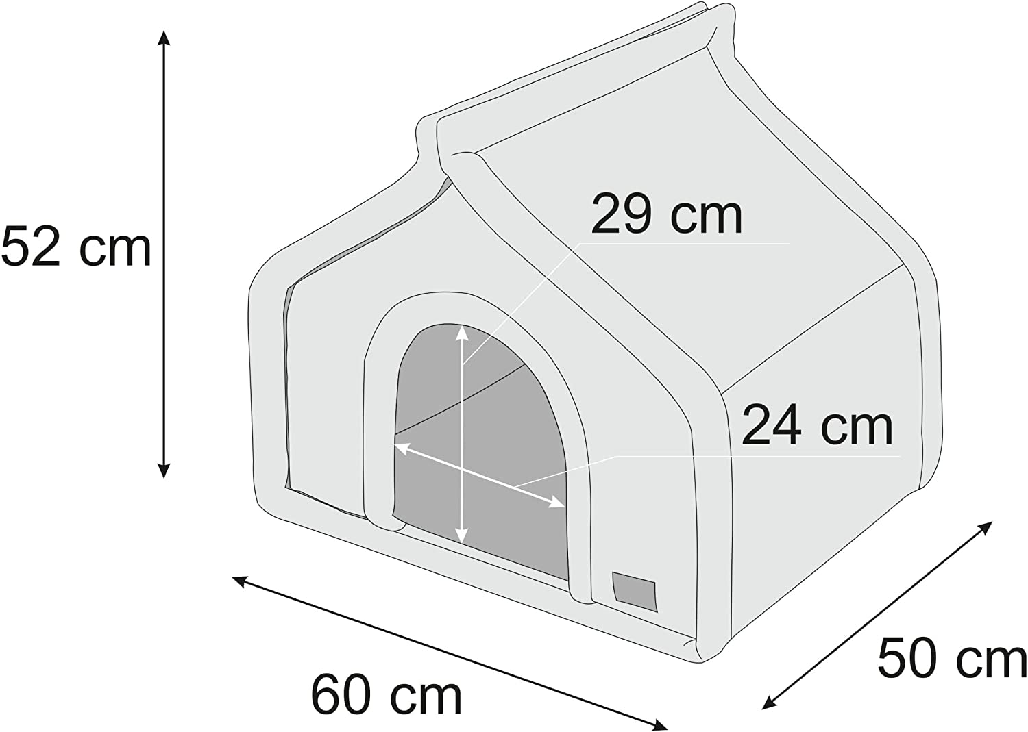 Къщичка за домашни любимци Doggy, 60 x 50 x 52 см, Сгъваема, Мек и комфортен под, Сива