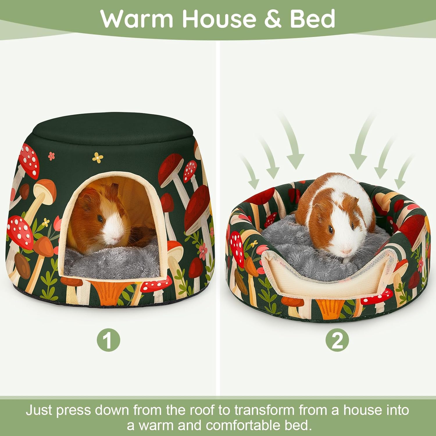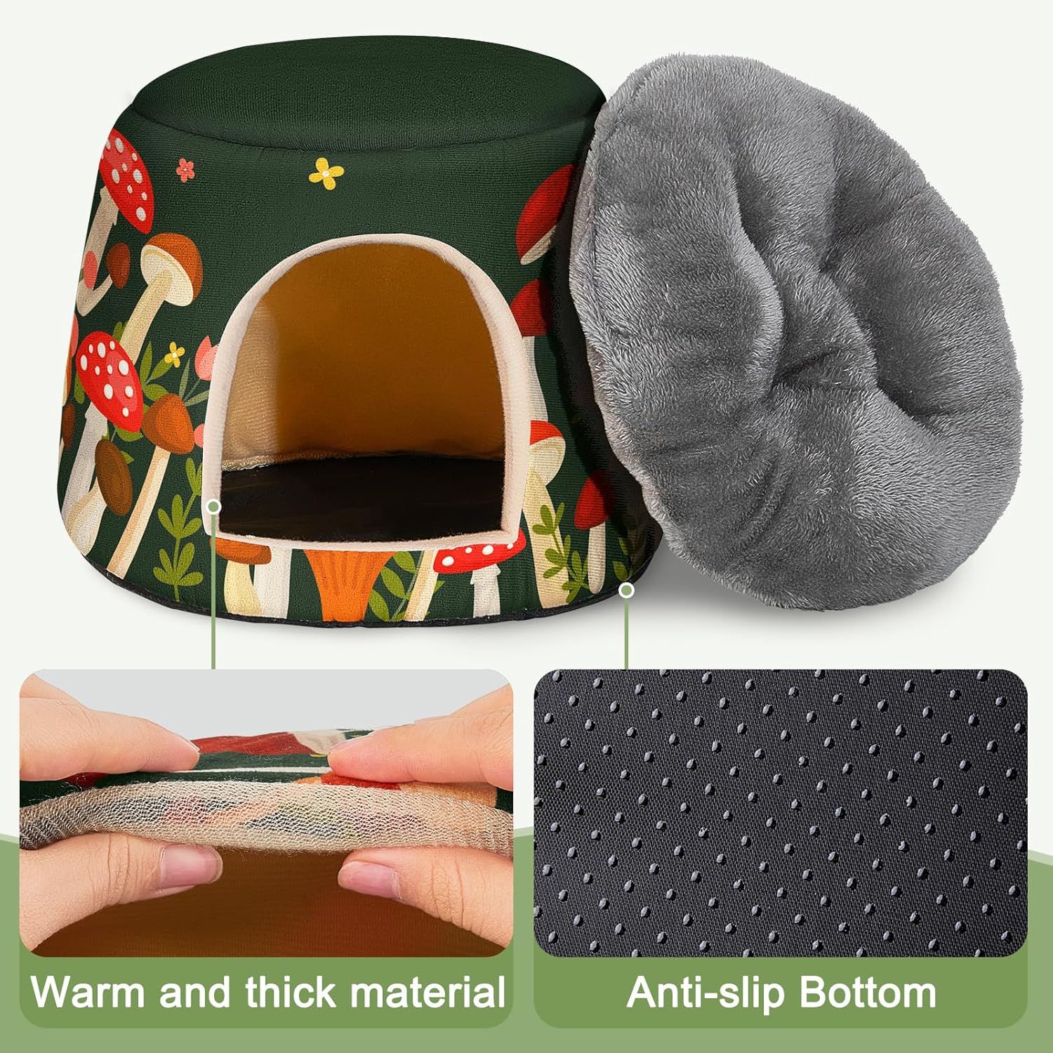 • 2 в 1 легло за гушкане и пещера: Тази пещера за таралеж и хамстер служи едновременно като уютно скривалище и открито място за спане, когато натиснете покрива плосък. Независимо дали е като къщичка за гризачи или като пухкава възглавница - вашите малки животни ще я обожават.