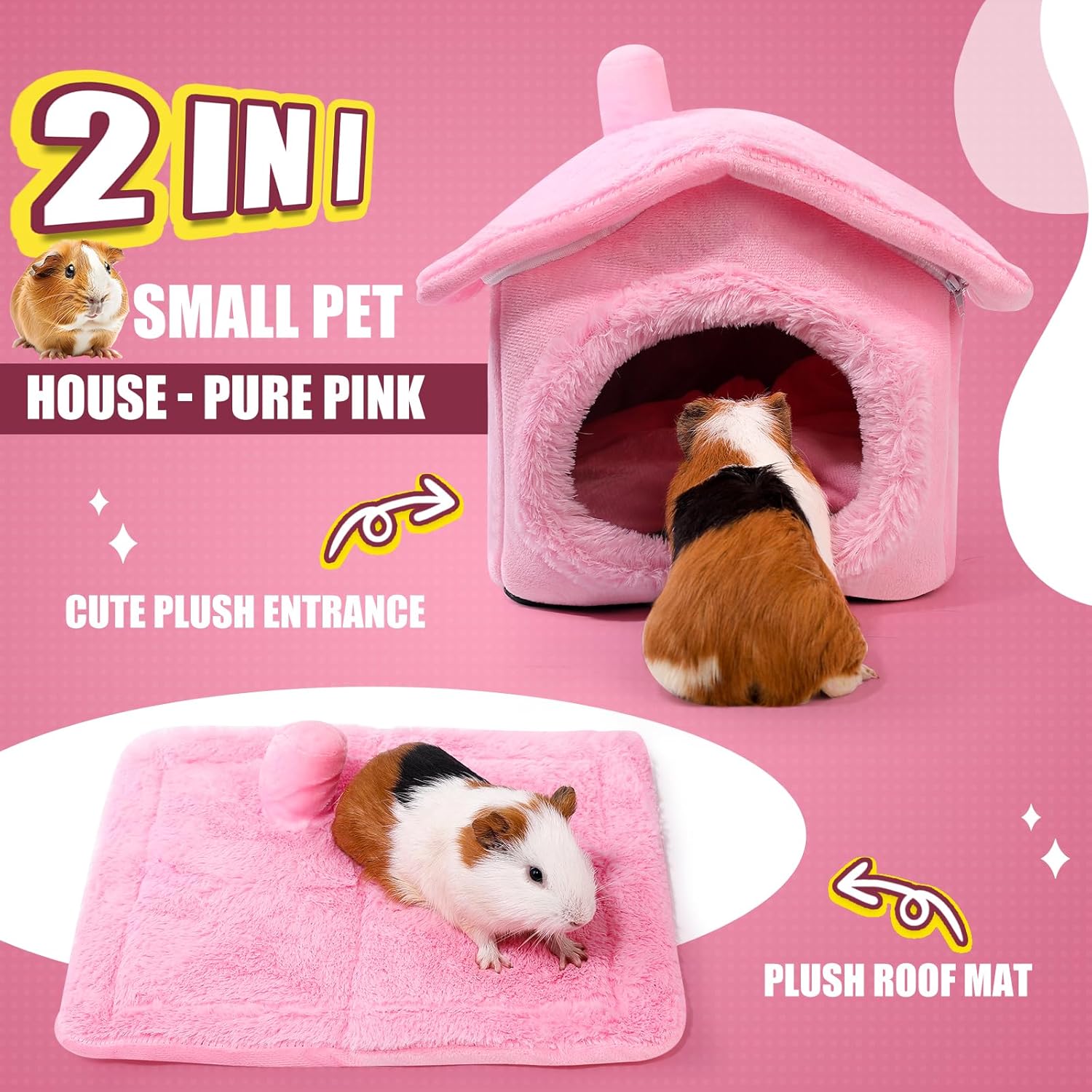 ONEJU Къщичка за морско свинче, отделящ се плюшен покрив, легло за морско свинче, скривалище за морско свинче, легло за зайци, клетка за зайци, къщичка за морско свинче за морски свинчета, зайци и зайчета, чисто розово Спецификация: легло за морско свинче Материали: полиестерни влакна легло за морско свинче Форма: форма на къщичка легло за морско свинче цвят: розов дължина на къщичката за морско свинче: 33 см ширина на къщичката за морско свинче: 30 см височина на къщичката за морско свинче: 26 см вход за къщичката за морско свинче: 133 см x 13 см Малка основа на къщичката за морско свинче: дължина на къщичката за морско свинче Малка подложка: 25 см ширина на къщичката за морско свинче Малка подложка: 23 см височина на къщичката за морско свинче Малка подложка: 4 см Легло за морско свинче Комплектът включва: 1 x къщичка за морско свинче ONEJU, чисто розово