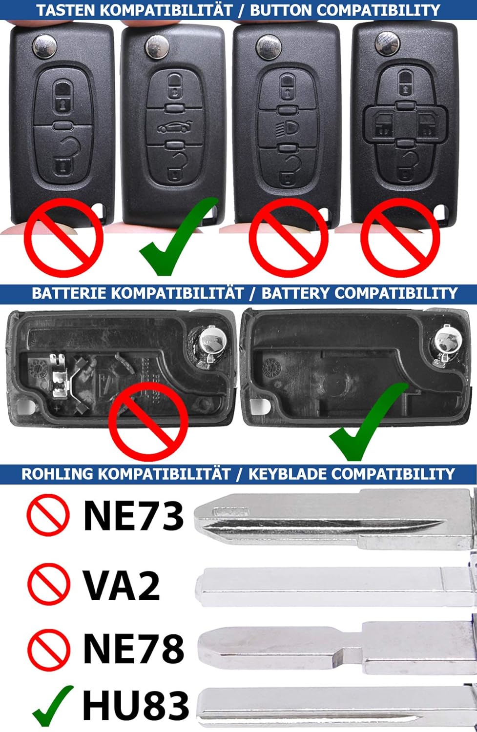 Gehäuse sind speziell zum Austausch für ein verschlissenes oder defektes Original Gehäuse gedacht.Dieses Gehäuse ist nicht auf einzelne Fahrzeuge bezogen. Die Kompatibilität richtet sich ausschließlich nach den Bildern. Sie müssen also lediglich unser Bildmaterial mit Ihrem Schlüssel vergleichen.