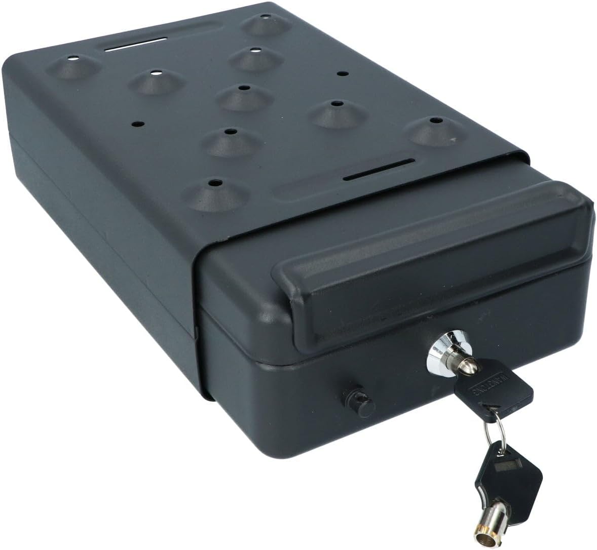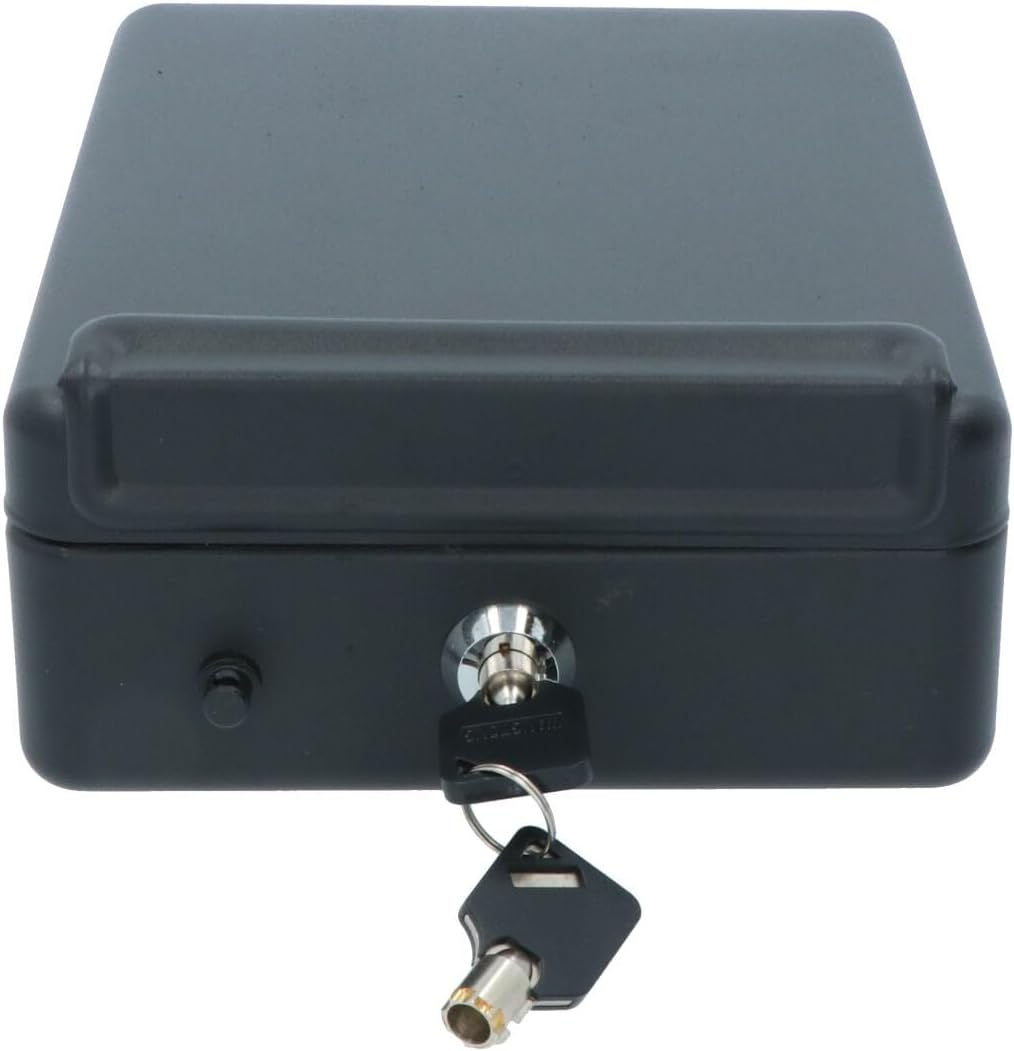 Компактният сейф с размери 225x160x75 мм се предлага с два ключа и монтажен хардуер.