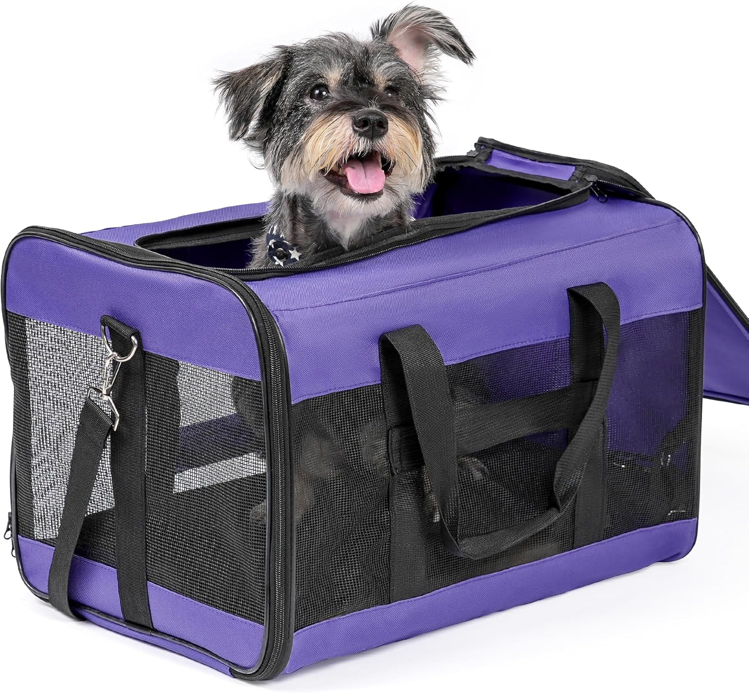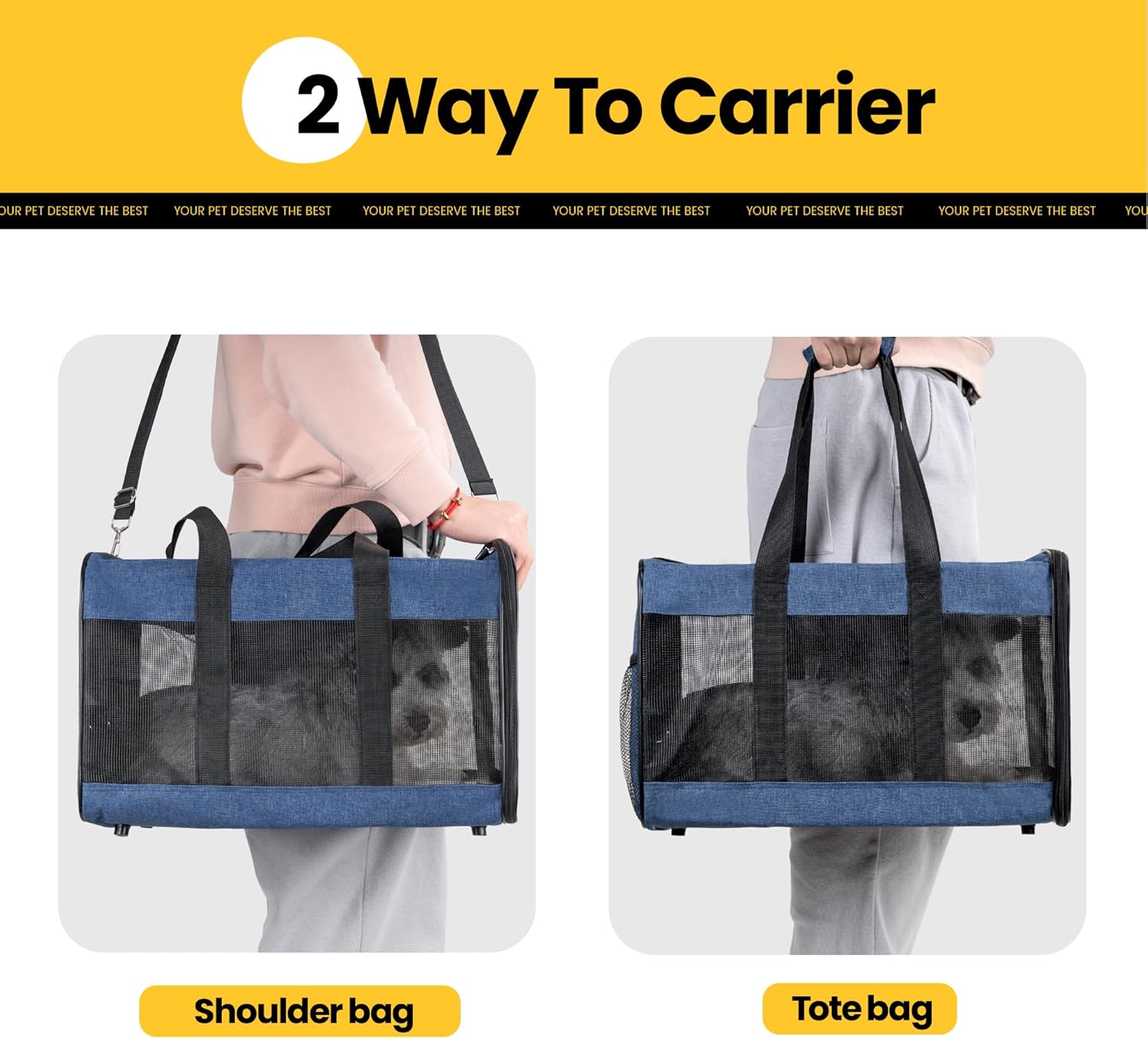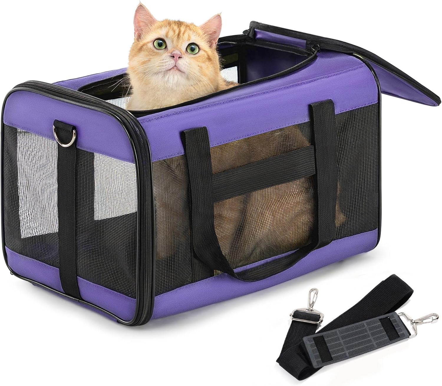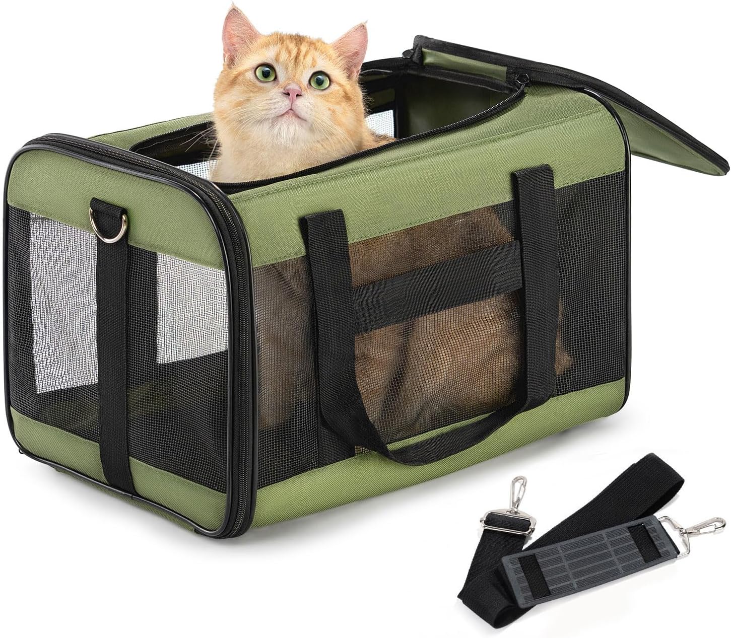 • Преносима и сгъваема: тази кутия за транспортиране на котки може да се носи като чанта или чанта през рамо с подплатената презрамка или дръжките тип „примка“, като презрамката е регулируема. Сгъваемият дизайн позволява чантата да се сгъва компактно, така че да може лесно да се съхранява.