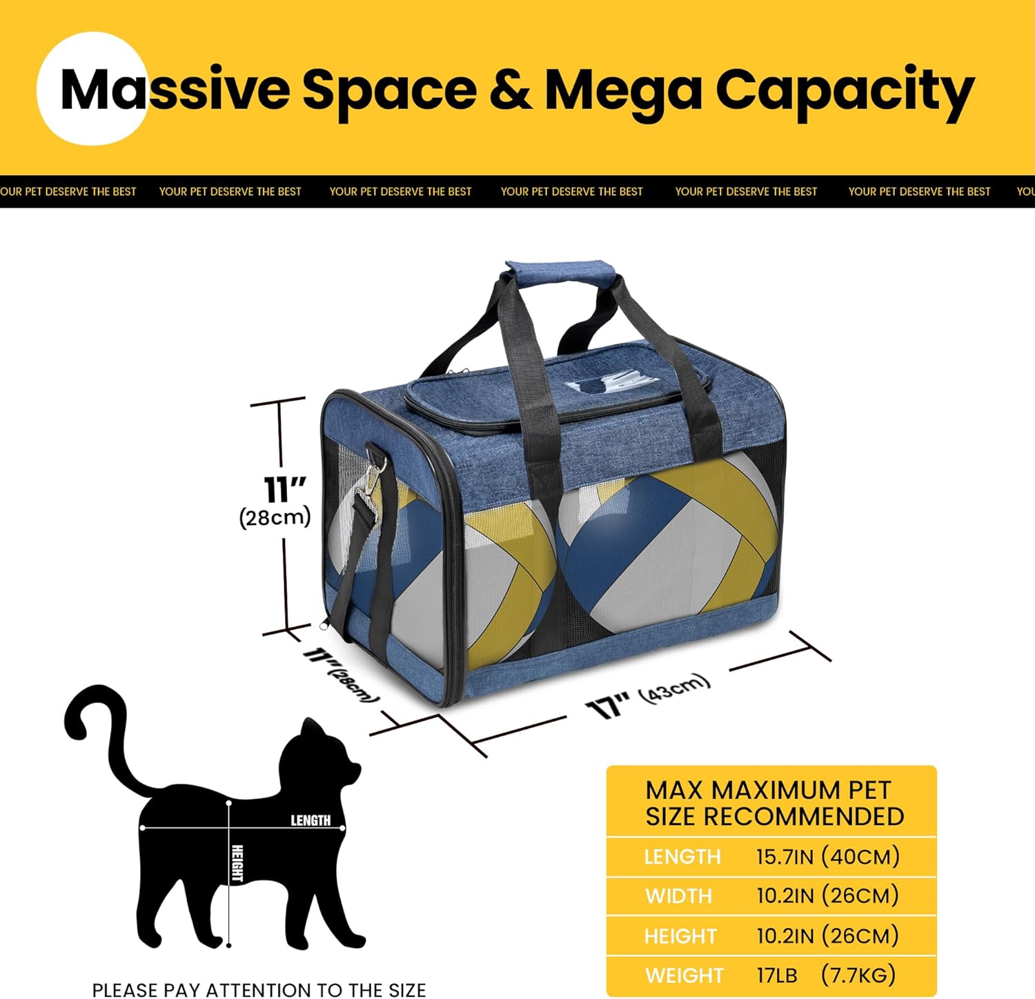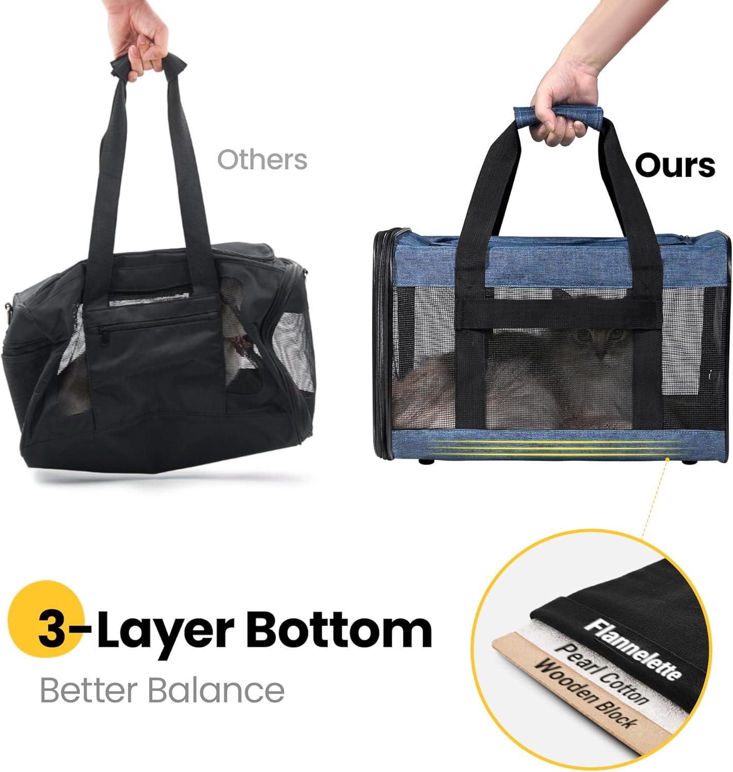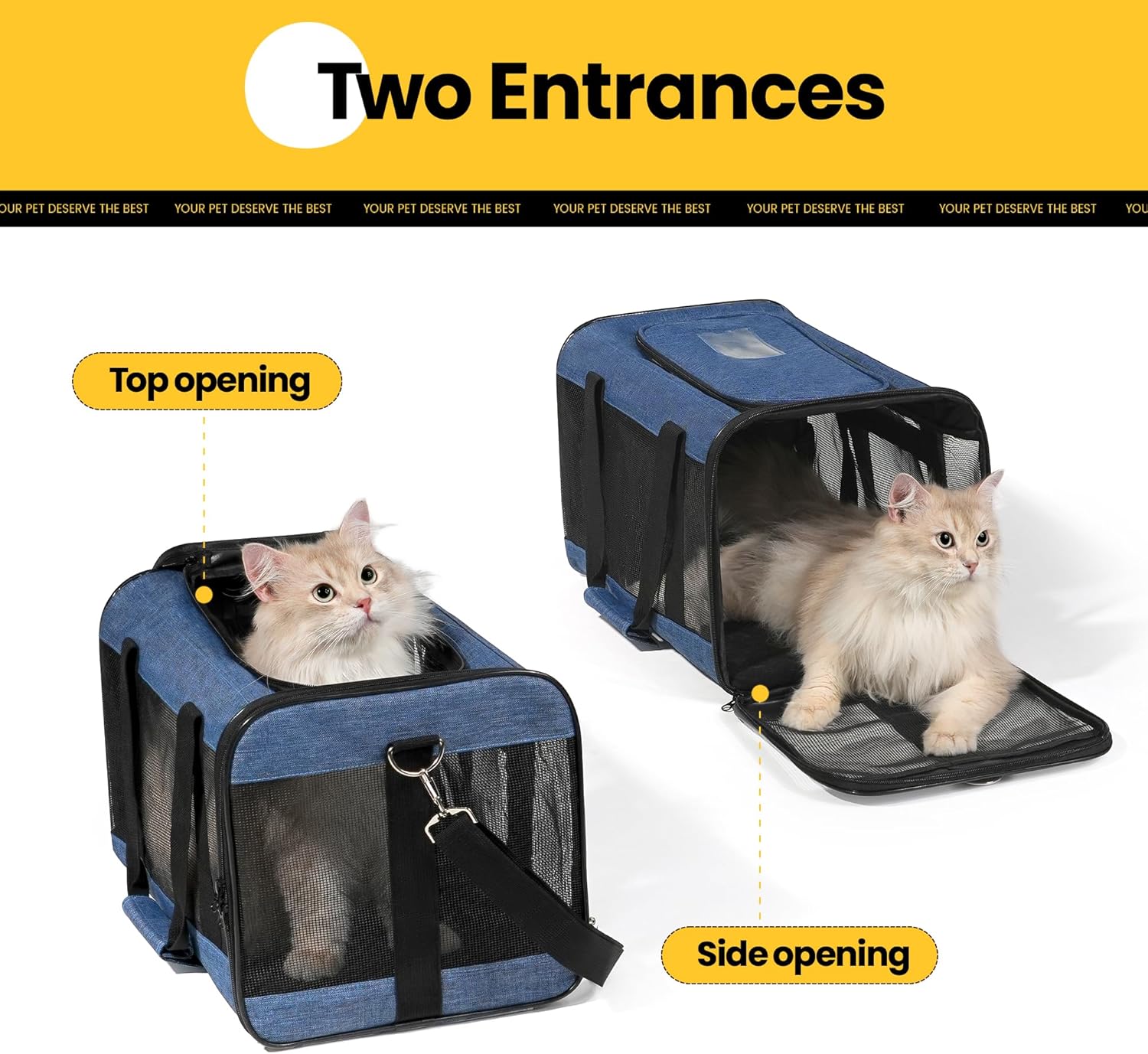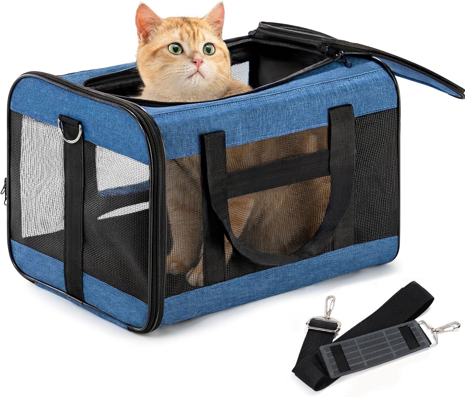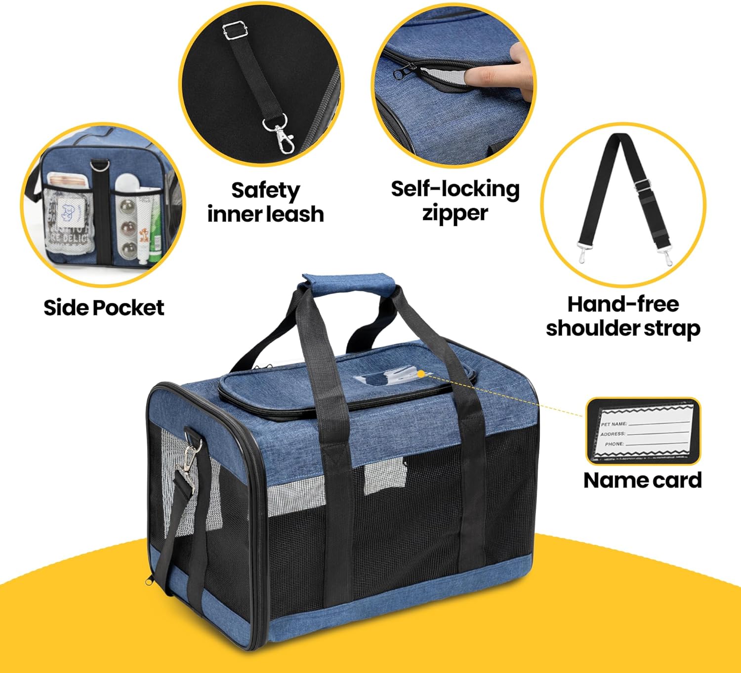 Кутия за котки Conlun, съвместима със самолет, кутия за транспортиране на кучета с меки страни и вътрешна каишка, транспорт за малки до средни котки и кученца до 7 кг, сгъваема чанта за пътуване, синя, размер M