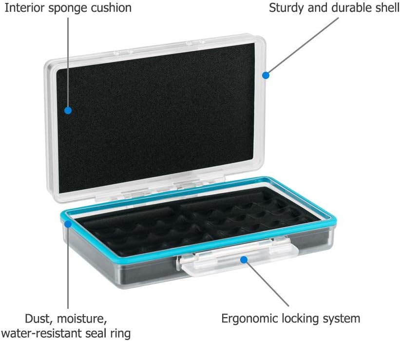 Кутията за батерии JJC е изработена от висококачествен PC материал, здрава и издръжлива, което я прави добър партньор, когато сте на къмпинг. Тя може да побере 6 броя батерии 18650 и ви позволява да съхранявате достатъчно резервни батерии, за да ги смените, когато фенерчето ви се изтощи. Кутията за батерии не само осигурява по-добра защита на вашите батерии, предпазвайки ги от късо съединение, но и ги държи подредени, за да се предотврати загуба. Освен това, кутията за батерии може да ги предпази от прах, влага, удари и пръски вода. Вътрешната гъбена възглавница също може ефективно да предотврати повреда на батериите и да ги предпази от удари. Здравата и ергономична заключваща система позволява лесно отваряне и затваряне. В допълнение, полупрозрачният корпус със светлосин уплътнителен пръстен прави кутията да изглежда модерен и красив.