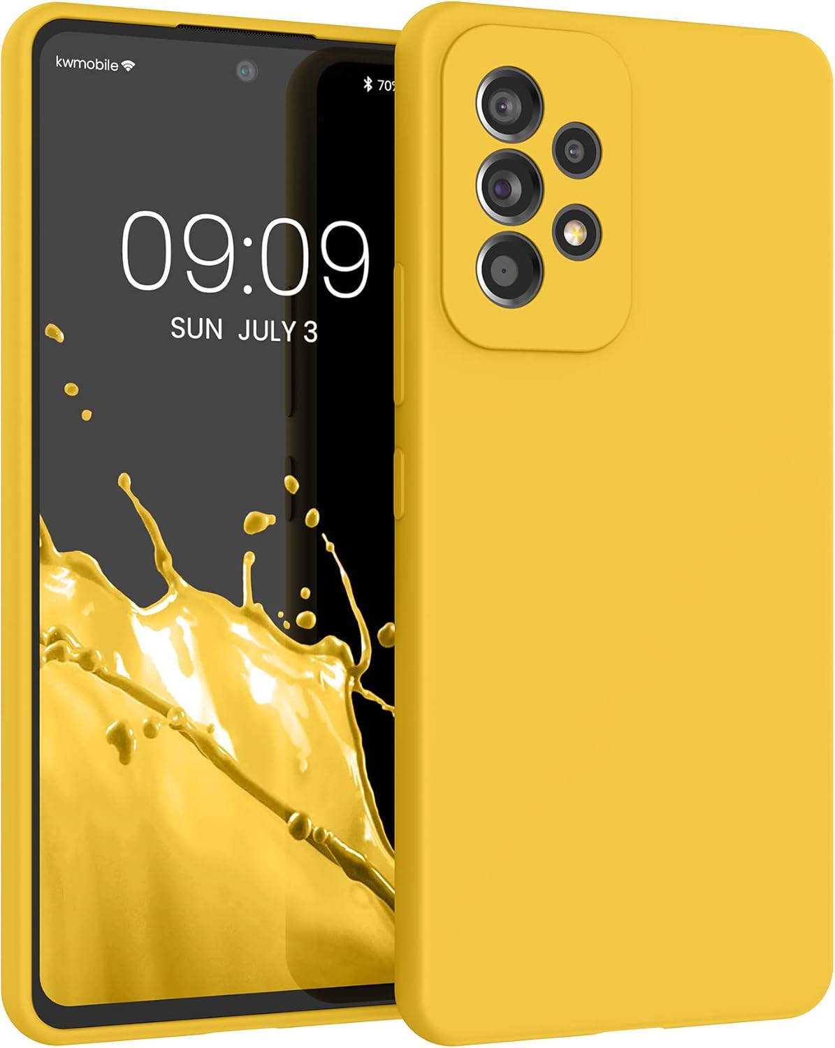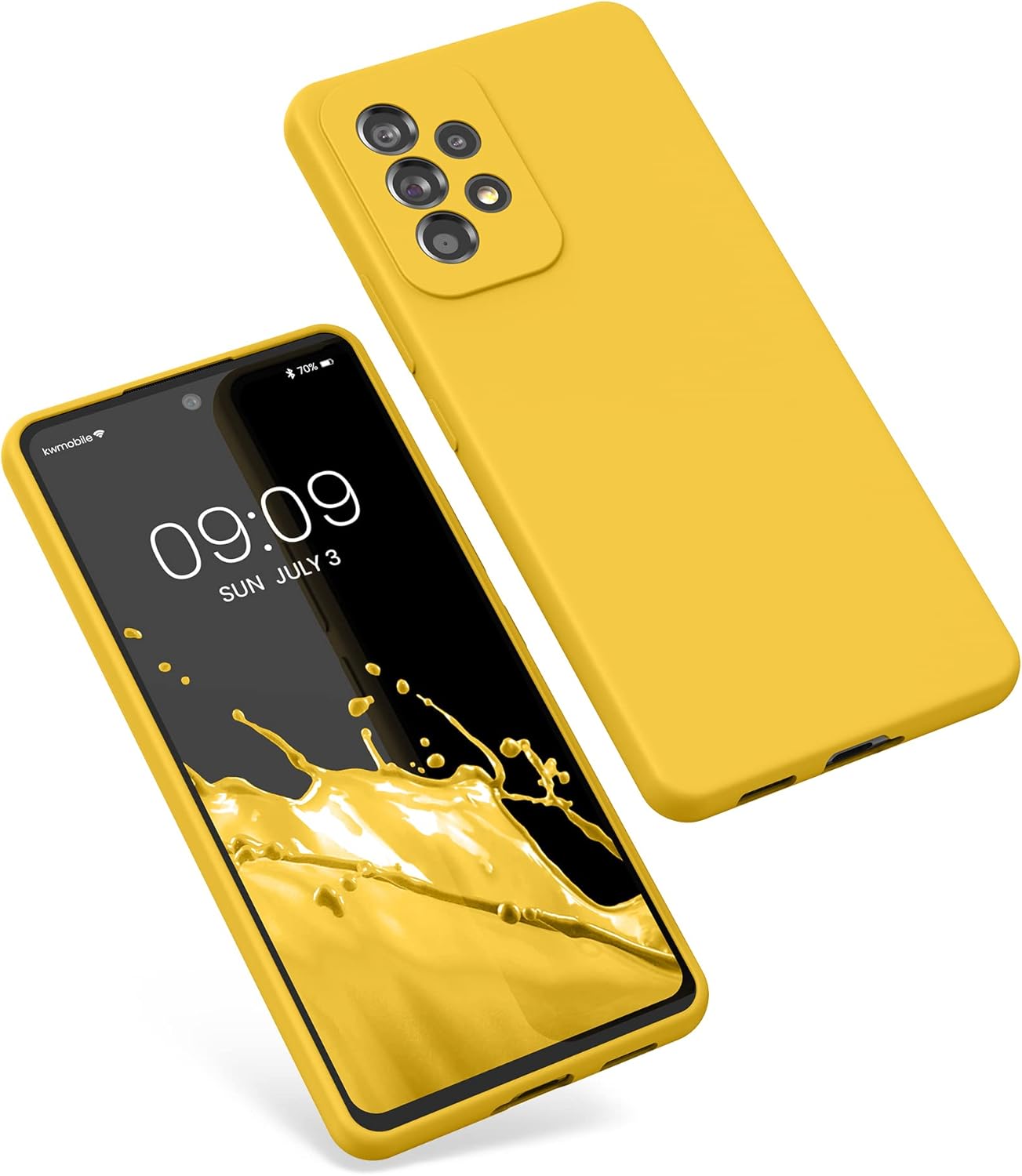 kwmobile калъф, съвместим с Samsung Galaxy A53 5G калъф, тънък, силиконов, калъф за мобилен телефон, мека повърхност, безжично зареждане, ярко жълт