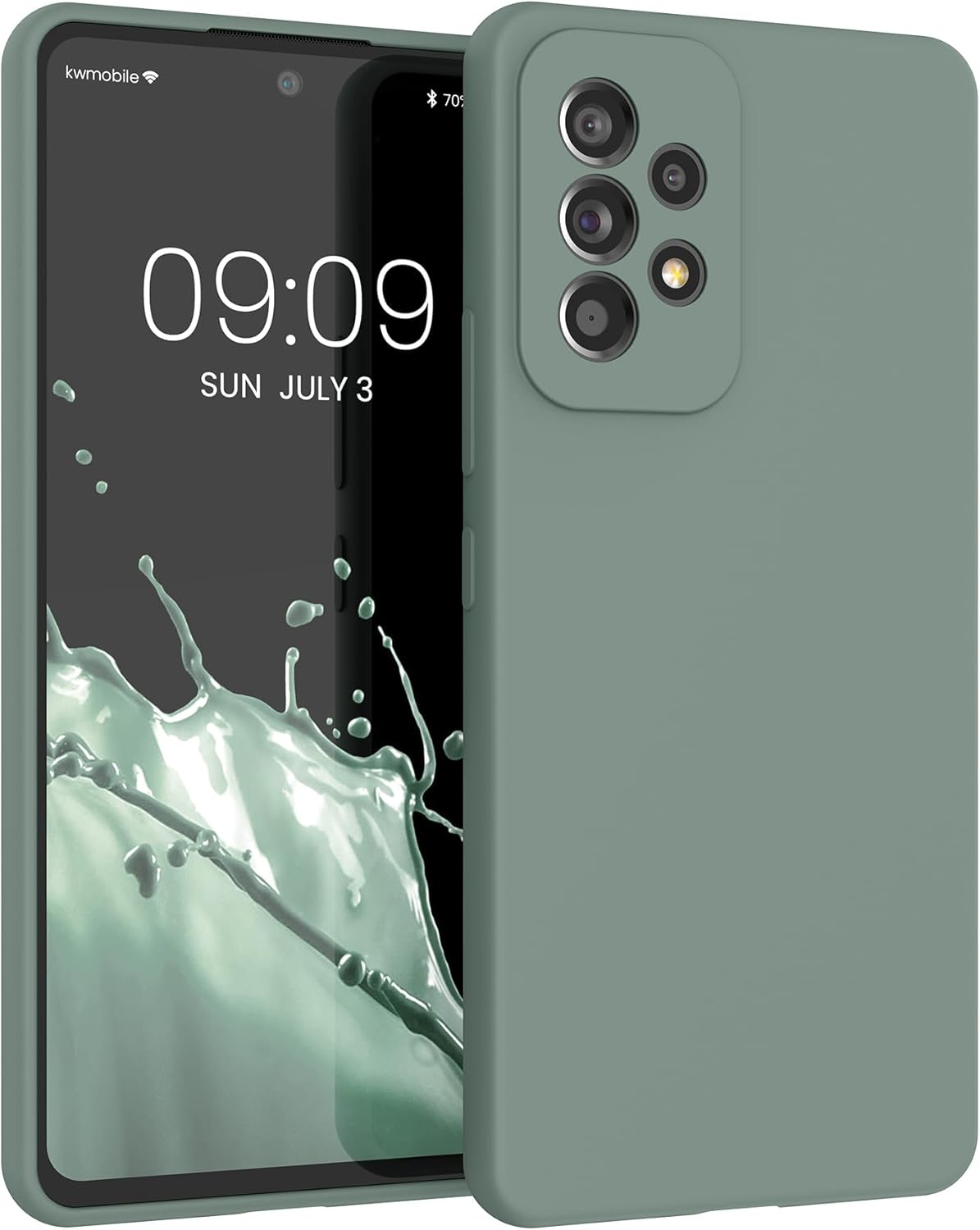 kwmobile калъф, съвместим с Samsung Galaxy A53 5G калъф, тънък, силиконов, калъф за мобилен телефон, мека повърхност, безжично зареждане, измито зелено