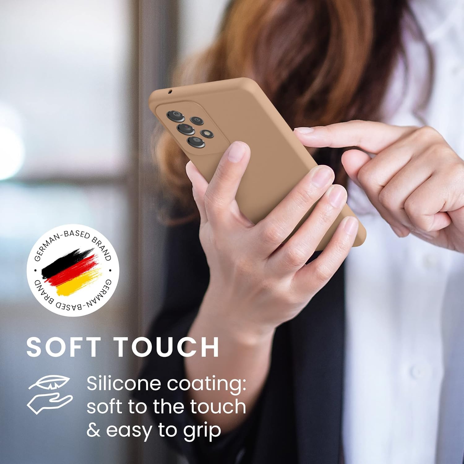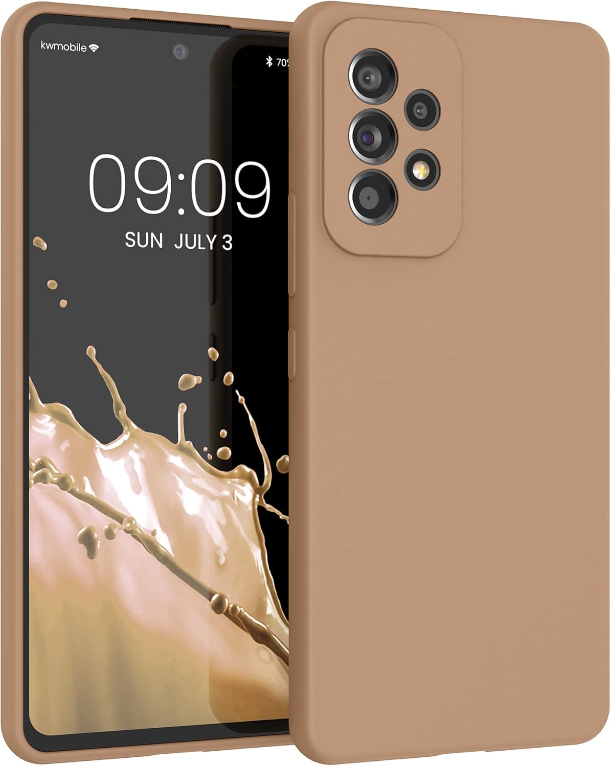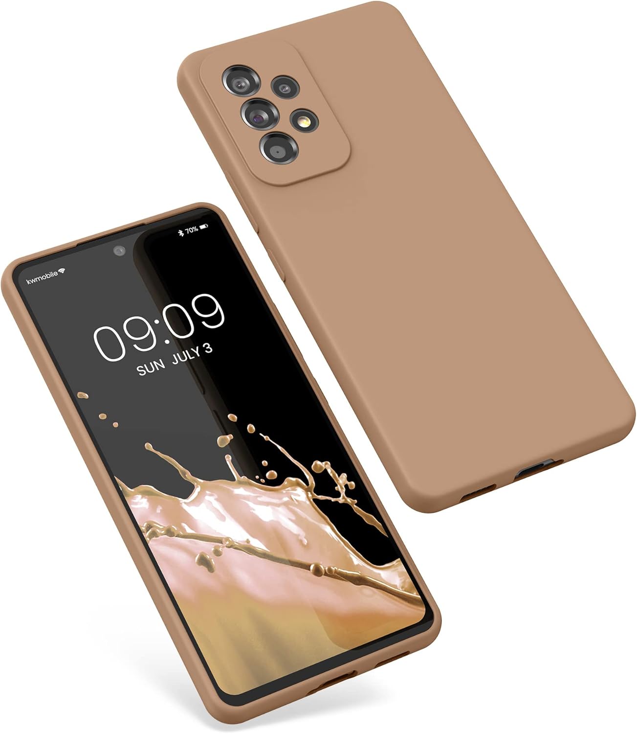 kwmobile калъф, съвместим с Samsung Galaxy A53 5G калъф, тънък, силиконов, калъф за мобилен телефон, мека повърхност, безжично зареждане, капучино