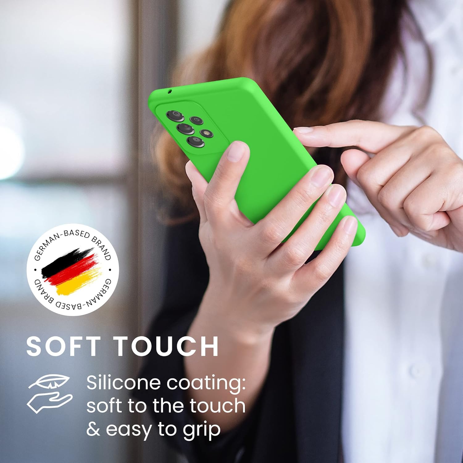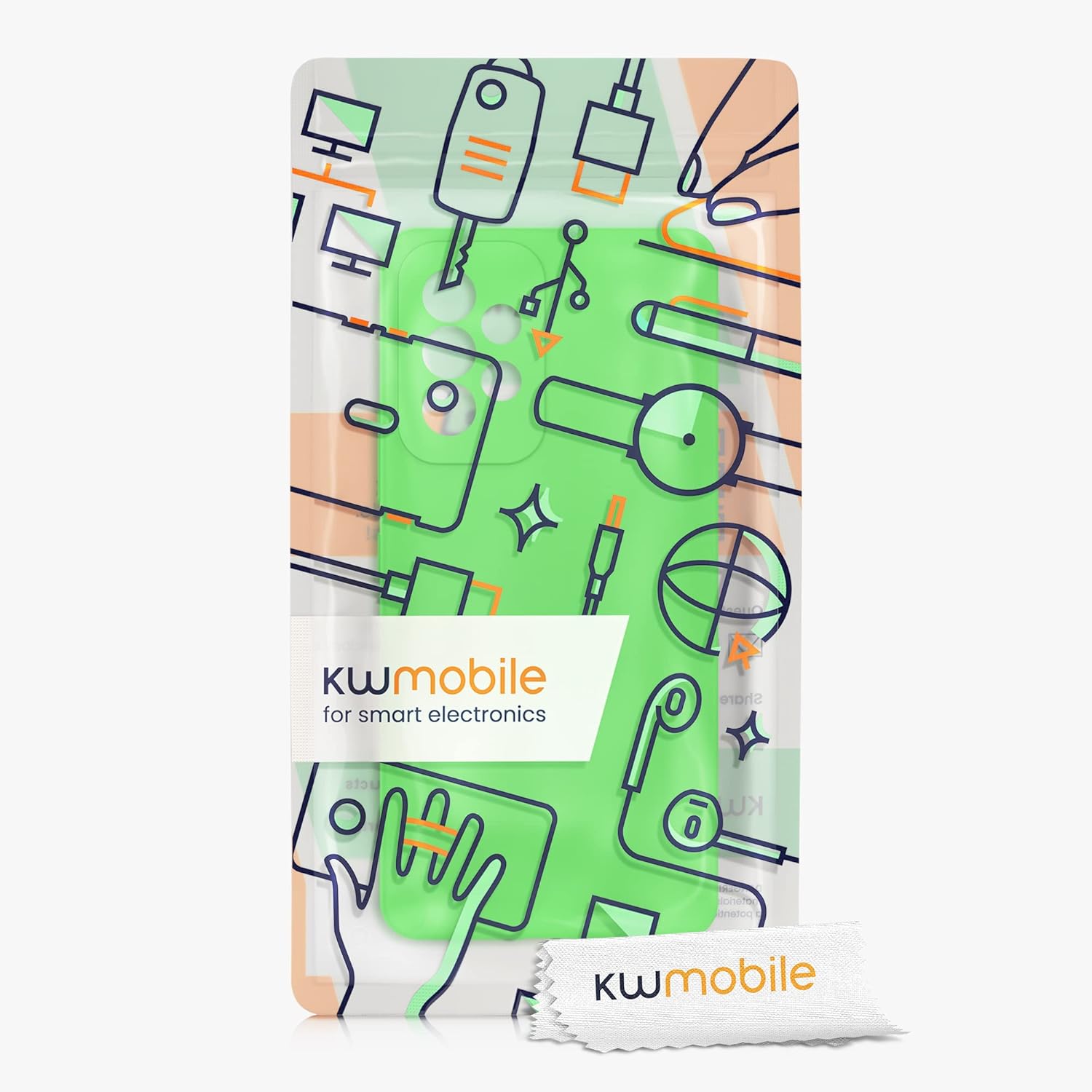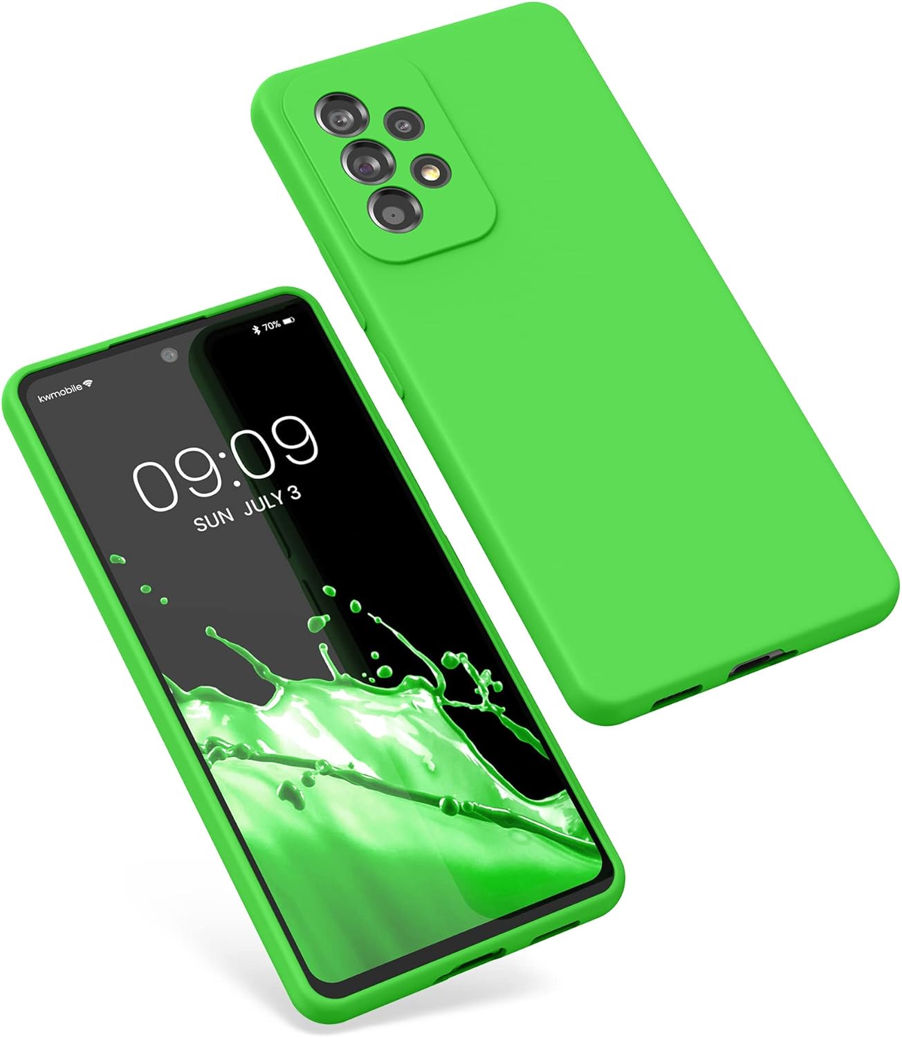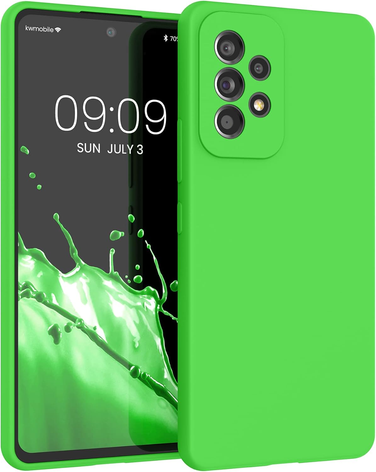 kwmobile калъф, съвместим с Samsung Galaxy A53 5G калъф, тънък, силиконов, калъф за мобилен телефон, мека повърхност, безжично зареждане, лайм зелен