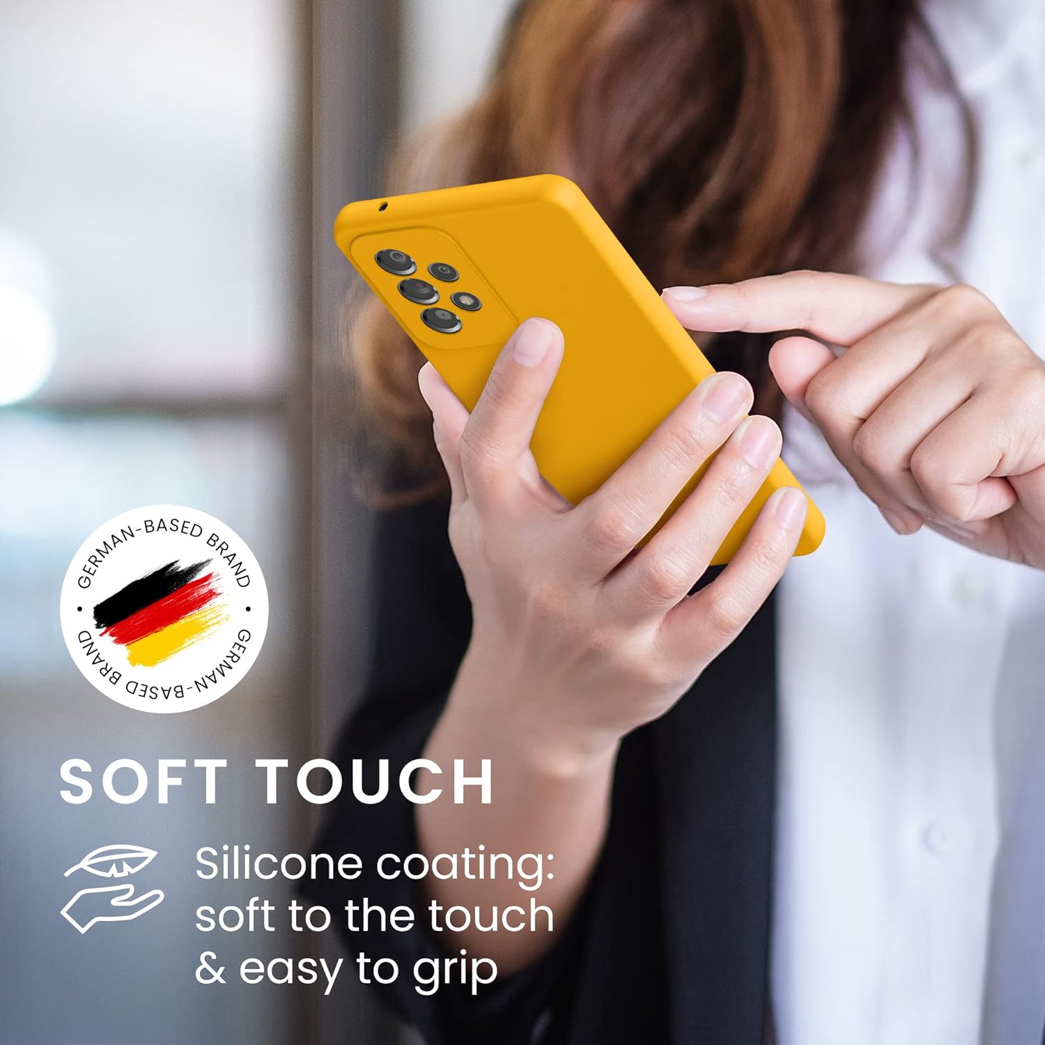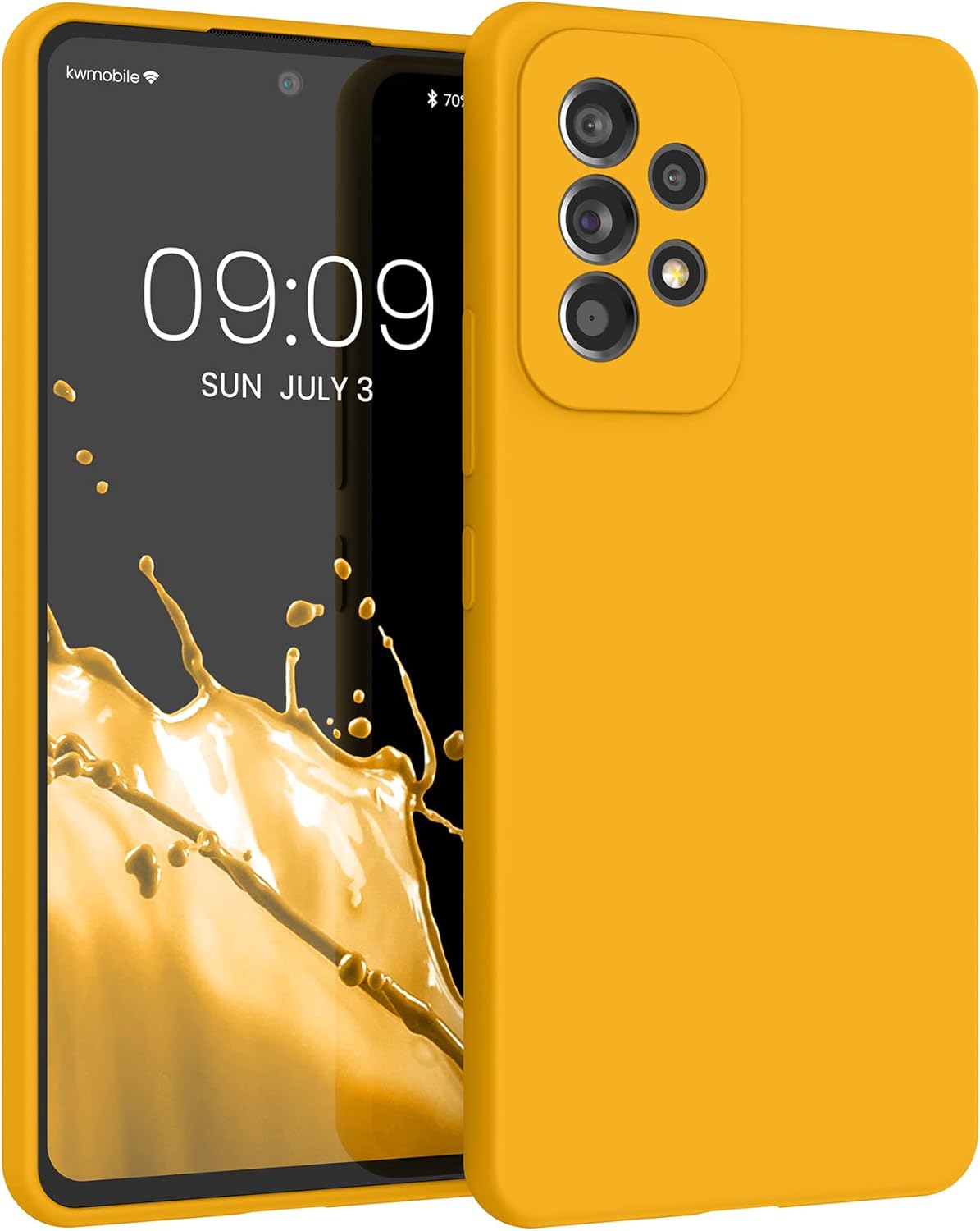kwmobile калъф, съвместим с Samsung Galaxy A53 5G калъф, тънък, силиконов, калъф за мобилен телефон, мека повърхност, безжично зареждане, меденожълт
