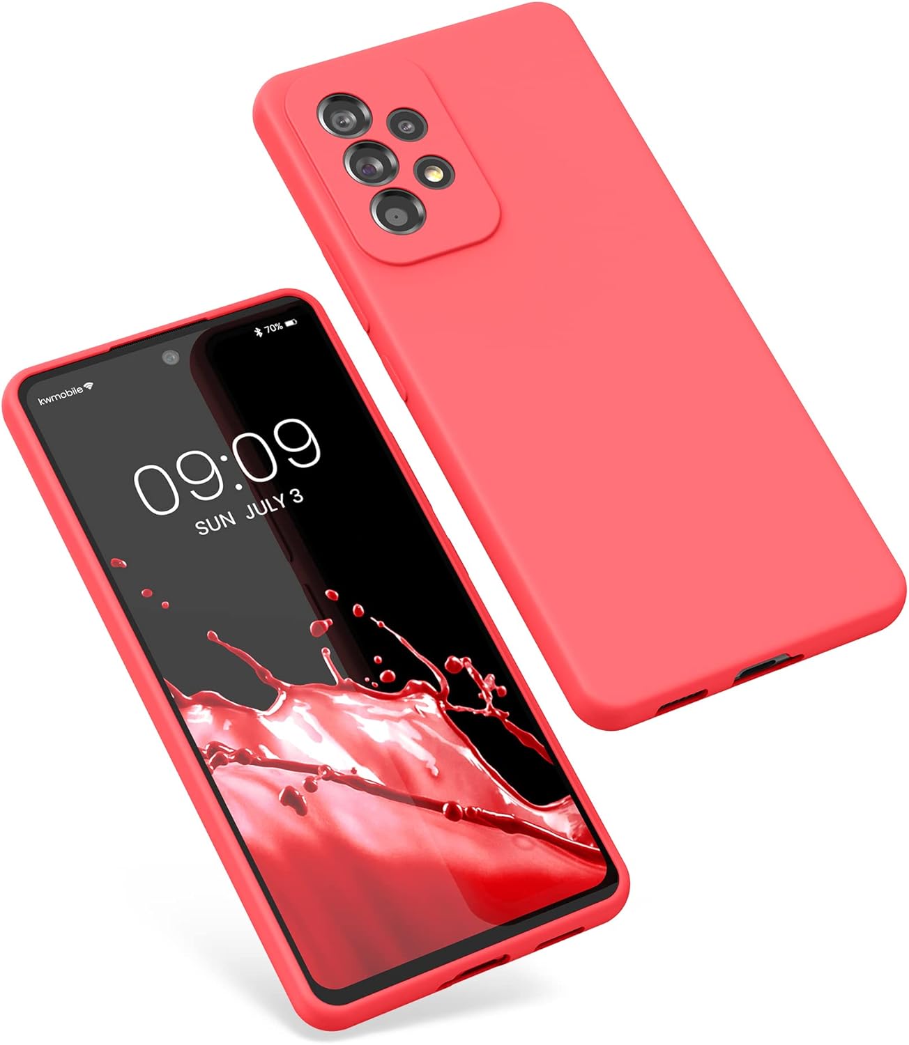 kwmobile калъф, съвместим с Samsung Galaxy A53 5G калъф, тънък, силиконов, калъф за мобилен телефон, мека повърхност, безжично зареждане, неоново-коралов