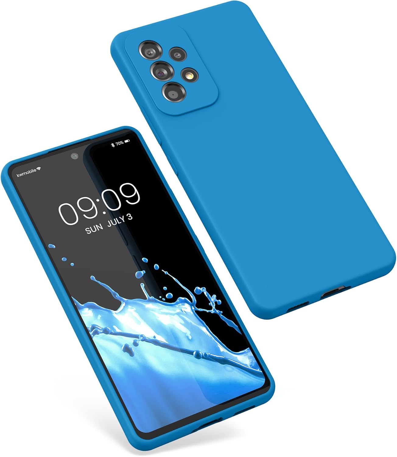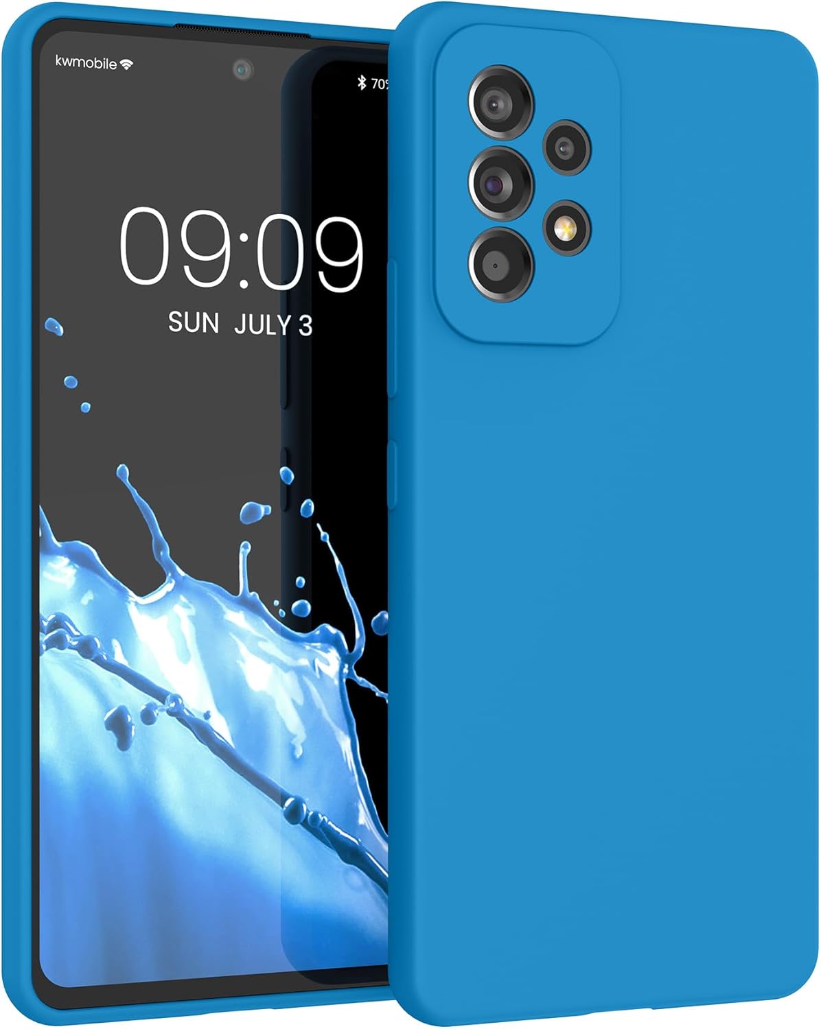 kwmobile калъф, съвместим с Samsung Galaxy A53 5G калъф, тънък, силиконов, калъф за мобилен телефон, мека повърхност, безжично зареждане, неоново син
