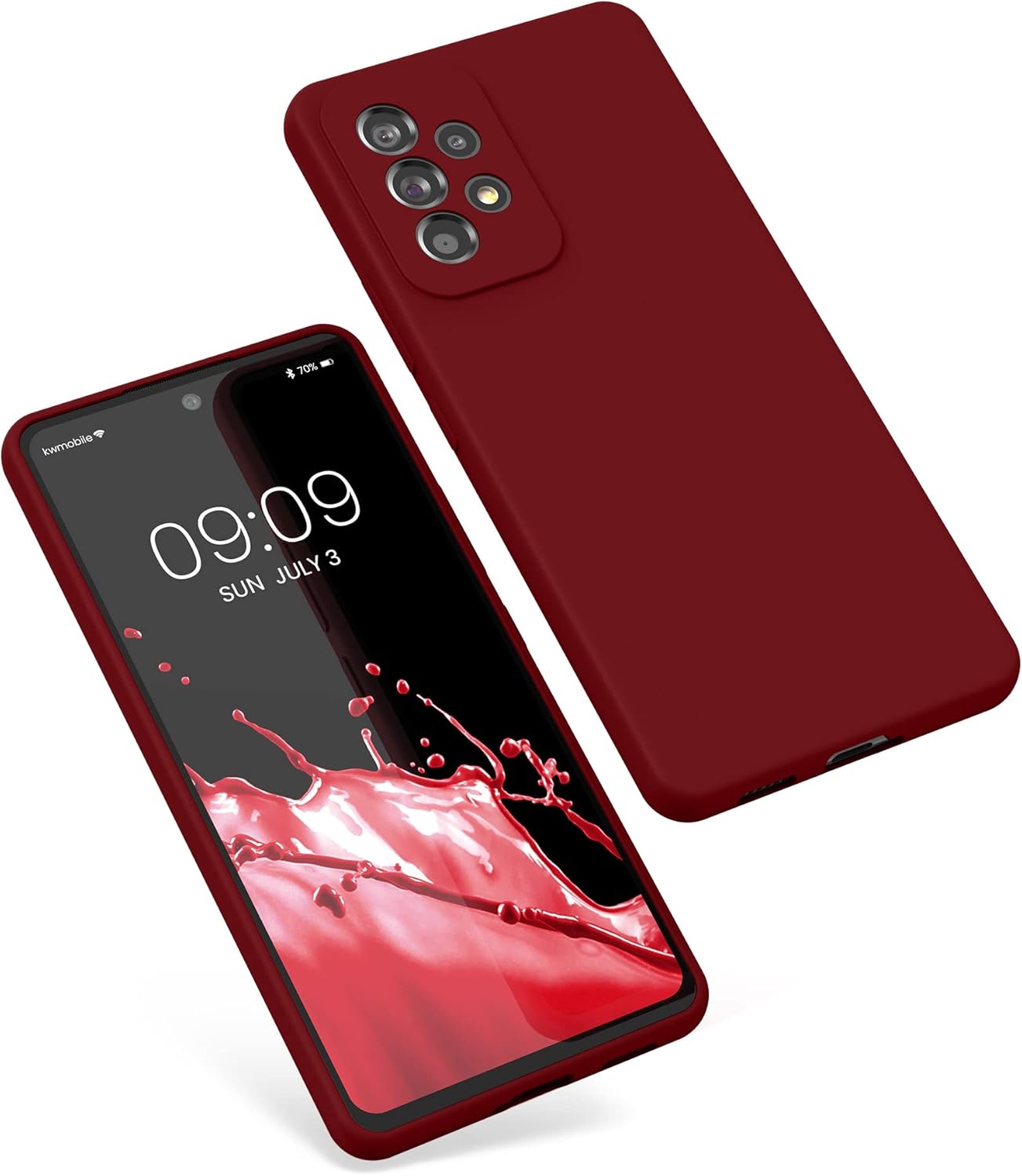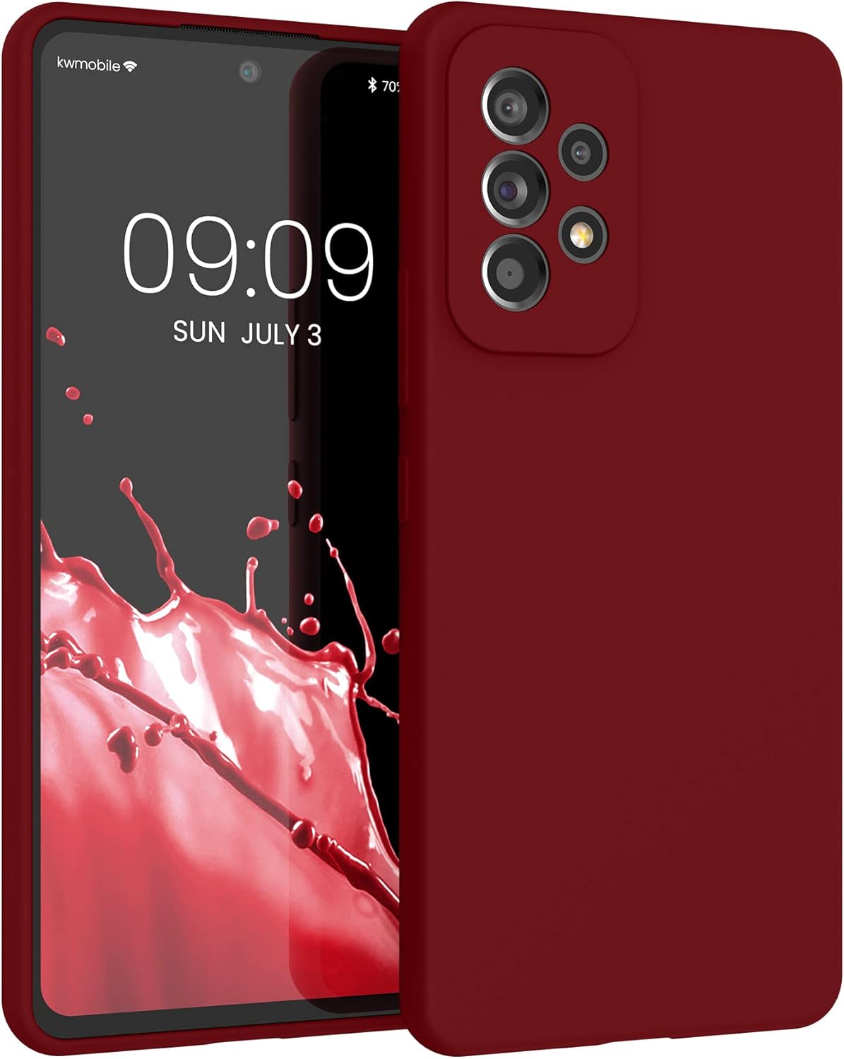 kwmobile калъф, съвместим с Samsung Galaxy A53 5G калъф, тънък, силиконов, калъф за мобилен телефон, мека повърхност, безжично зареждане, ревеново червен