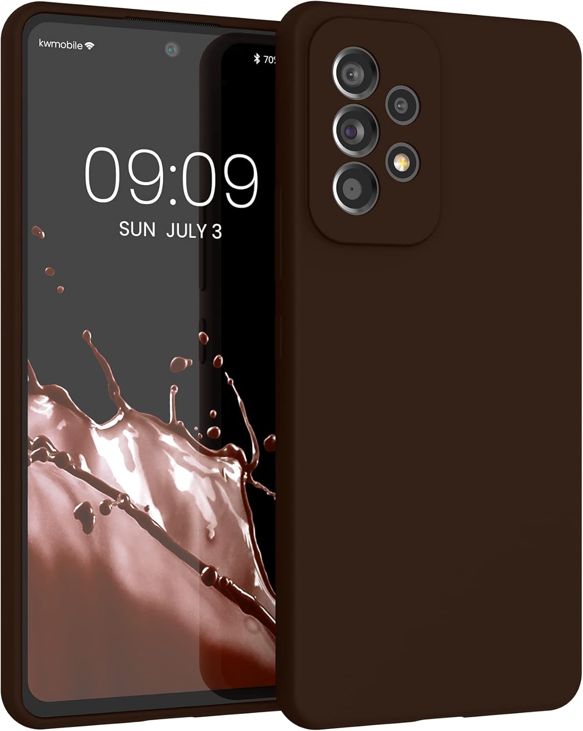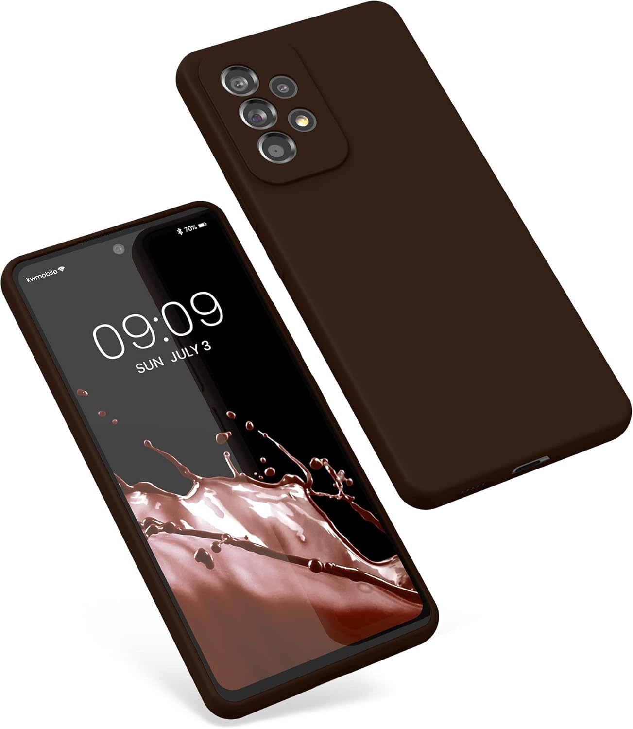 kwmobile калъф, съвместим с Samsung Galaxy A53 5G калъф, тънък, силиконов, калъф за мобилен телефон, мека повърхност, безжично зареждане, шоколадов