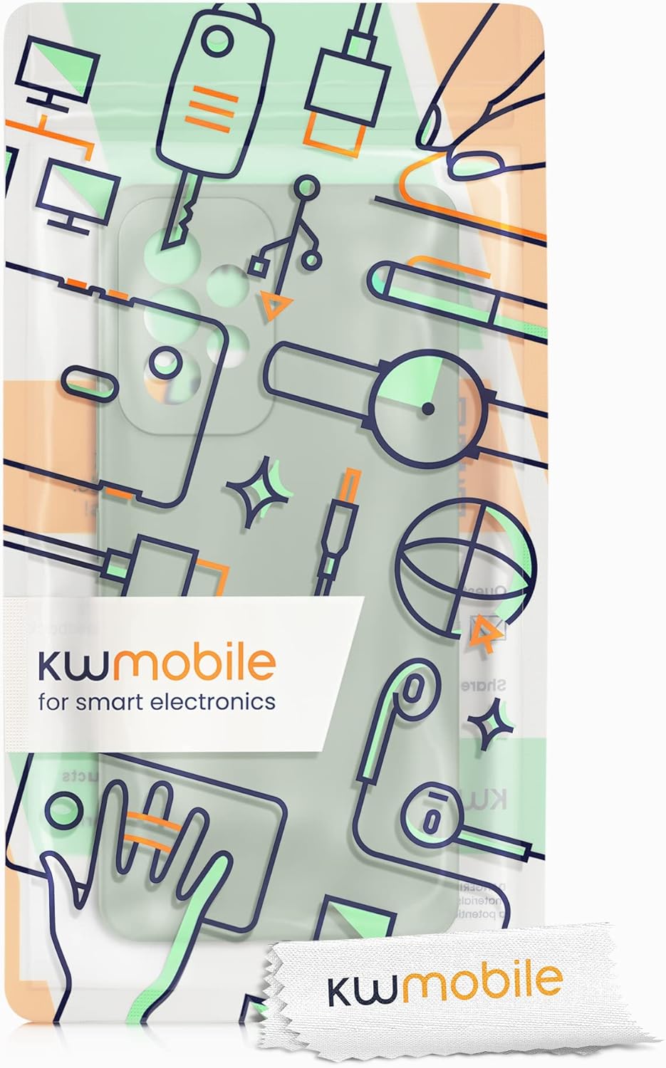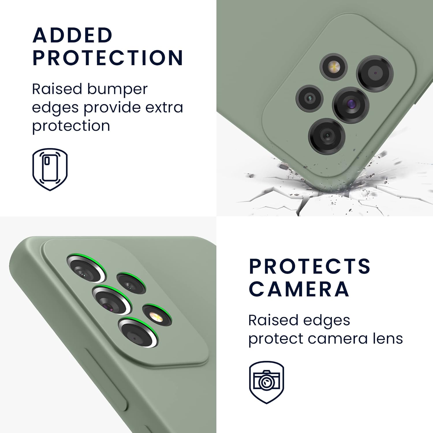 kwmobile калъф, съвместим с Samsung Galaxy A53 5G калъф, тънък, силиконов, калъф за мобилен телефон, мека повърхност, безжично зареждане, сиво-зелен