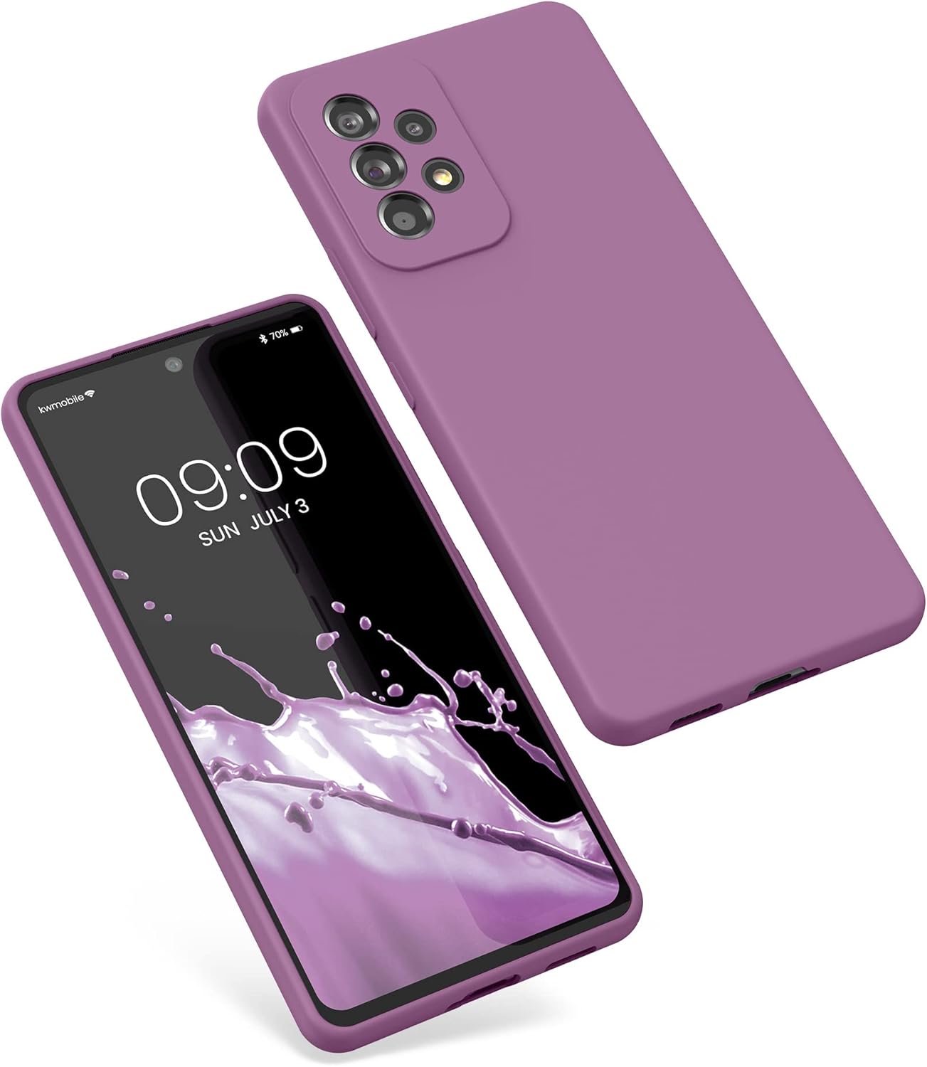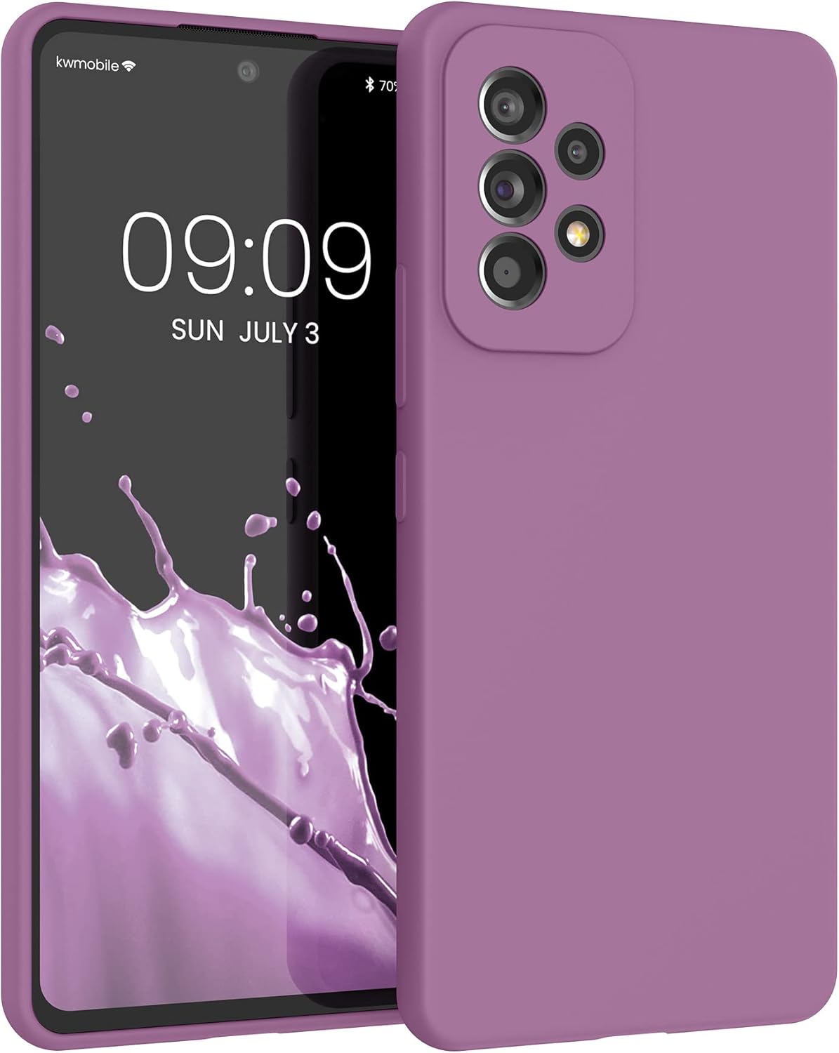 kwmobile калъф, съвместим с Samsung Galaxy A53 5G калъф, тънък, силиконов, калъф за мобилен телефон, мека повърхност, безжично зареждане, цвят орхидея лилаво
