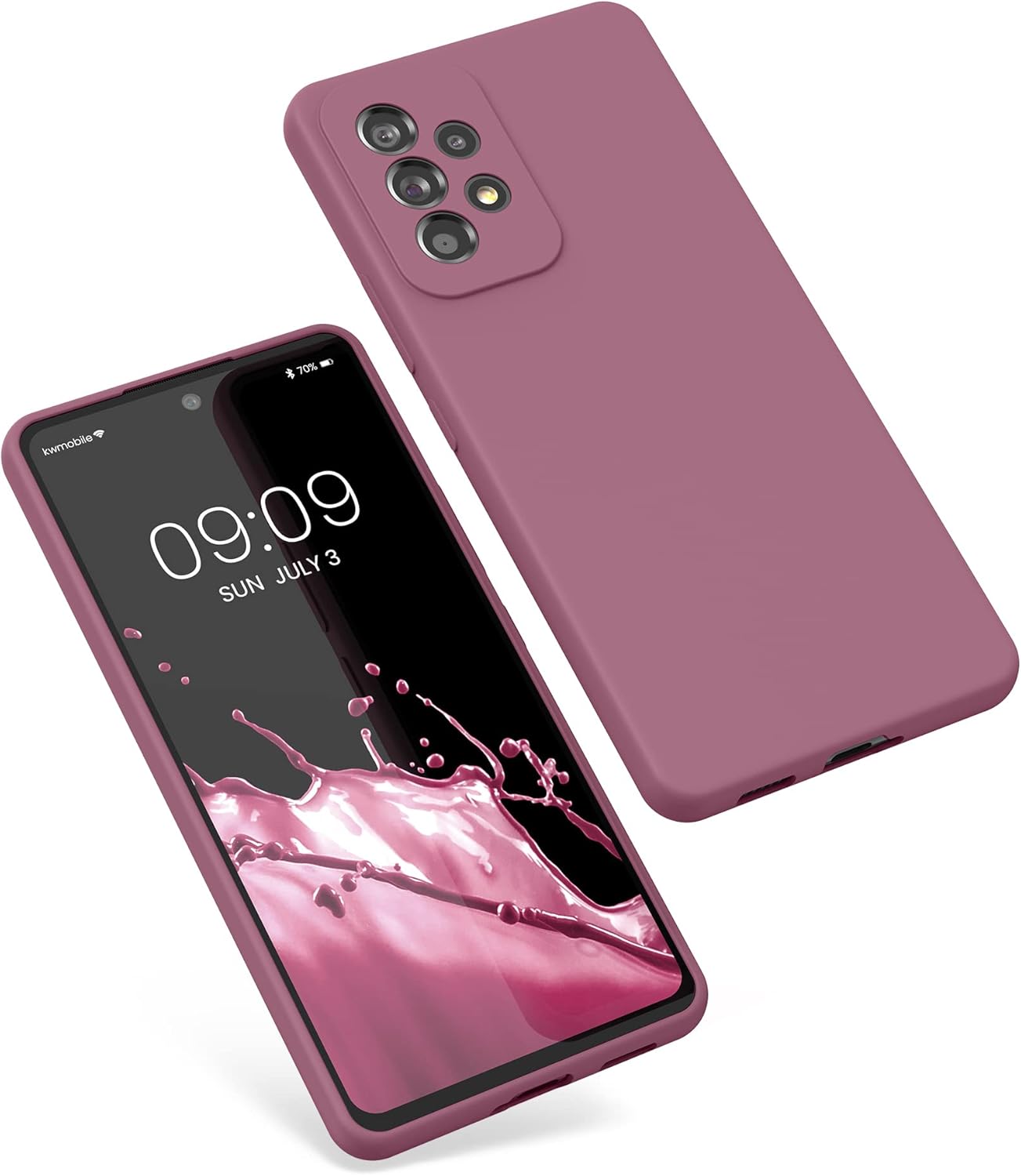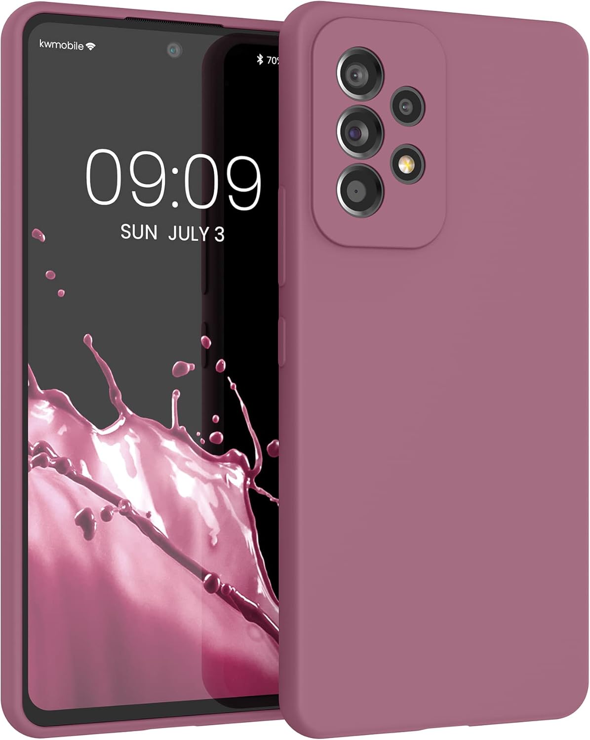 kwmobile калъф, съвместим с Samsung Galaxy A53 5G калъф, тънък, силиконов, калъф за мобилен телефон, мека повърхност, безжично зареждане, тъмнорозов