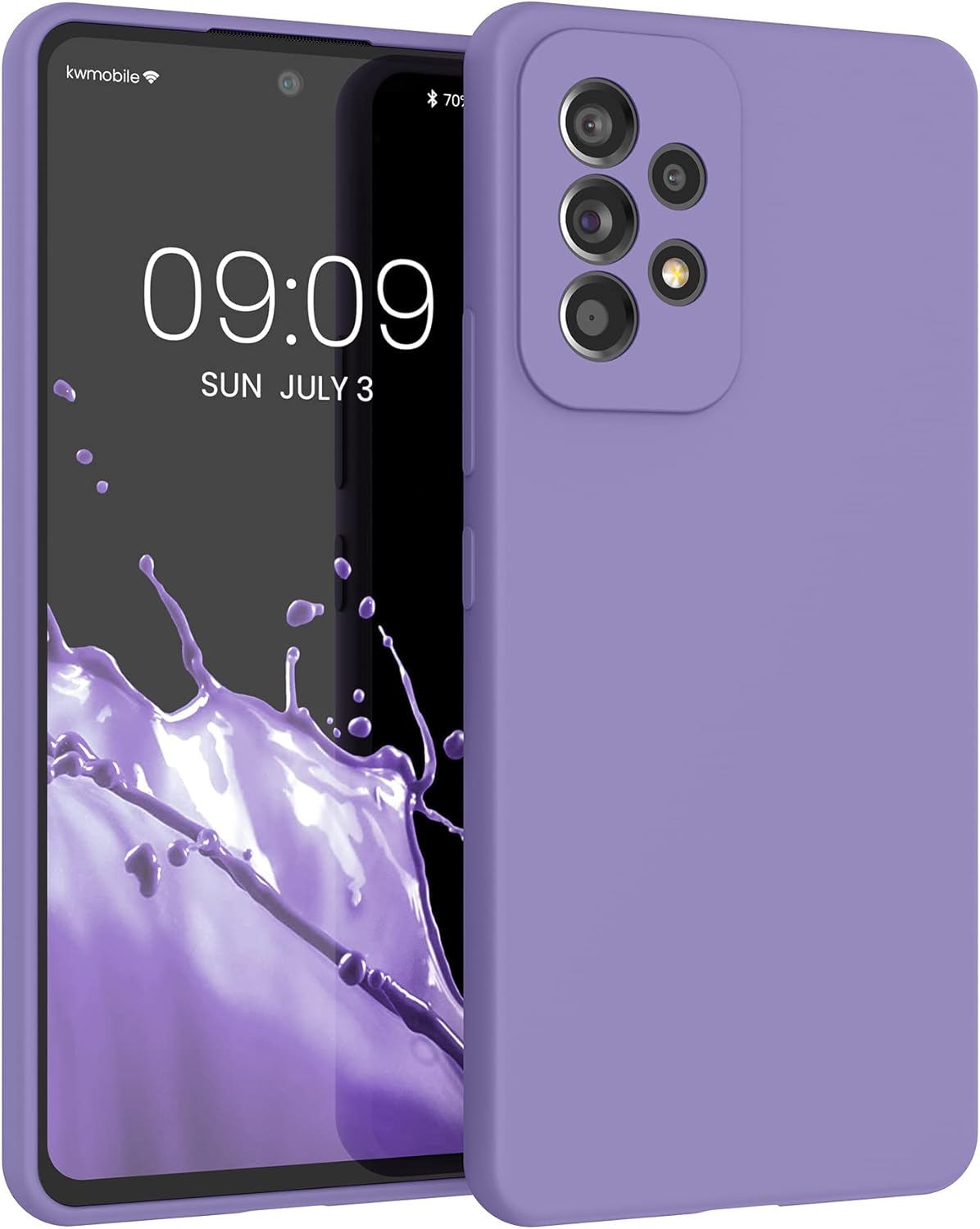 kwmobile калъф, съвместим с Samsung Galaxy A53 5G калъф, тънък, силиконов, калъф за мобилен телефон, мека повърхност, безжично зареждане, виолетово-лилав