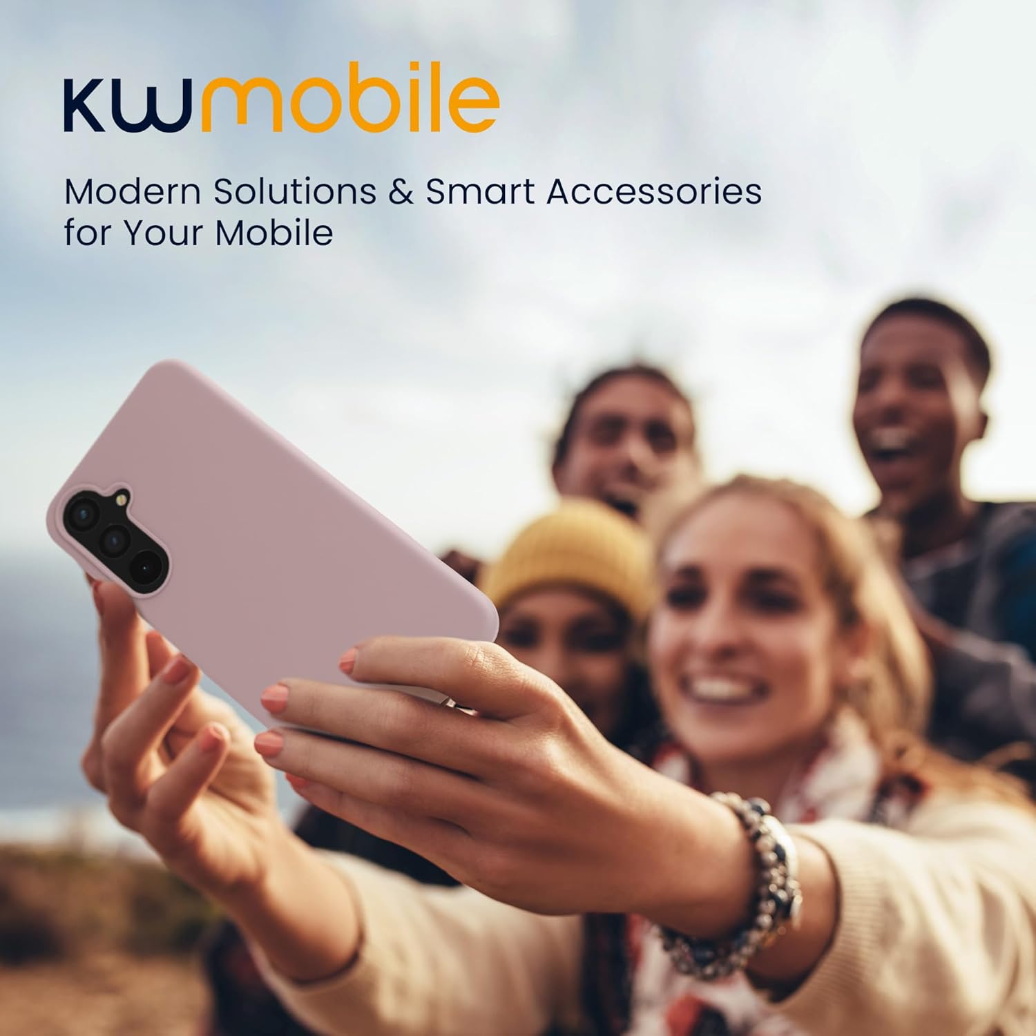 kwmobile калъф, съвместим с Samsung Galaxy A55 5G калъф, тънък, силиконов, калъф за мобилен телефон, мека повърхност, безжично зареждане, люляк с телесен цвят