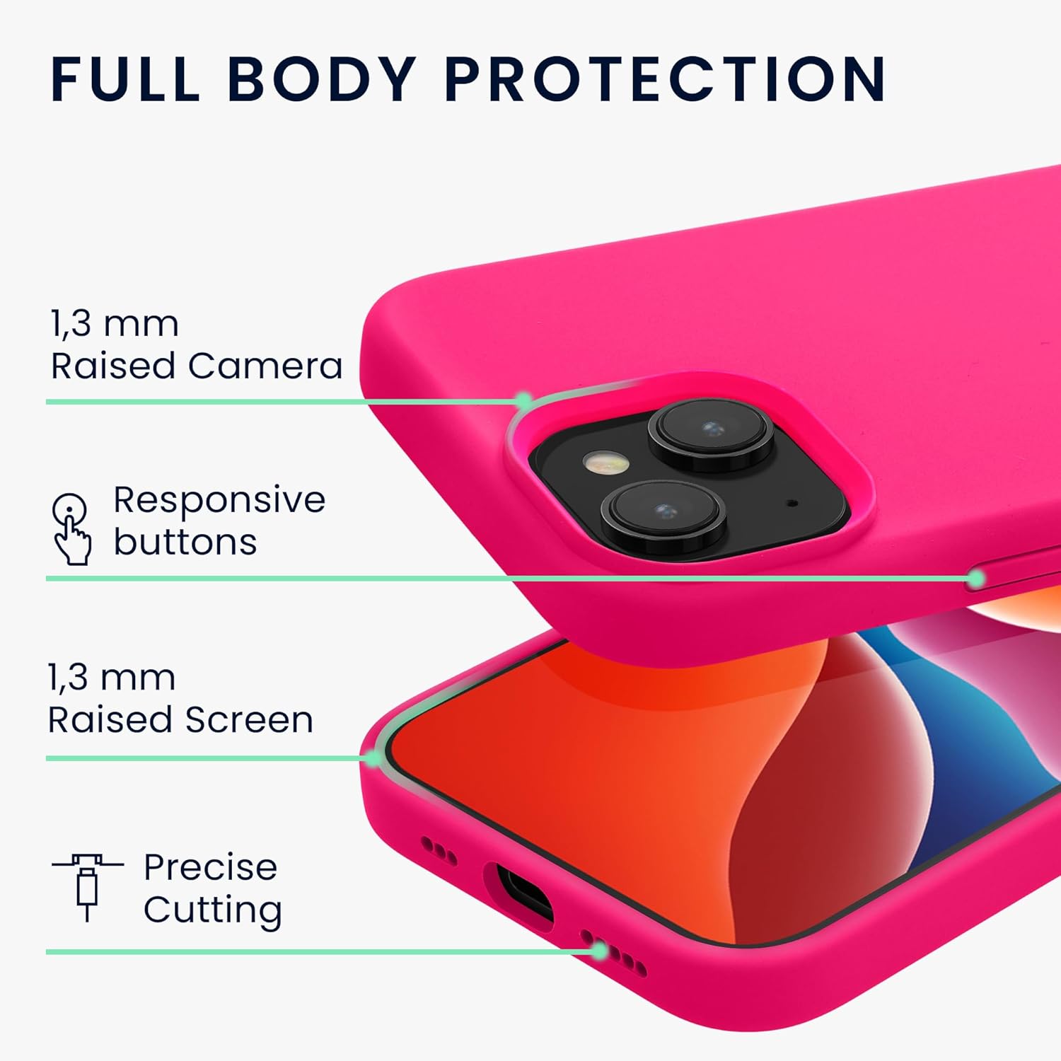 • ИНДИВИДУАЛНИ И БЪРЗО ЦВЕТОВЕ: Нашата многоцветна гама калъфи за iPhone 15 не избледнява лесно. Персонализирайте външния вид на телефона си с неоново розов калъф.