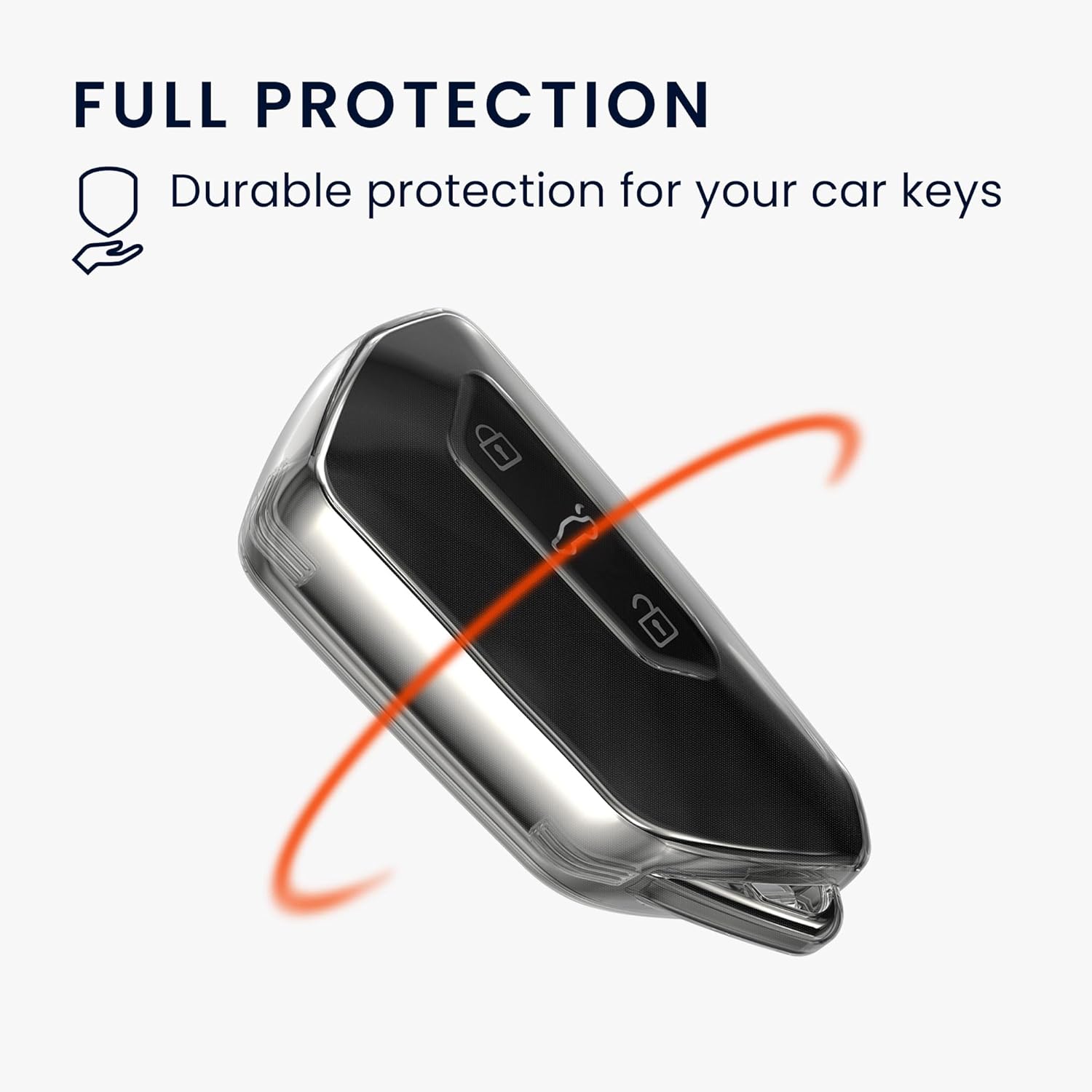 kwmobile Кутия за автомобилен ключ, съвместима с VW Golf 8 с 3 бутона - Силиконов калъф за ключ - Черен, прозрачен