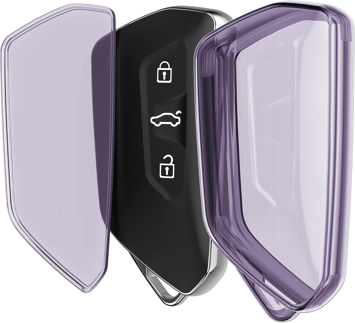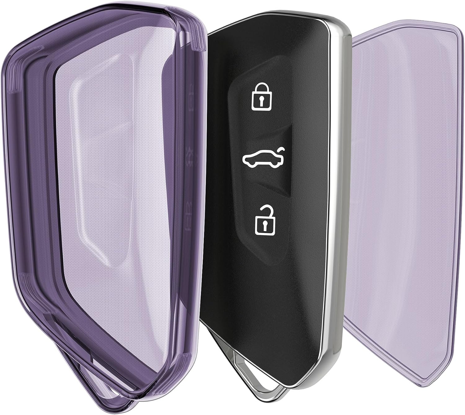 kwmobile Кутия за автомобилен ключ, съвместима с VW Golf 8 с 3 бутона - Силиконов калъф за ключ - Виолетов прозрачен