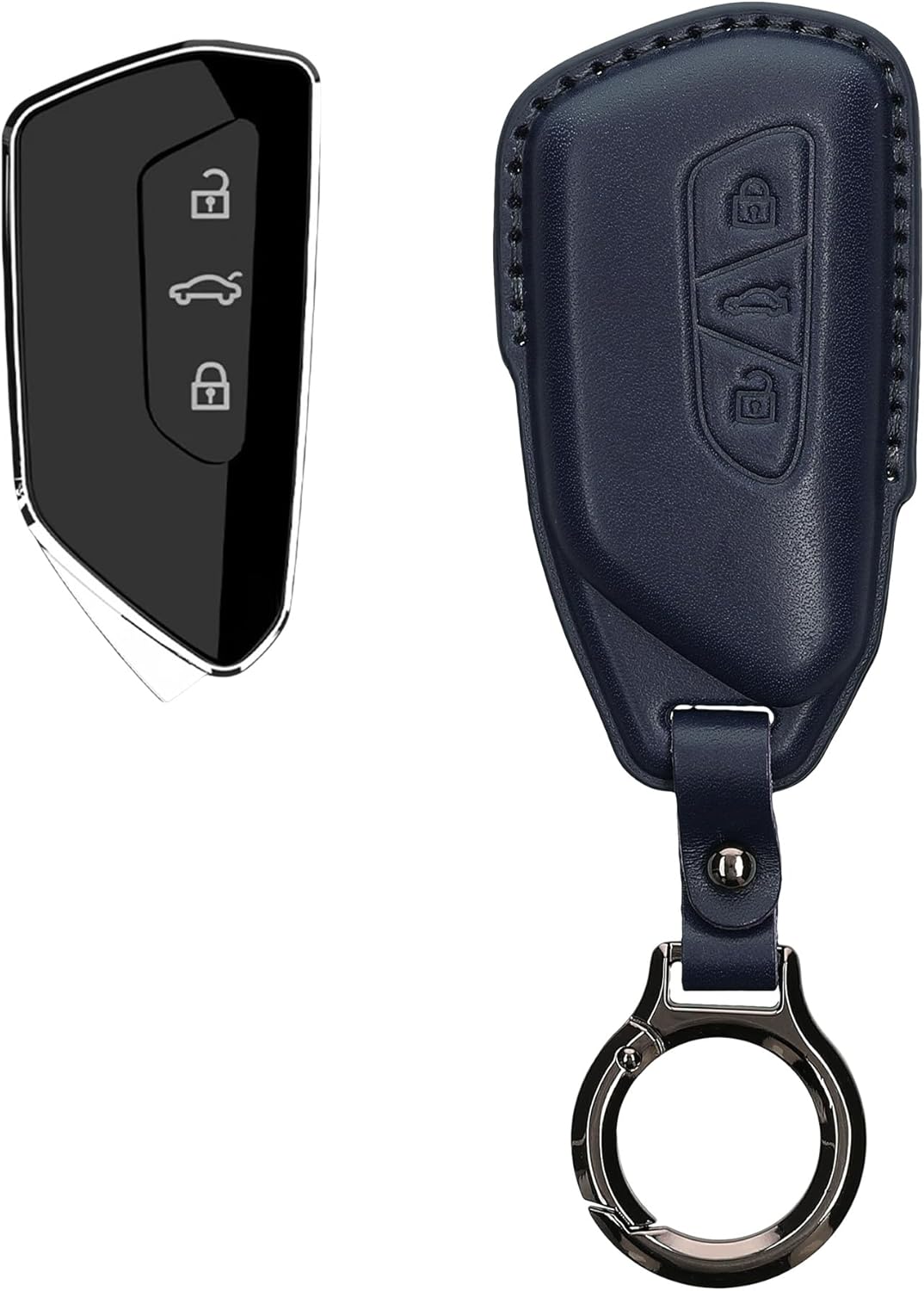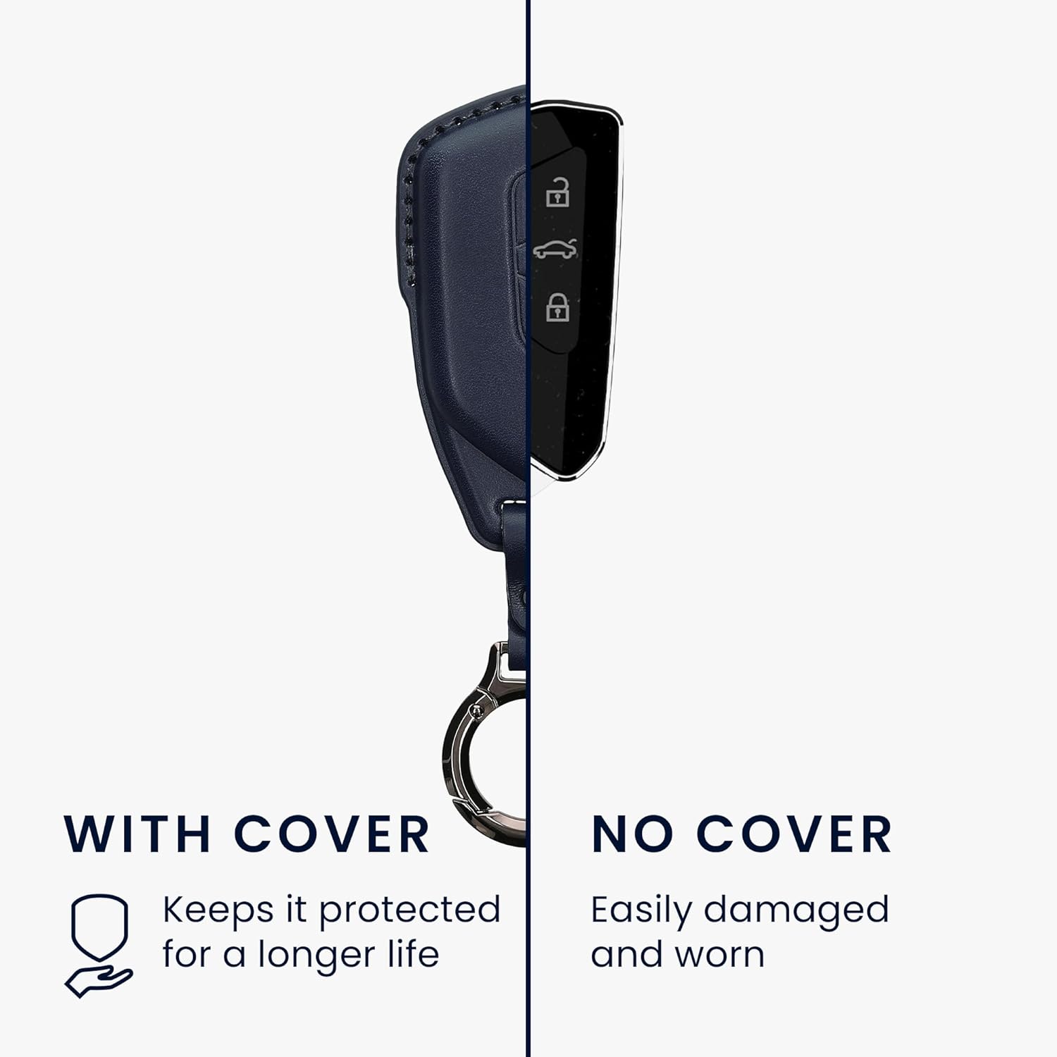 kwmobile Premium е предпазна обвивка за автомобилен ключ, съвместима с VW Golf 8, 3-button калъф завтомобилен ключ - тмносин
