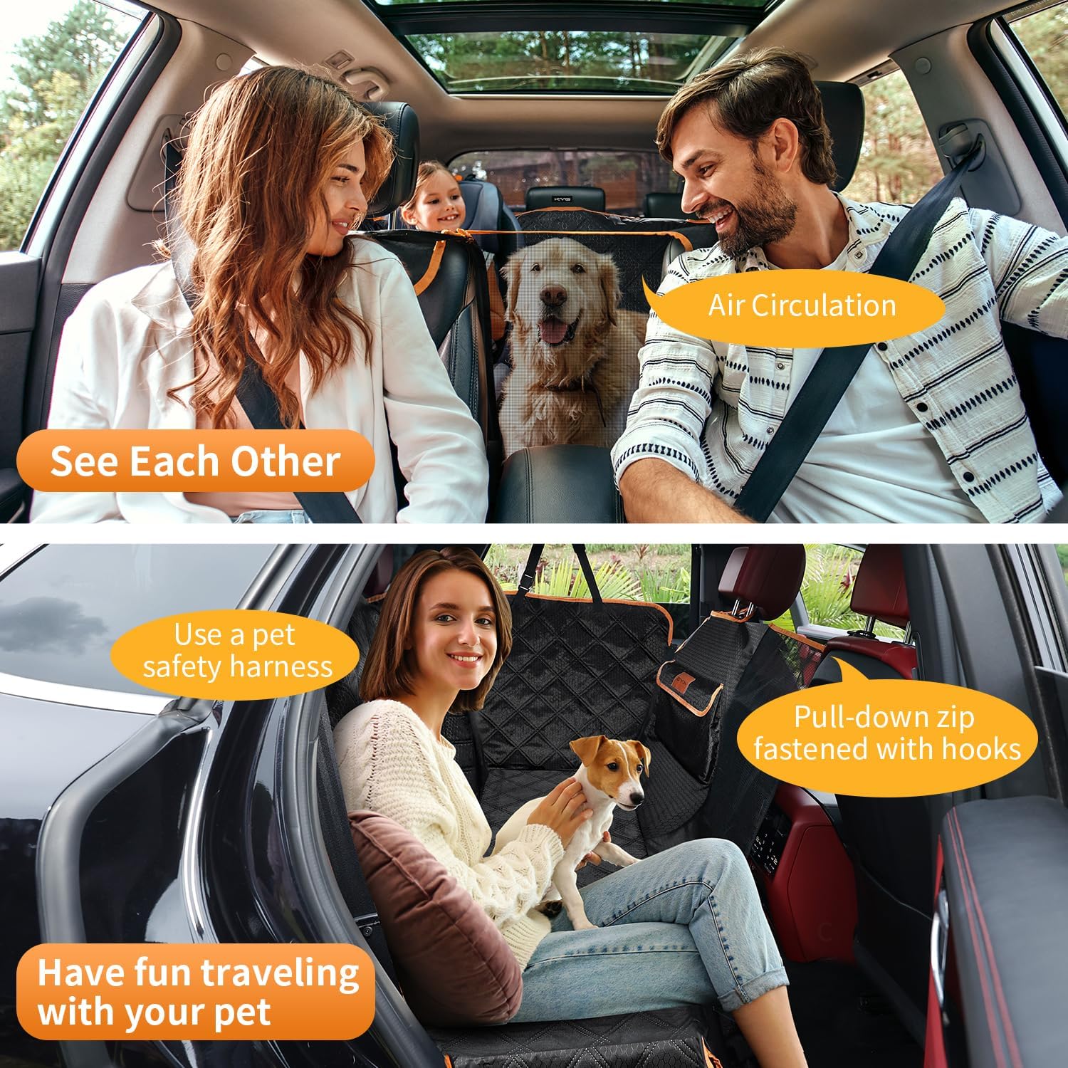 • Идеален дизайн с цип: Можете да виждате кучето си по всяко време през мрежестия прозорец; видимият прозорец ще намали страховете на кучето. Вентилираната и дишаща мрежеста материя за одеяло за кола кара вашия домашен любимец да се чувства комфортно. Предното одеяло може едновременно да предпази облегалките на предните седалки, да предпази кучето ви и да предотврати скачането му напред. Можете също така да обезопасите кучето си с предпазен колан и да седнете до него.