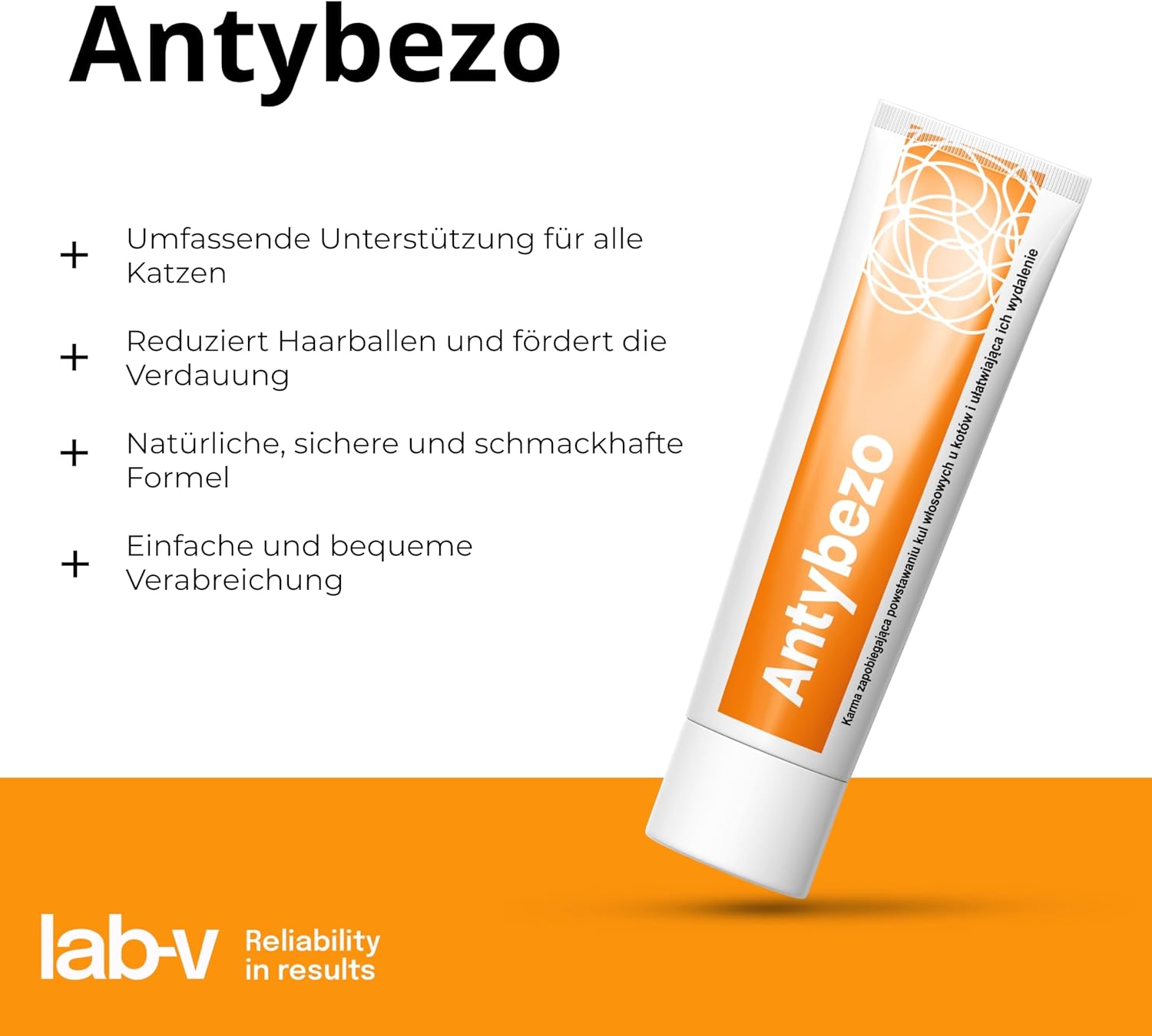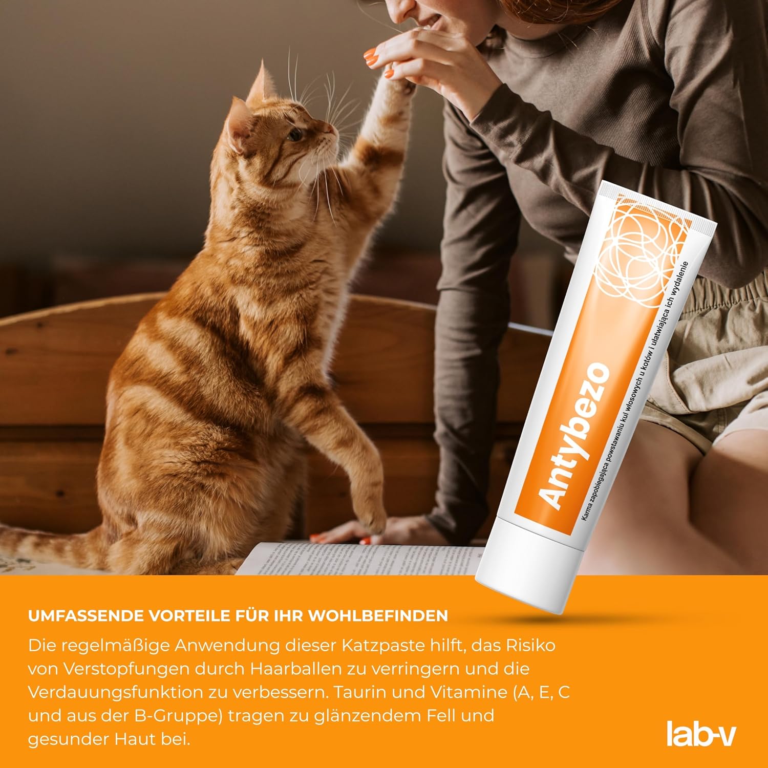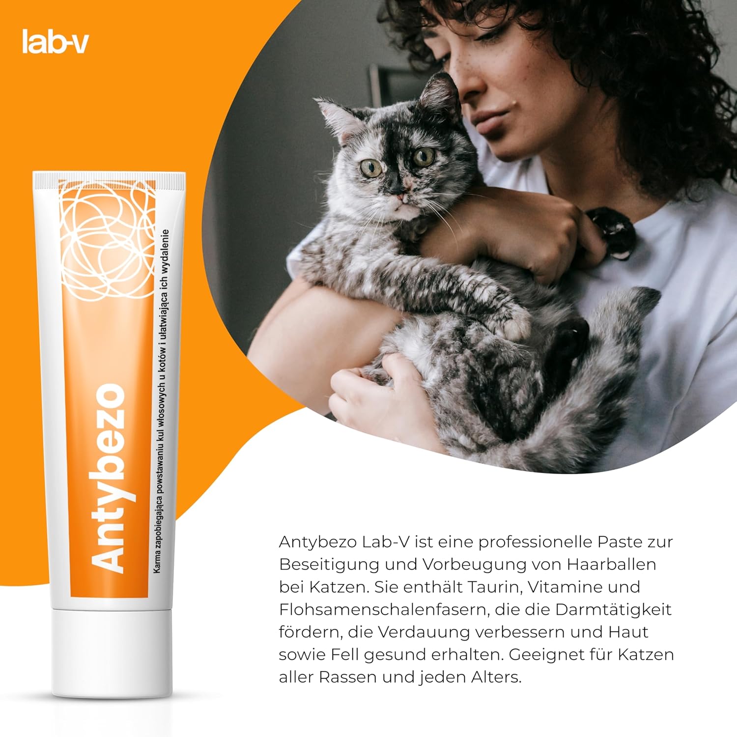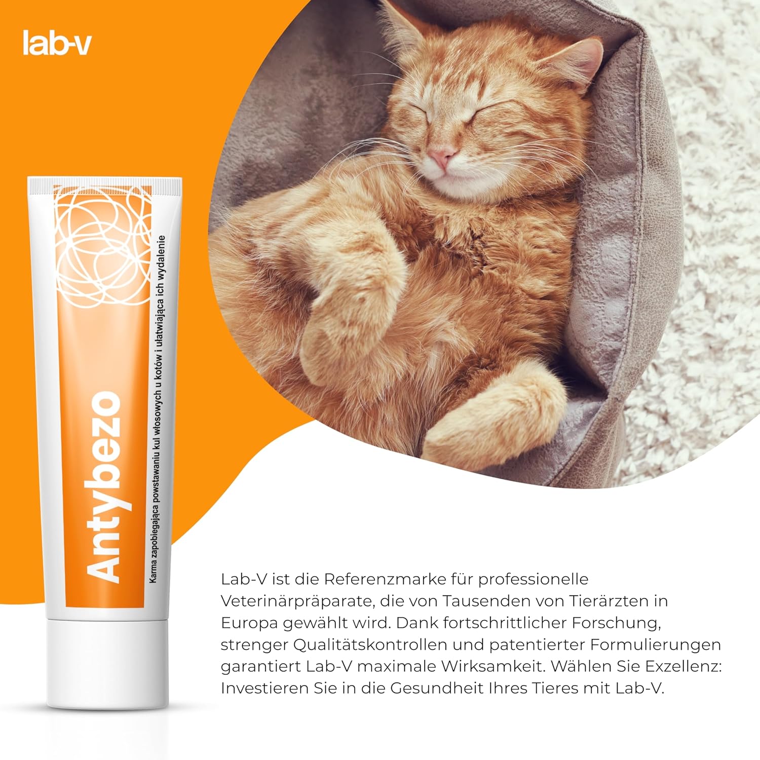 Lab-V Antybezo е висококачествена малцова паста за котки, специално формулирана, за да помогне за разтварянето на космени топки и да насърчи здравословното храносмилане. С малц и растителни масла, тя действа като надеждна паста против космени топки, помагайки за естественото елиминиране на погълнатата козина. Редовната употреба е особено полезна по време на сезона на линеене и за котки с дълга козина, за да се намали рискът от запек. Тази малцова паста за котки се отличава с естествената си формула без излишни добавки, а кремообразната ѝ консистенция я прави лесна за приложение – директно от тубата или смесена с ежедневната храна на вашата котка. Lab-V Antybezo е подходяща за възрастни котки и със 100 г на туба предлага удобно решение за ежедневна употреба. Доверете се на Lab-V, когато търсите безопасна, натурална и ефективна малцова паста за космени топки на вашата котка.