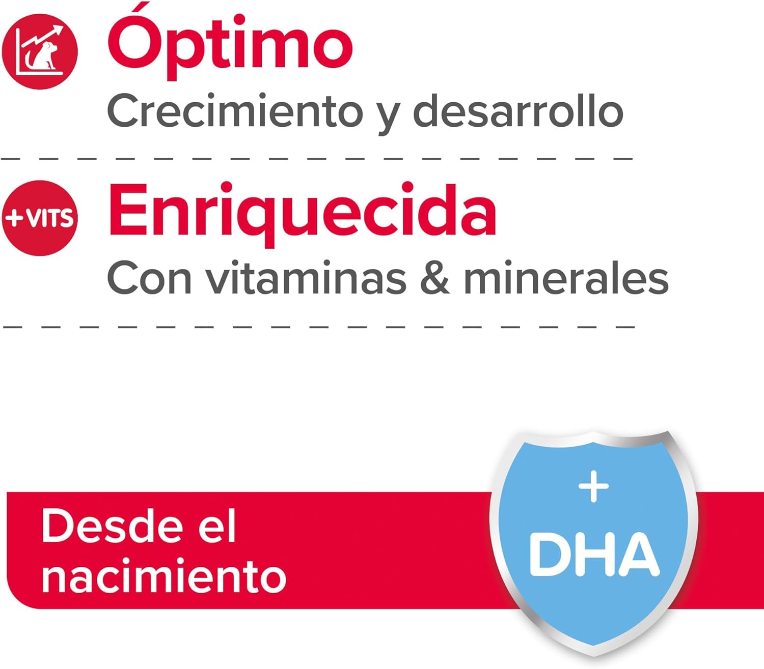 • Подобрена формула, обогатена с DHA (докозахексаенова киселина), която се съдържа естествено в кърмата.