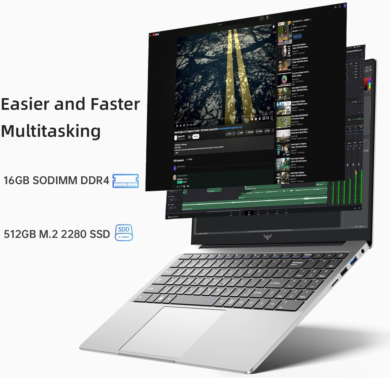 • 【16GB RAM и 512GB ROM】Преносимият компютър е снабден с 16GB DDR4 памет за повече място и е с 50% по-бърз от машините, оборудвани с DDR3, което му позволява ефективно да обработва множество програми и задачи едновременно. Вграденият 512GB M.2 SSD осигурява достатъчно място за съхранение, за да осигури безпроблемна работа на системата и да съхранява повече лични файлове. Нуждаете се от още повече място? Малкият лаптоп може да бъде разширен със 128GB TF карта, което ви позволява да съхранявате още повече цифрови съкровища.