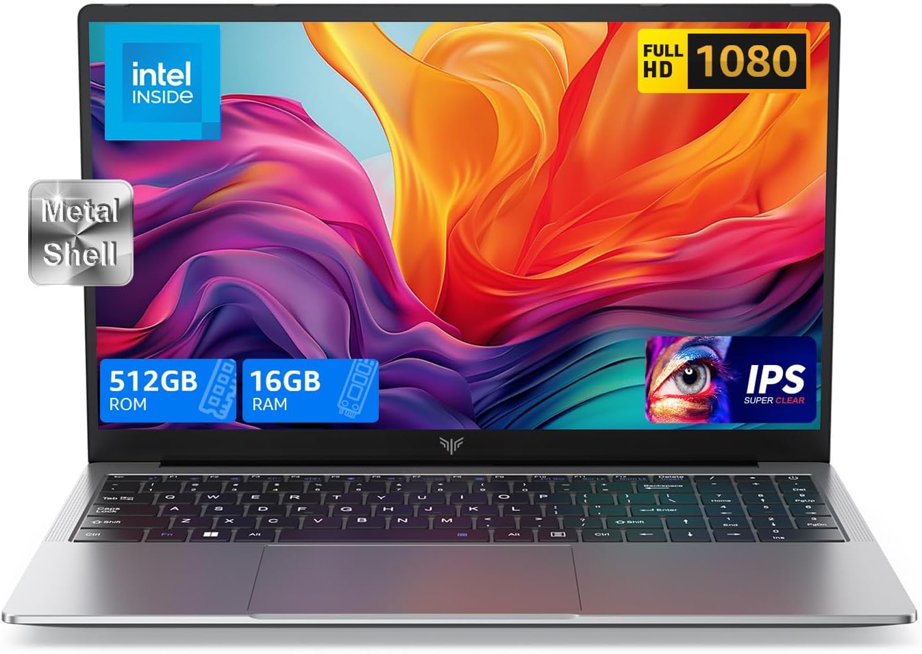 Лаптоп ACEMAGIC, метален корпус, 15.6-инчов FHD, 16GB DDR4 512GB SSD, четириядрен N97 (до 3.60GHz) по-добър от N5095, лек 15-инчов лаптоп с WiFi, BT5.0, USB 3.2×2, Type-C, HDMI (сив)