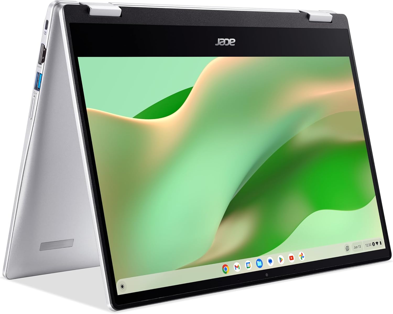 Лаптоп Acer Chromebook Spin 314 (CP314-1HN-C02L), 14" FHD сензорен дисплей, Intel Celeron N4500, 4GB RAM, 64GB eMMC, Intel UHD Graphics, Google ChromeOS, QWERTZ клавиатура, сребрист