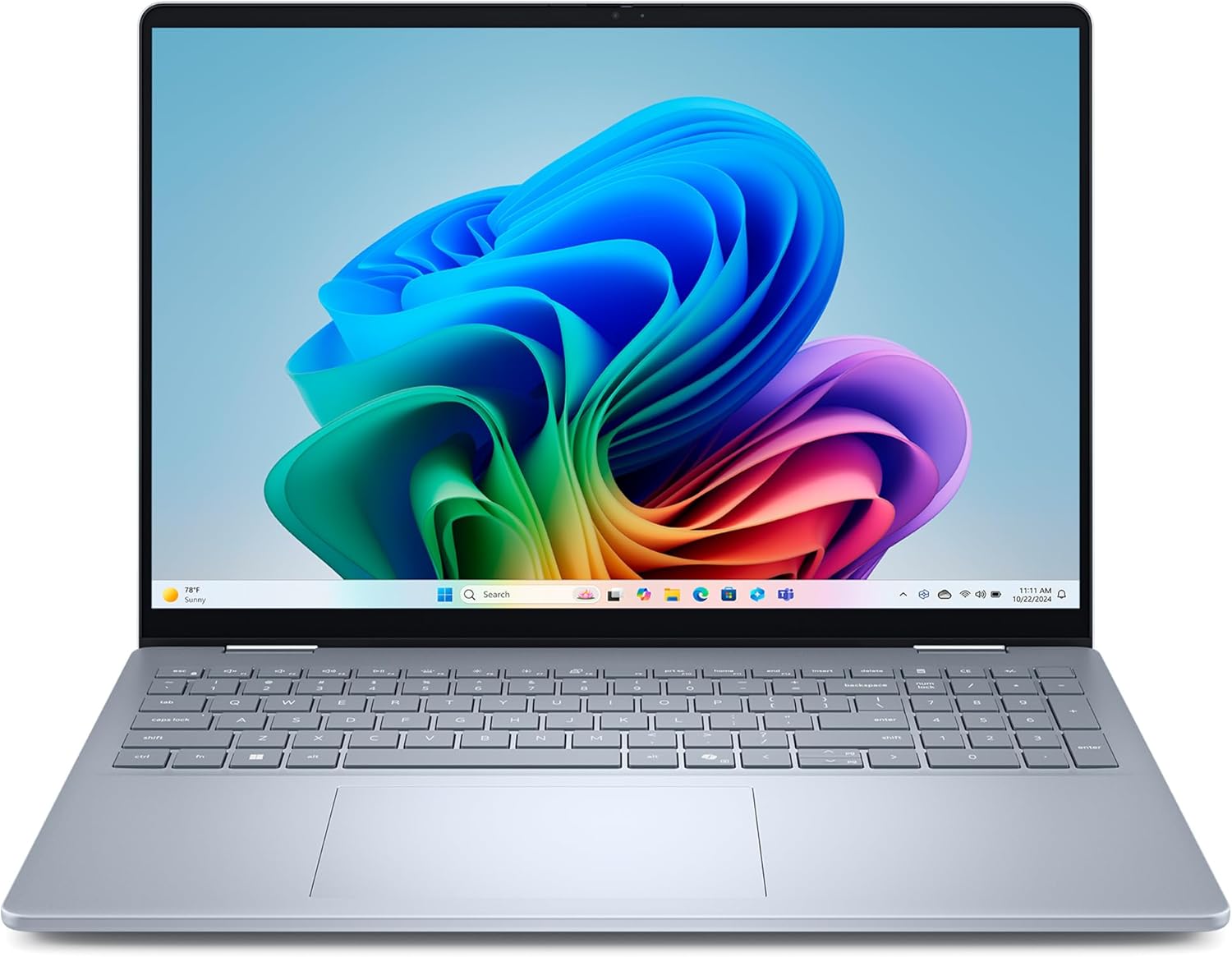 Лаптоп Dell 16 Plus 2-в-1 Copilot+ PC db06250 - 16" FHD+ сензорен дисплей, Intel Core Ultra 7 Series 2, 16GB RAM, 512GB SSD, Intel Arc Graphics, Windows 11 Home, осветена QWERTZ клавиатура - ледено син
