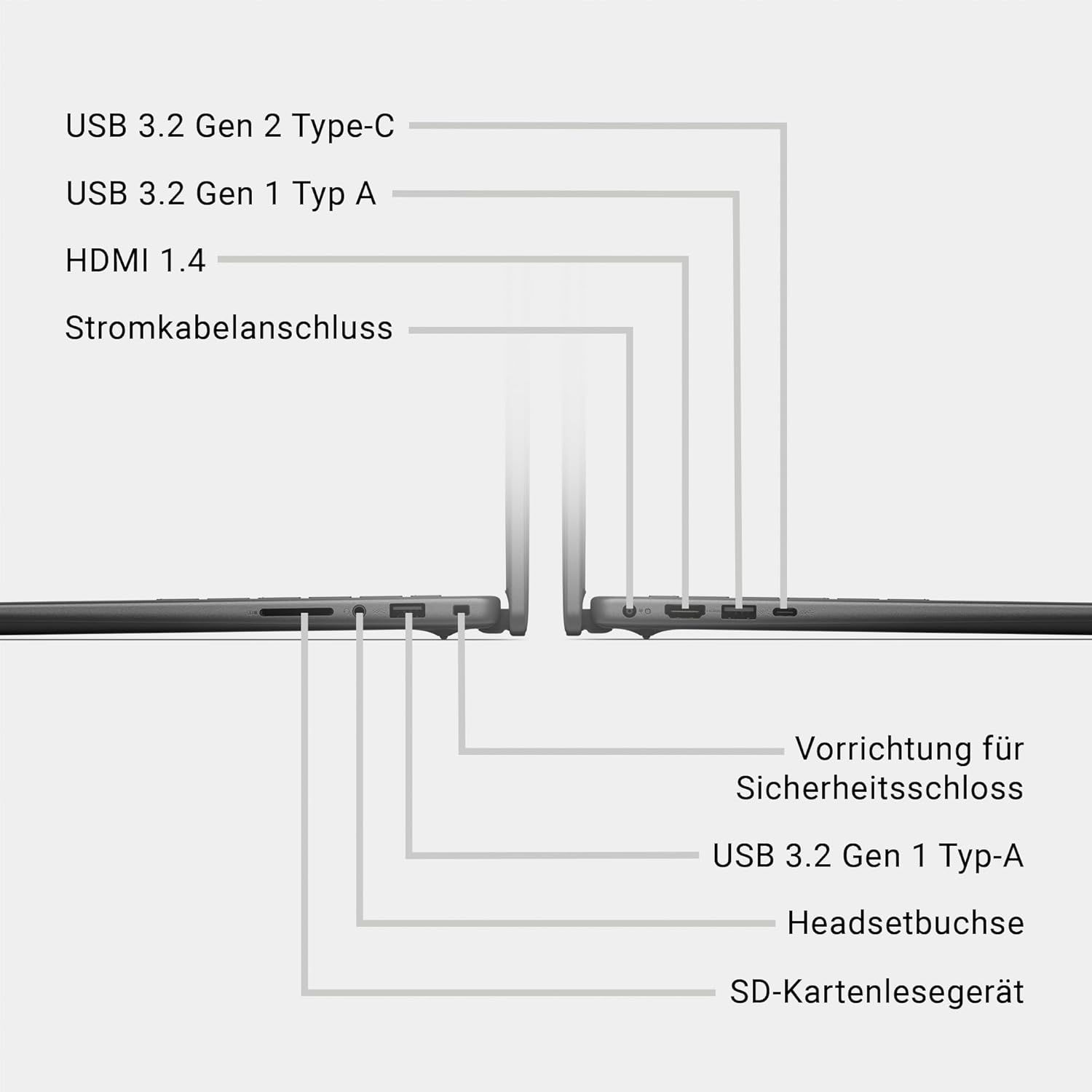 • СЪВРЕМЕННА СВЪРЗАНОСТ ЗА РАБОТА И СВОБОДНО ВРЕМЕ: Оборудван с HDMI, USB-A, USB-C, четец за microSD карти, Bluetooth, Wi-Fi 6 и жак за слушалки – за бърза връзка с устройства, мрежи и дисплеи.