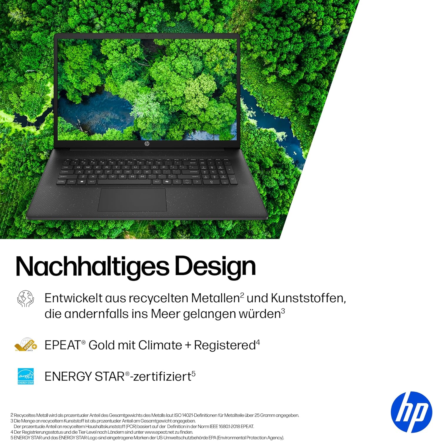 17,3-инчов лаптоп с голяма визия за бъдещето. 17,3-инчовият лаптоп на HP предлага изтънчен дизайн и високата производителност на AMD процесор, бърз Wi-Fi и щедро място за съхранение. Насладете се на по-естествена и удобна позиция за писане с дизайна с повдигащи се панти и уголемения щракващ панел. Конструкцията му включва устойчиви материали като пластмаса, която иначе би се озовала в океана, и рециклирана битова пластмаса.