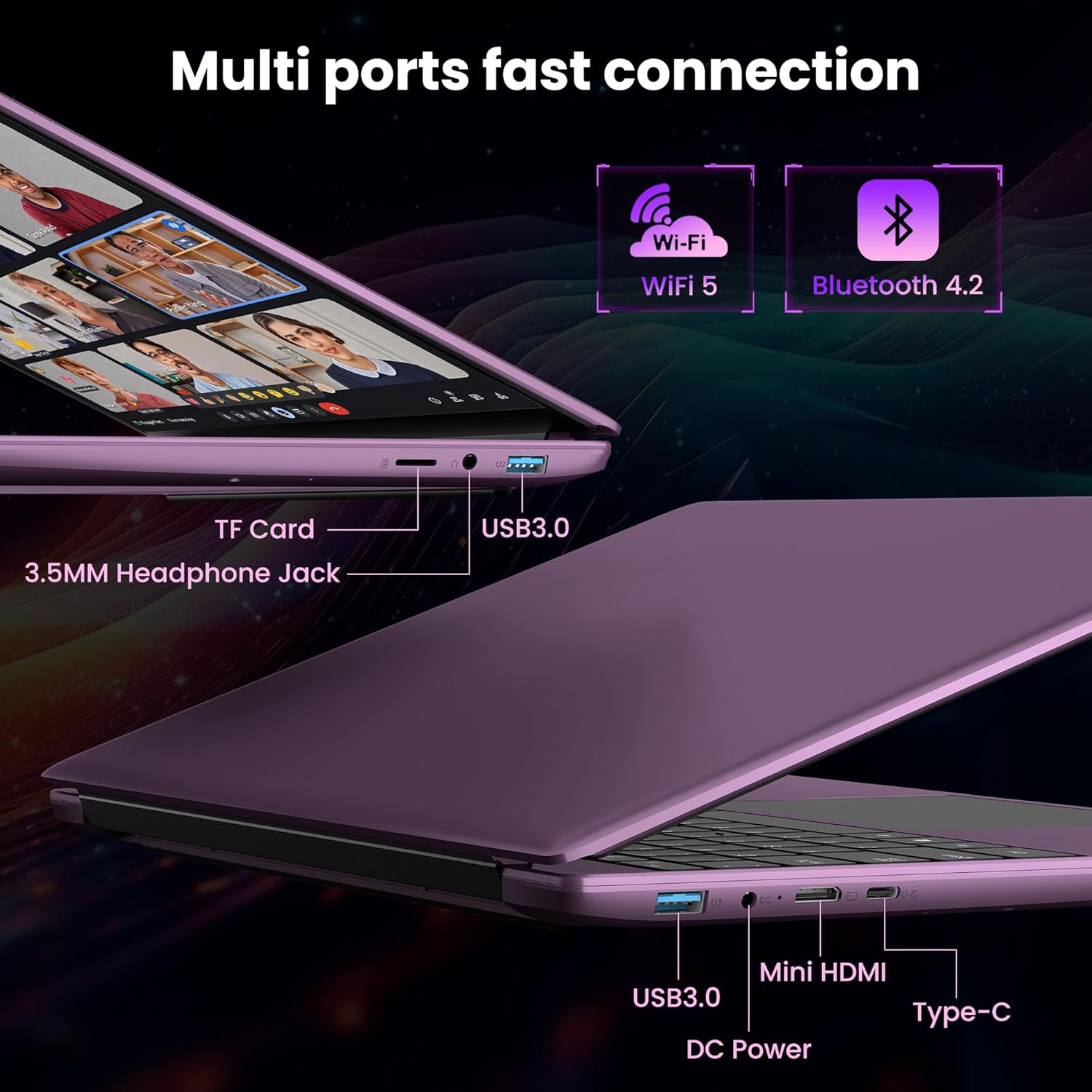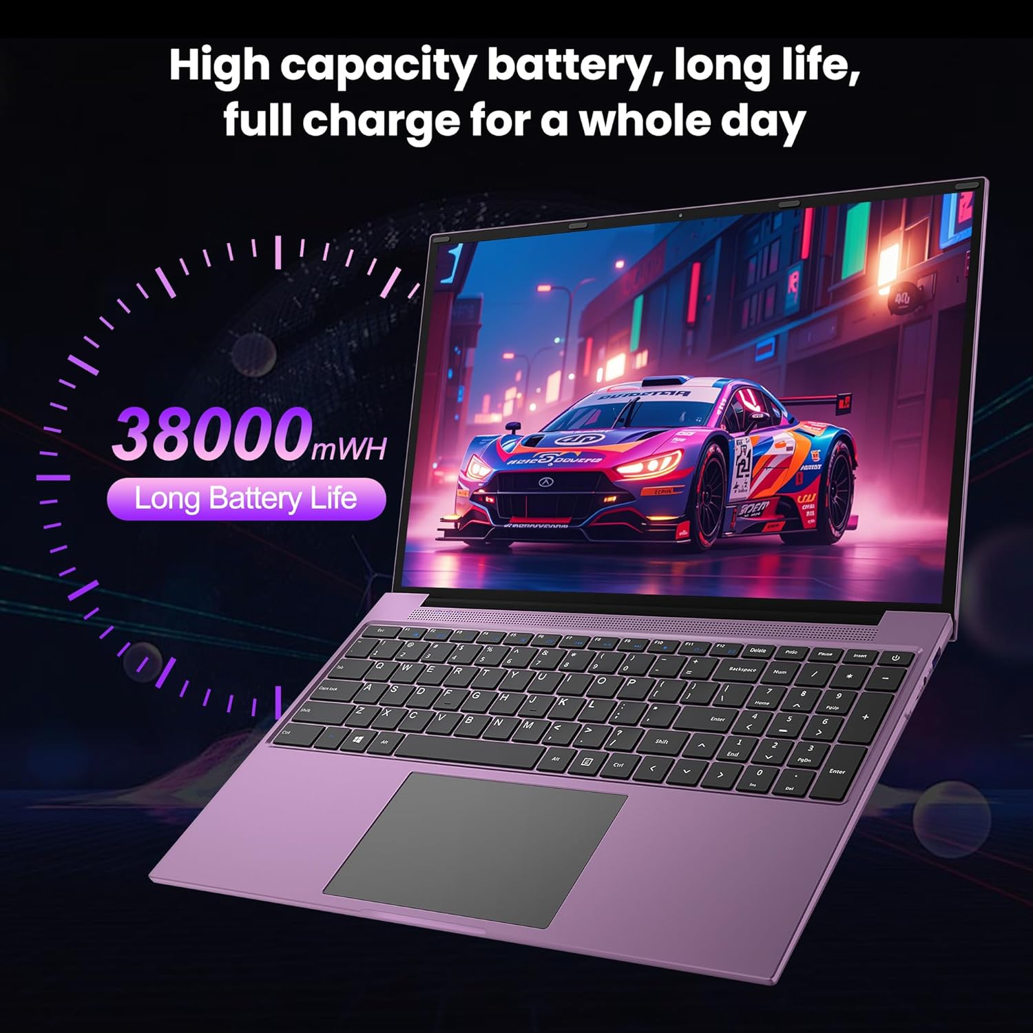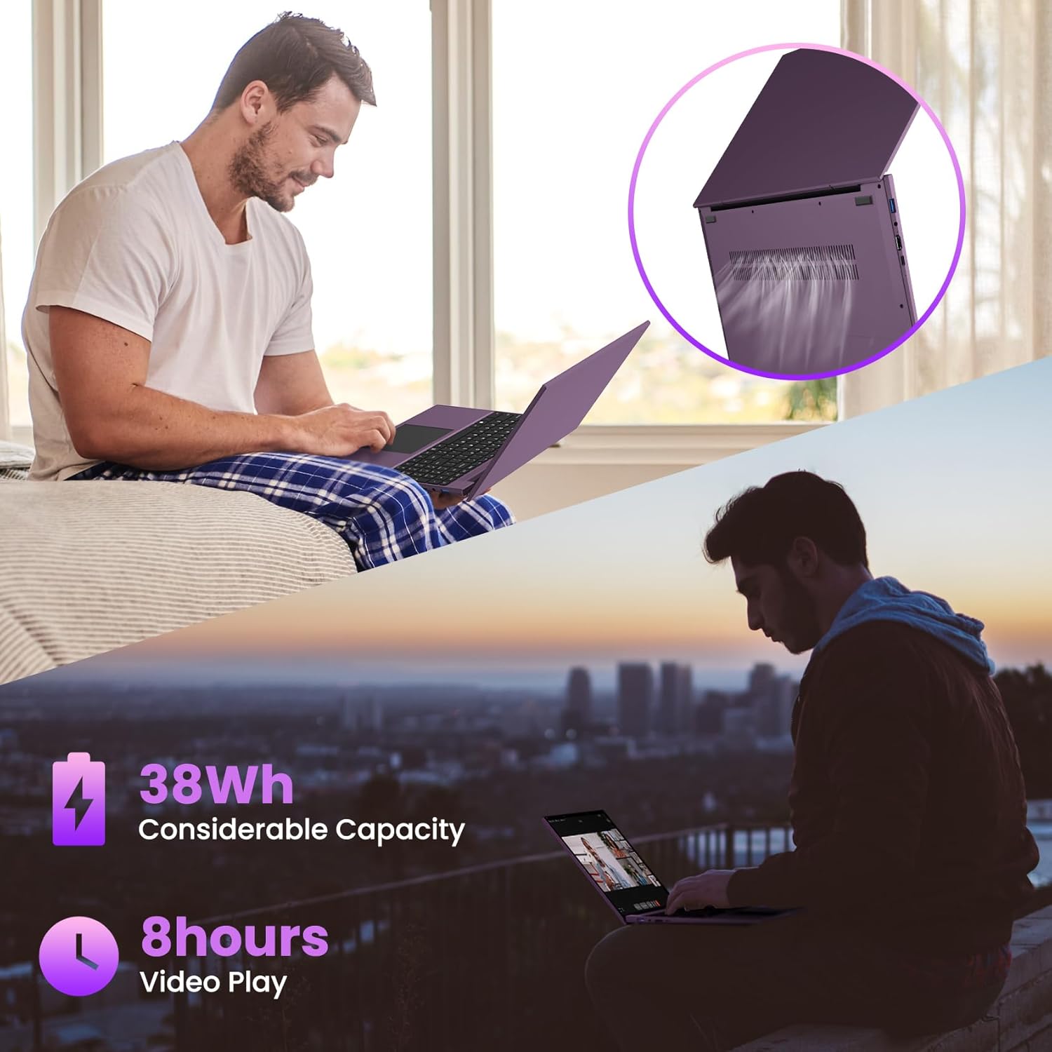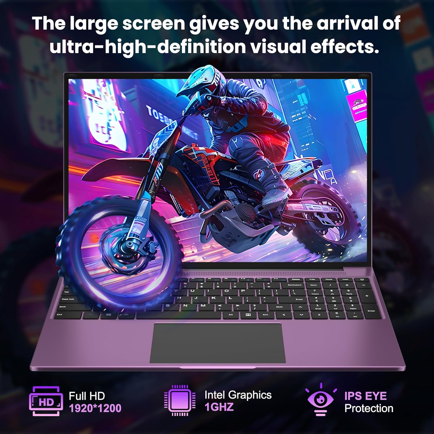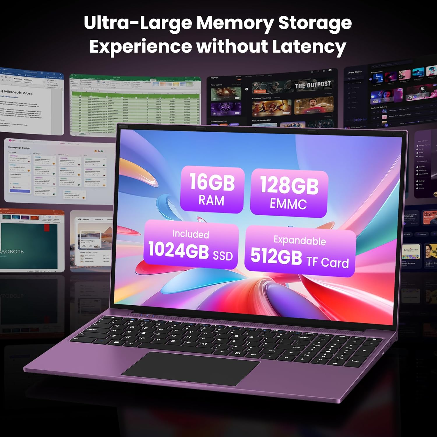 Лаптоп jumper 16 инча IPS 1920 x 1200, Intel N150 (3.6 GHz), 16GB RAM 1TB SSD + 128GB eMMC, 2 стерео високоговорителя, USB 3.0/Mini HDMI/38Wh батерия (лилав)