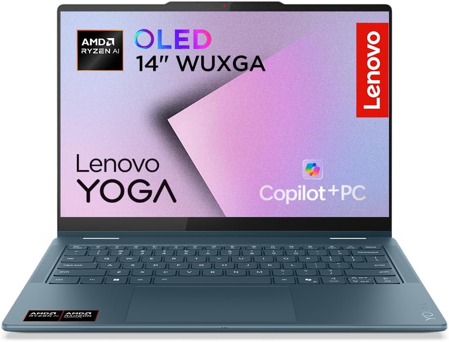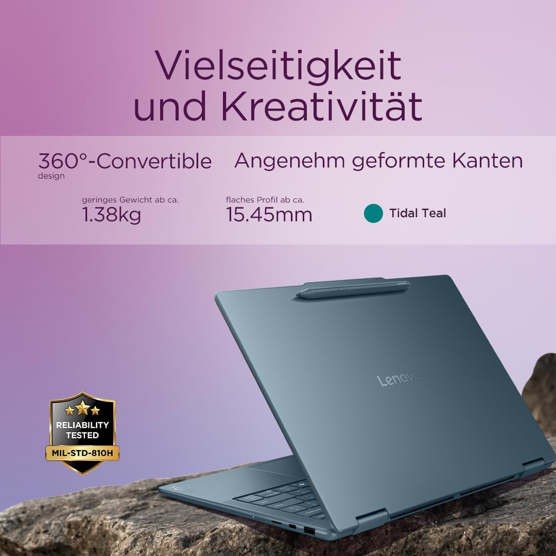 Лаптоп Lenovo Yoga 7 2-в-1 | Copilot+ компютър | 14" WUXGA OLED дисплей | AMD Ryzen AI 5 | AMD Radeon графика | 16GB RAM | 512GB SSD | Win11 | QWERTZ | Tidal Teal | Вкл. писалка | 3 месеца Premium Care