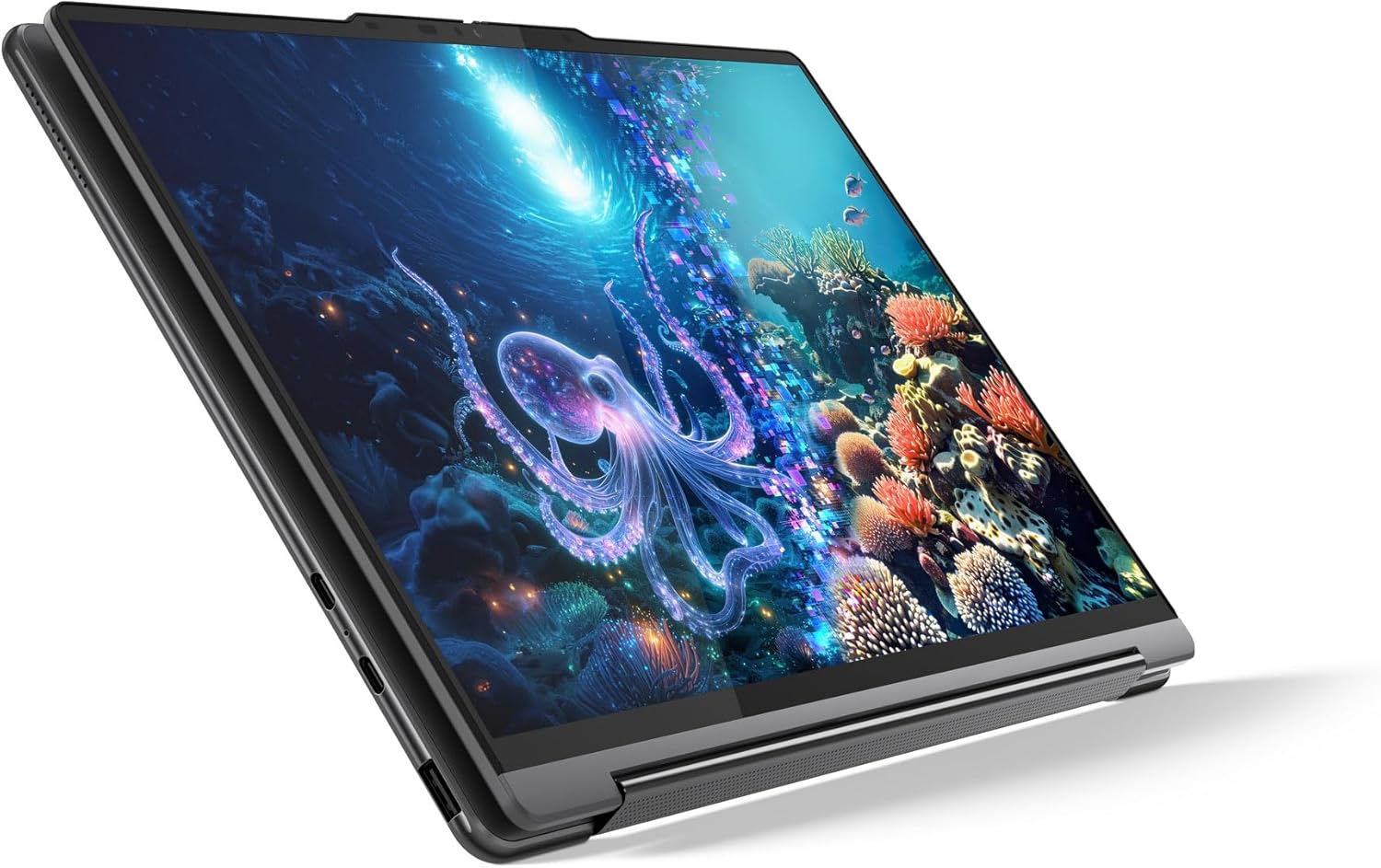• Много възможности: С въртящ се 14-инчов OLED дисплей, Yoga 9 може да се използва в режим на лаптоп, таблет, стойка или палатка – идеален за творческа работа, професионалисти и забавление.