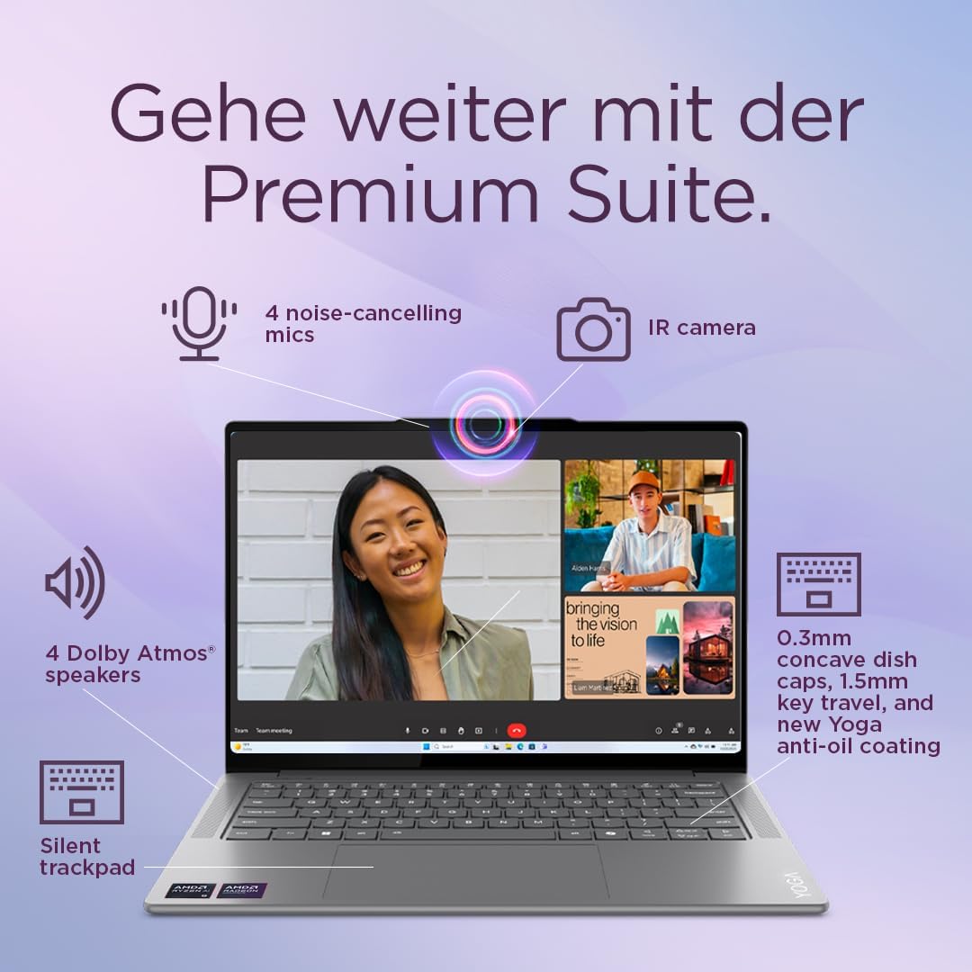 • Много възможности: С въртящ се 14-инчов OLED дисплей, Yoga 7 може да се използва като лаптоп или таблет – идеален за творческа работа и забавление, а Dolby Vision осигурява живи цветове.