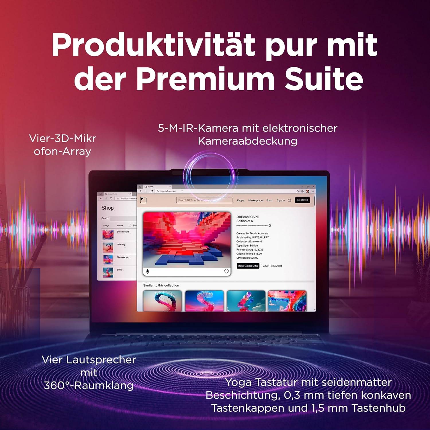 • Lenovo Yoga Slim 7i: Елегантен лаптоп от висок клас, който съчетава най-висока производителност, авангардни технологии и изтънчен дизайн.