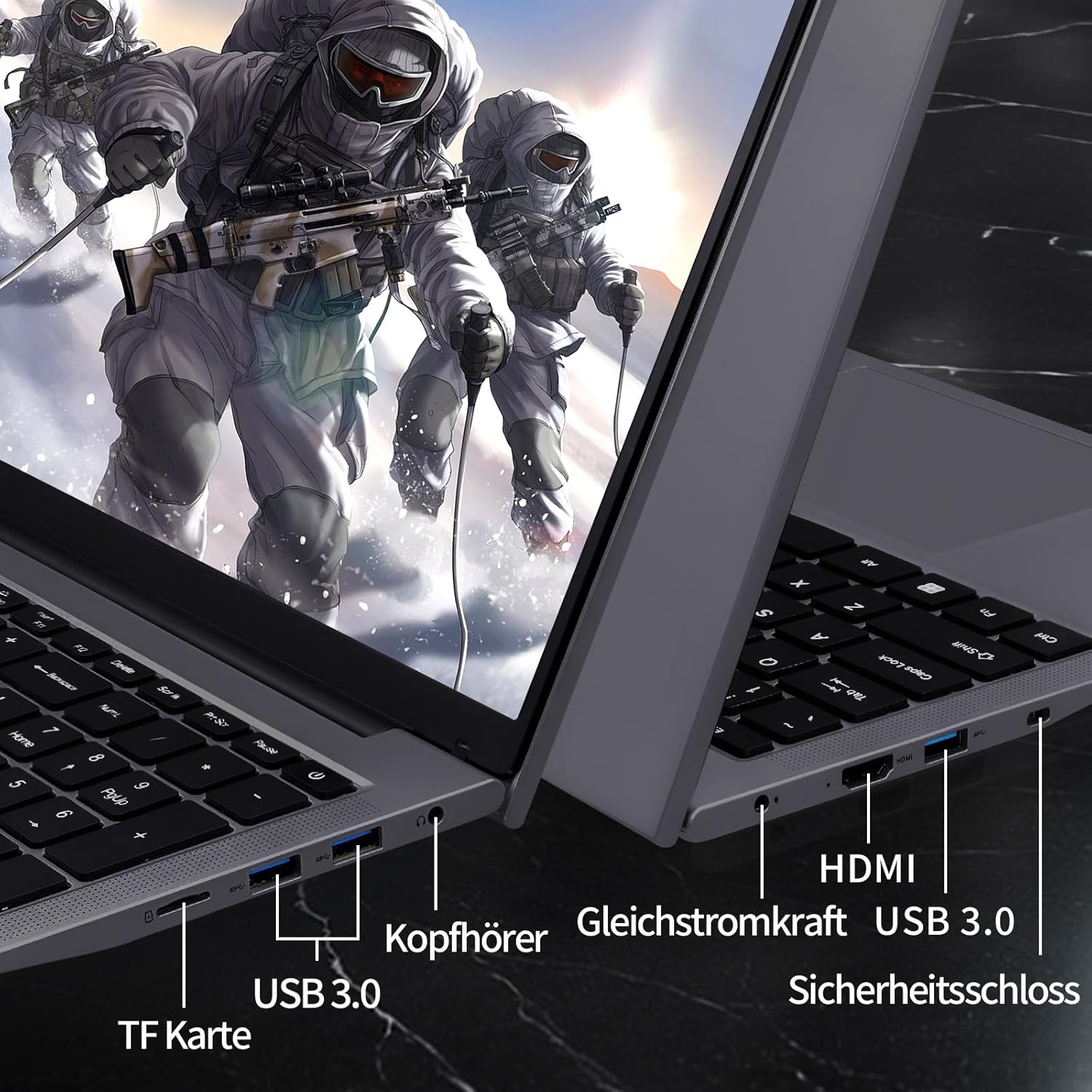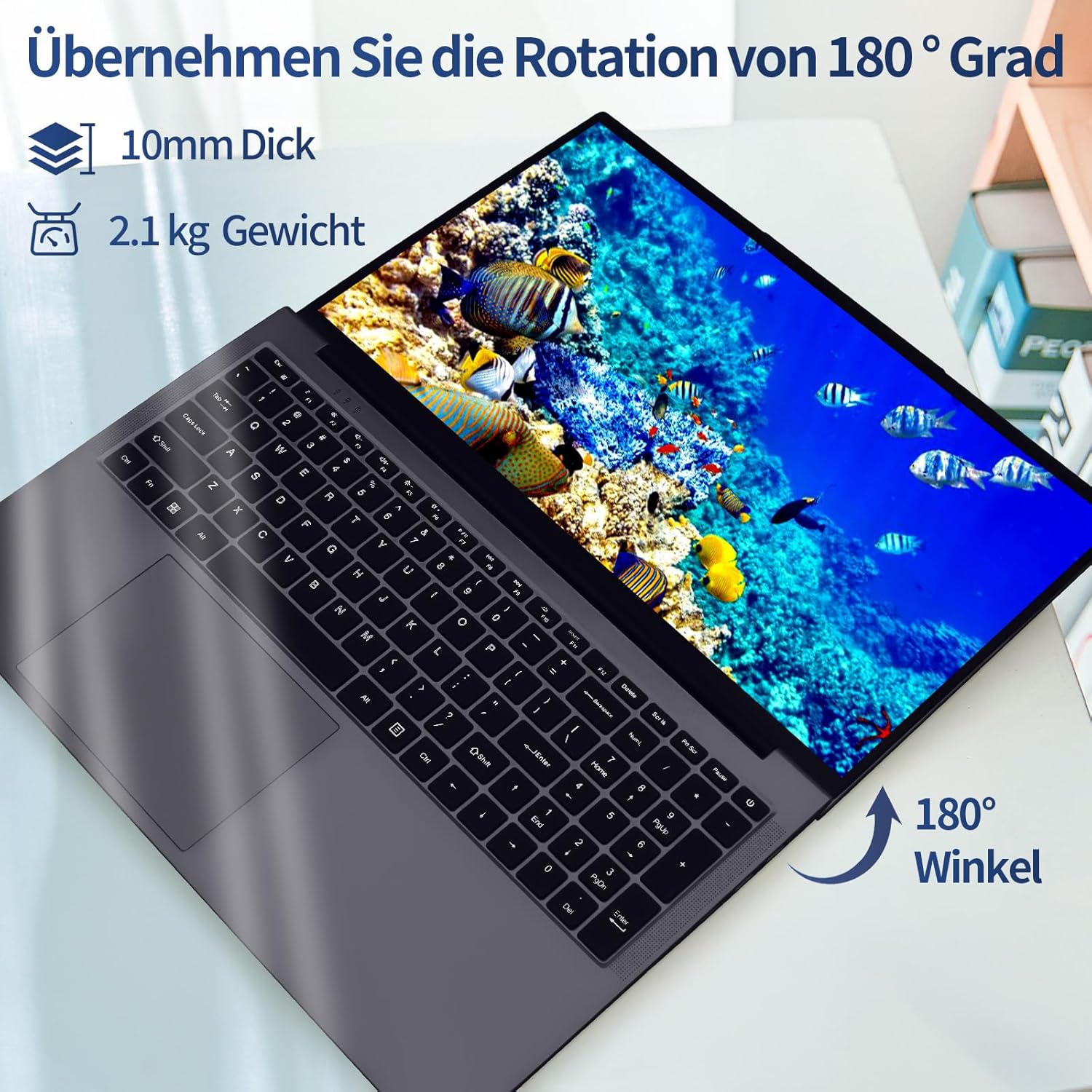 • Обширни функции: Не само че разполага с отключване с пръстов отпечатък и клавиатура с подсветка, но също така разполага с дизайн за отваряне и затваряне на 180 градуса, както и заключване за лаптоп, което защитава компютъра ви от кражба и неоторизиран достъп със специални ключалки и отвори за сигурност. Можете да го използвате спокойно! Вградената батерия от 6000 mAh отговаря на вашите ежедневни нужди.