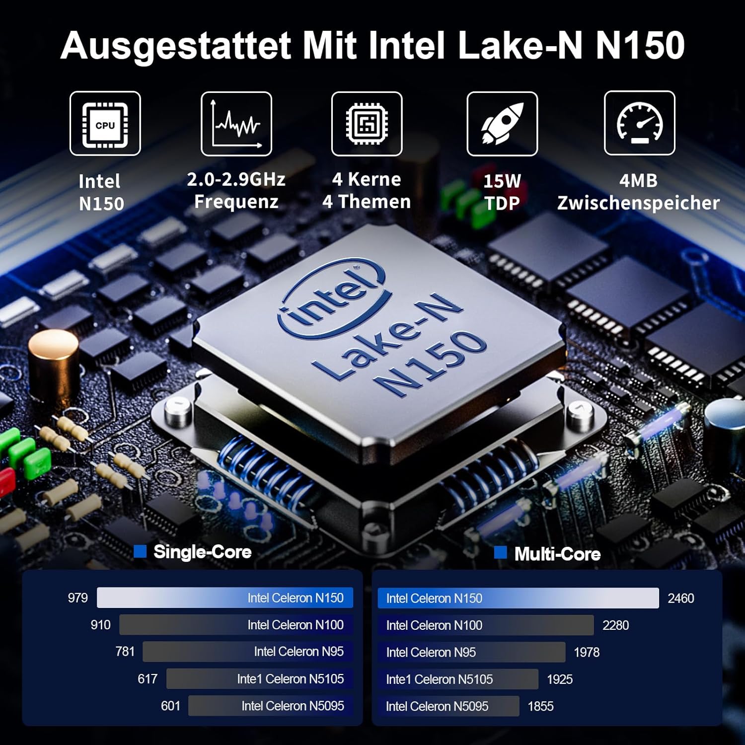 • Насладете се на изключителна производителност: Процесорът Twin Lake-N150 от 12-то поколение с базова честота 2.0 GHz и турбо честота 3.6 GHz, както и ефективна система за охлаждане, осигуряват стабилност и оптимална производителност! 16 GB DDR4 RAM памет се справя с многозадачността с лекота, помагайки ви да овладеете работата и забавленията.