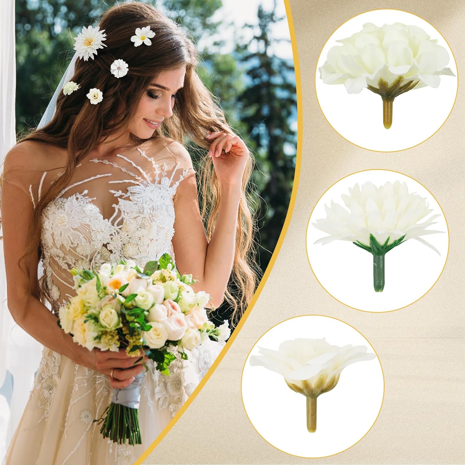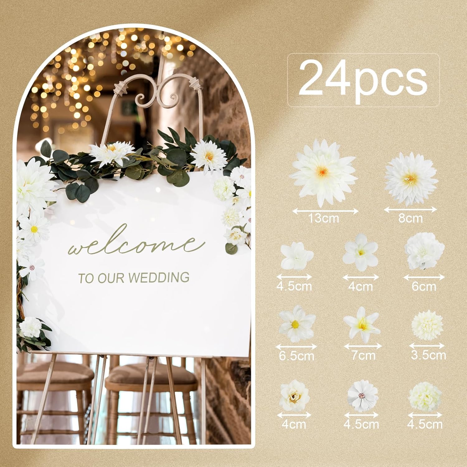 LARDUX 24 броя изкуствени цветя за занаяти, изкуствени цветни главички, малки цветя, изкуствени цветни главички, големи копринени цветни главички, масова смес за „Направи си сам“ занаяти, сватба, парти, домашен ръкоделие, декорация, бели