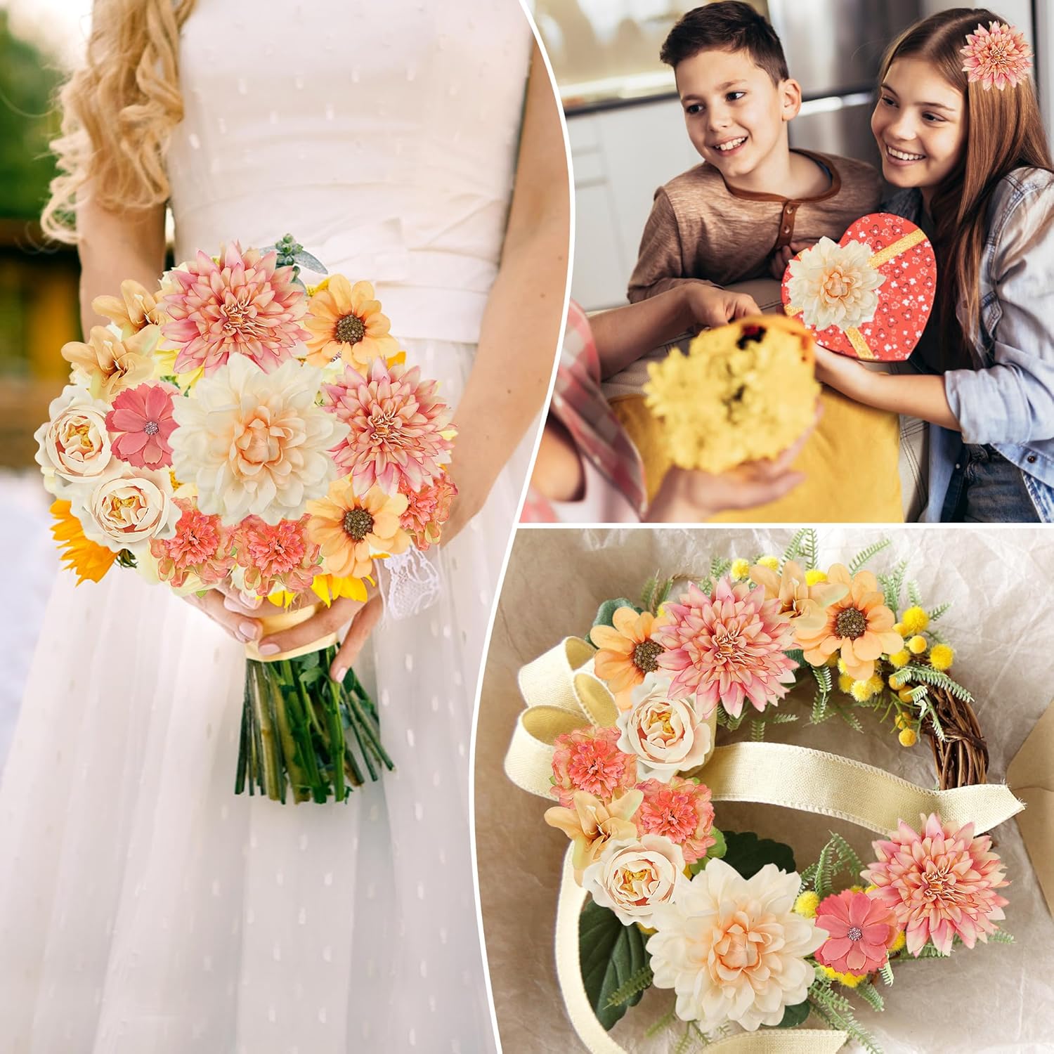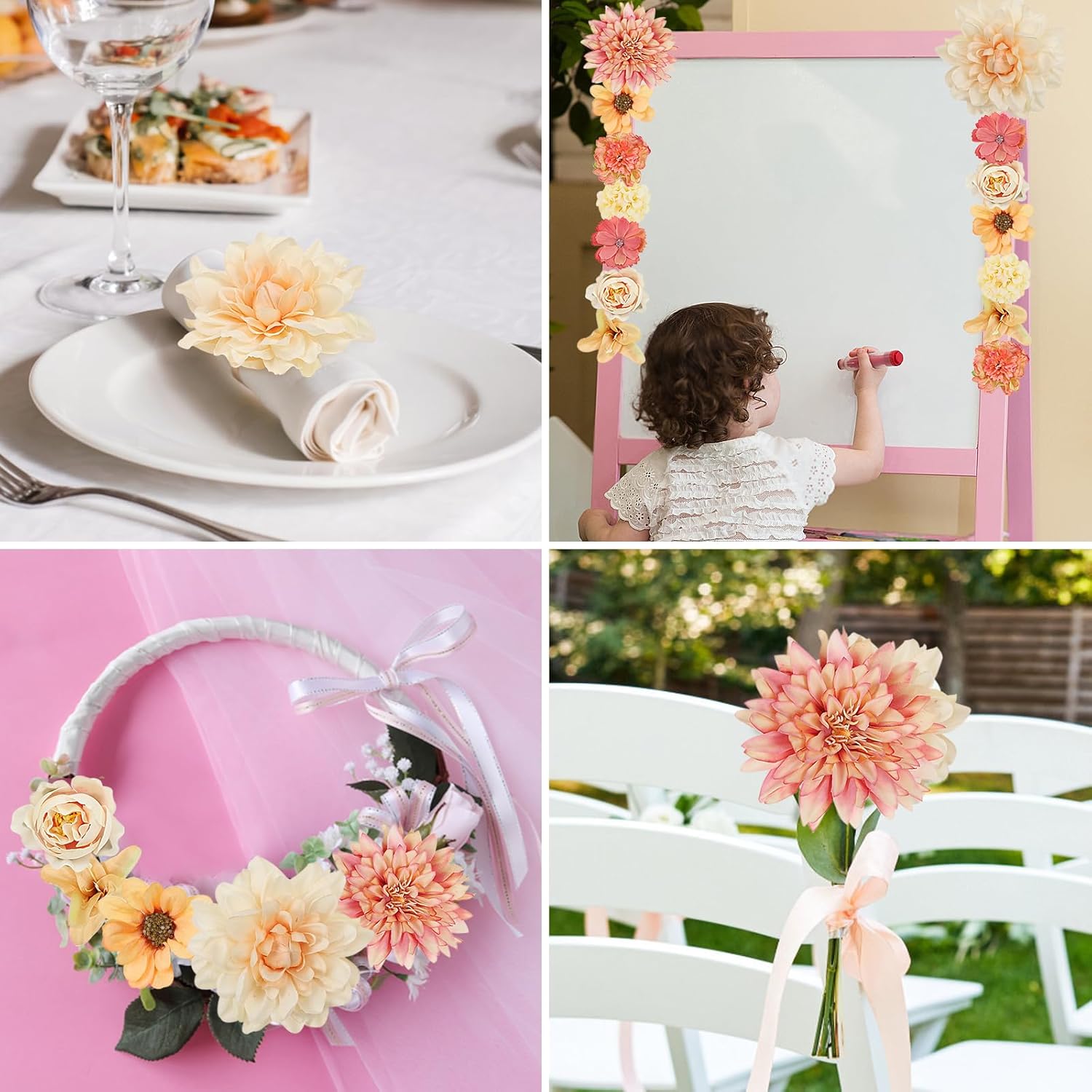 • Изкуствените цветя могат да се използват за букети от гирлянди, булчински венци, декорации за сватбени тържества и декорации за дома.