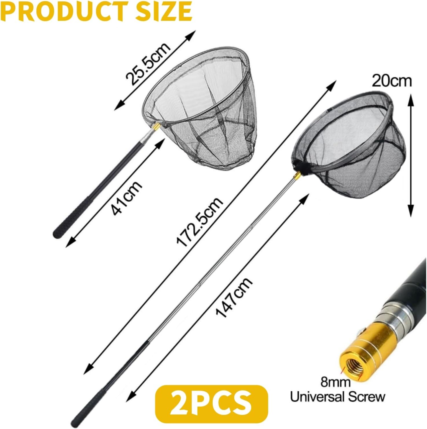 - Дължина в сгънато състояние: 66 см, обща дължина: 172 см, диаметър на металния кръг на мрежата: 22,5 см, максимална товароносимост: 5 кг, подходяща за улов и пускане на риба от близко разстояние и на разстояние.