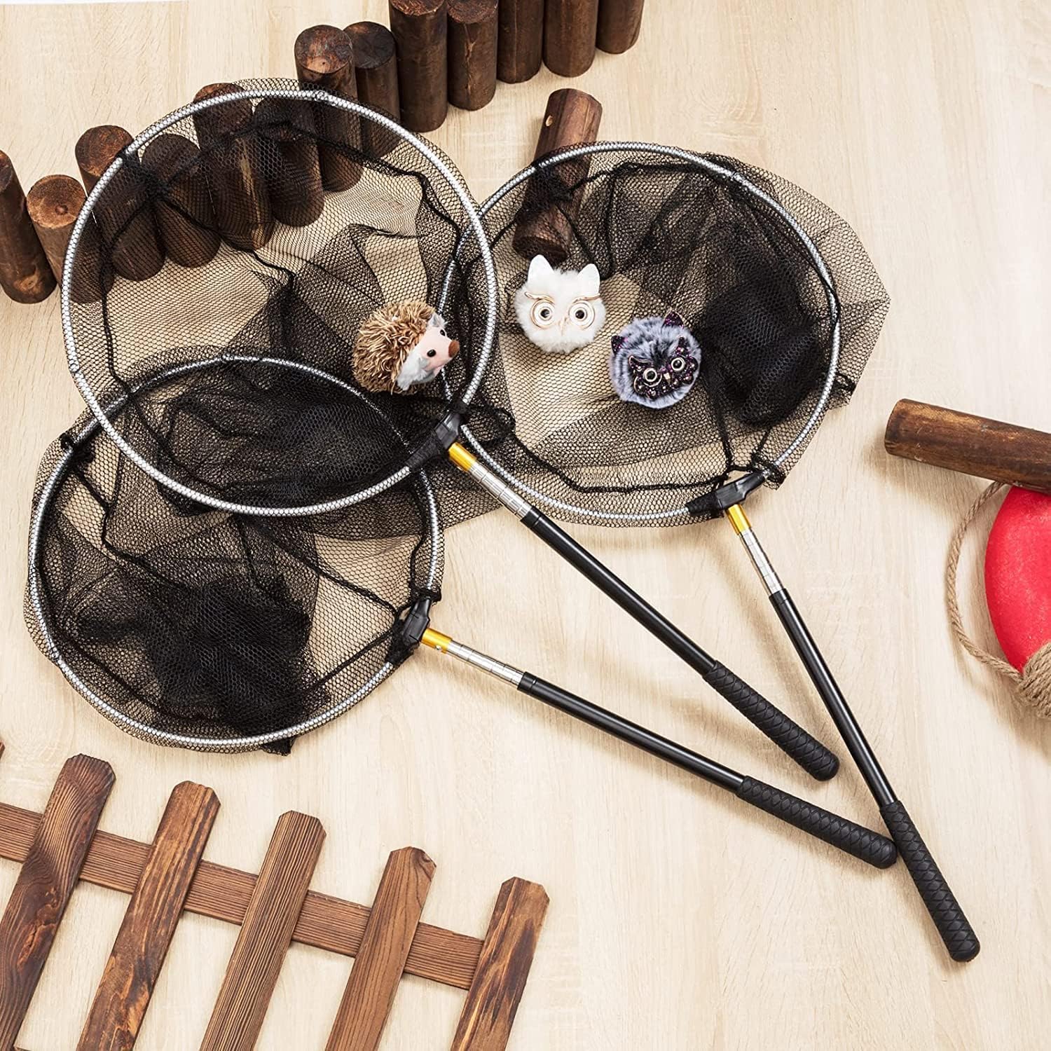- Рибарската мрежа е сгъваема и телескопична, с неплъзгаща се гумена дръжка, алуминиев прът и двете страни на мрежата, закрепени с алуминиева тръба.