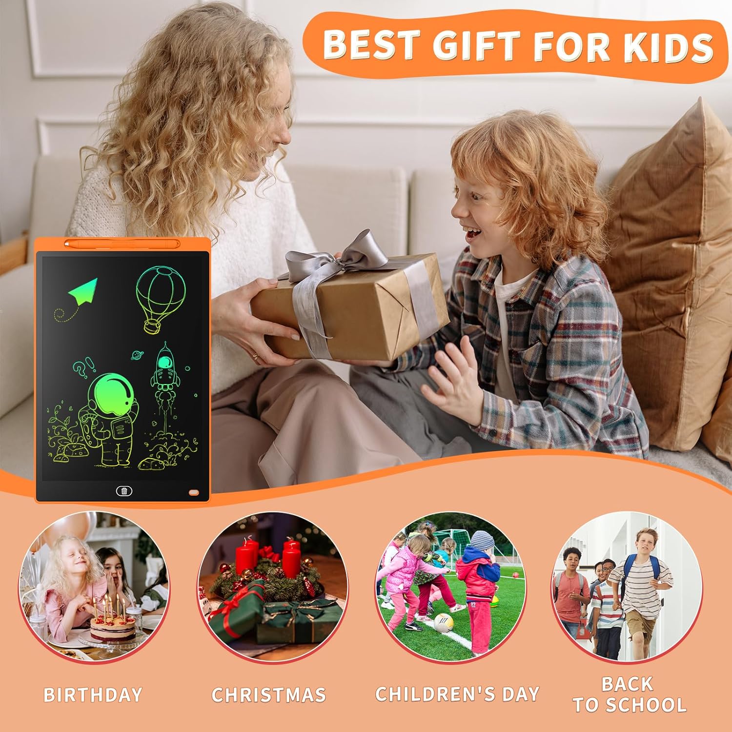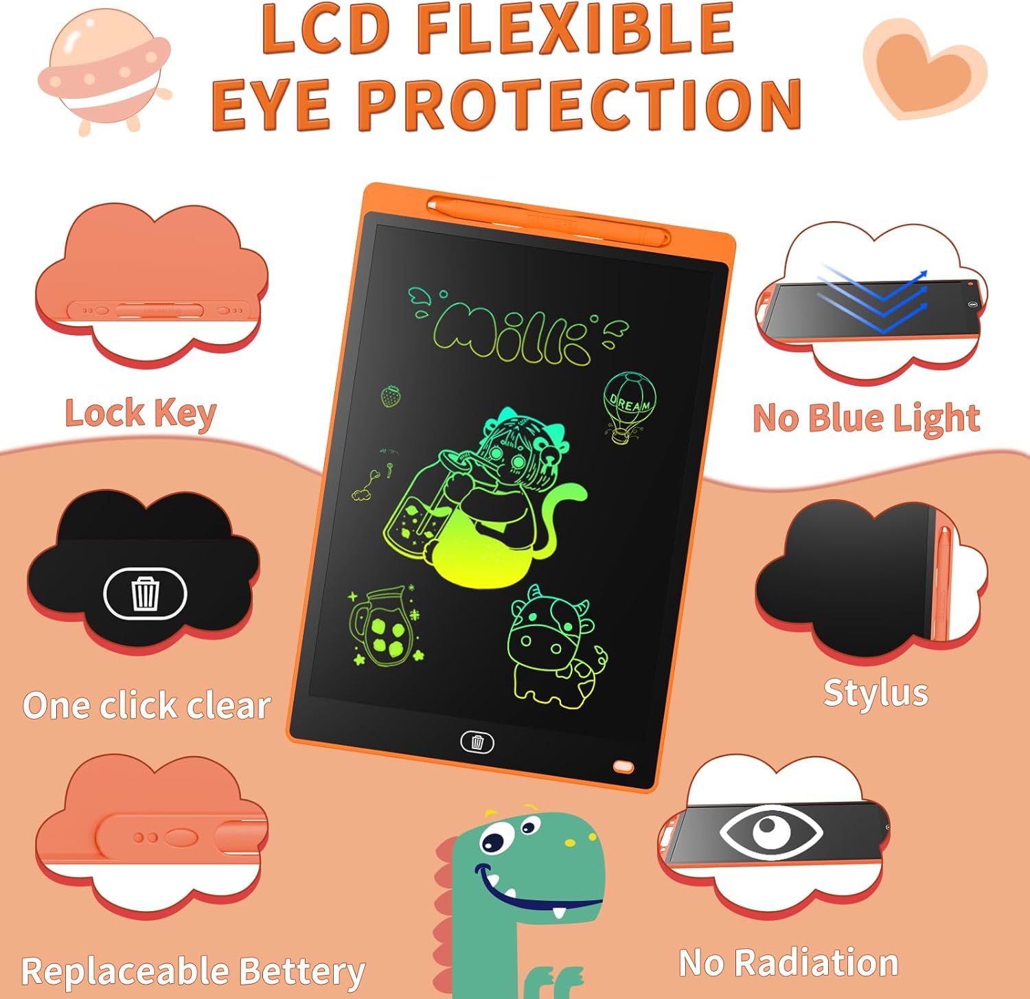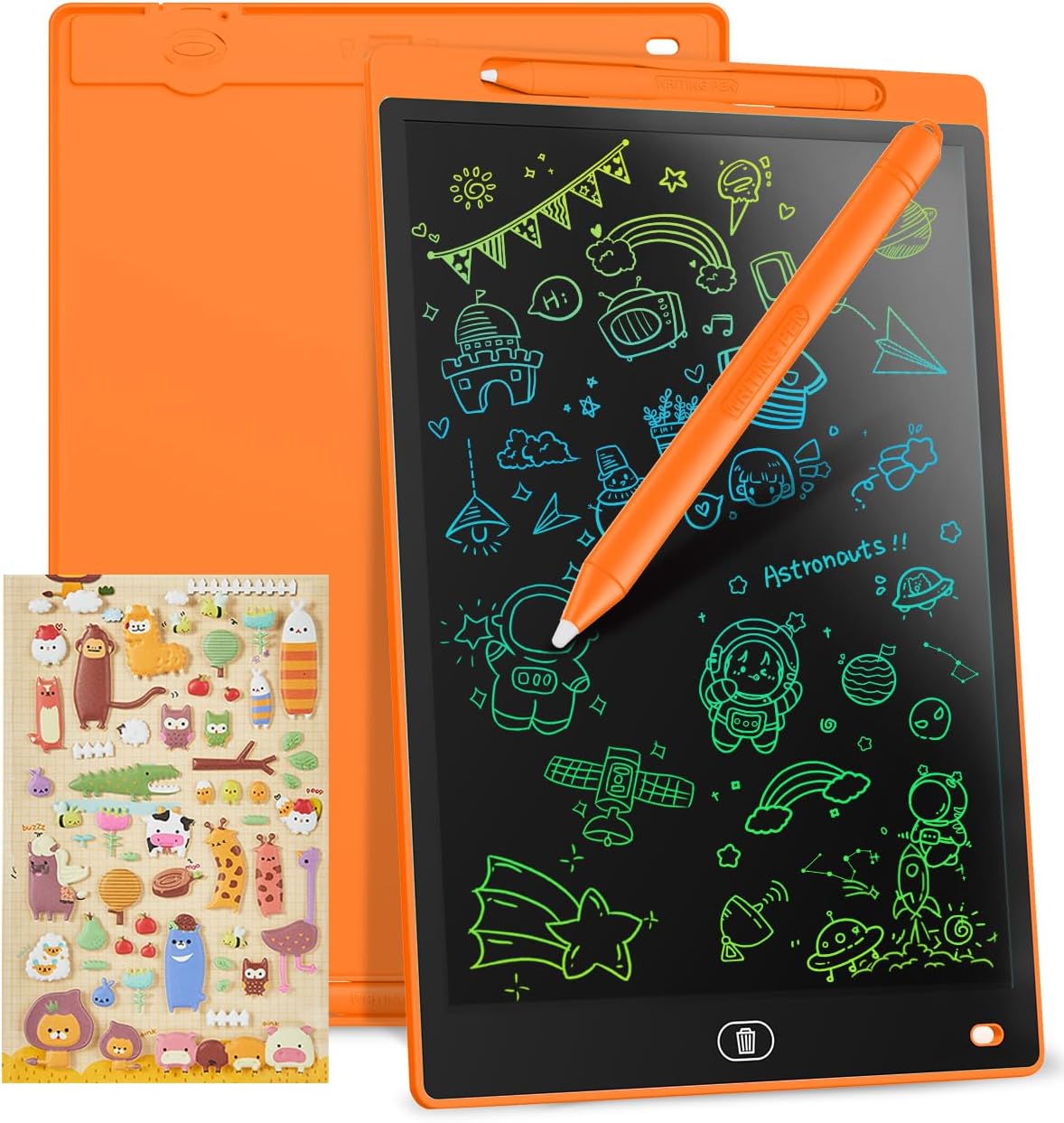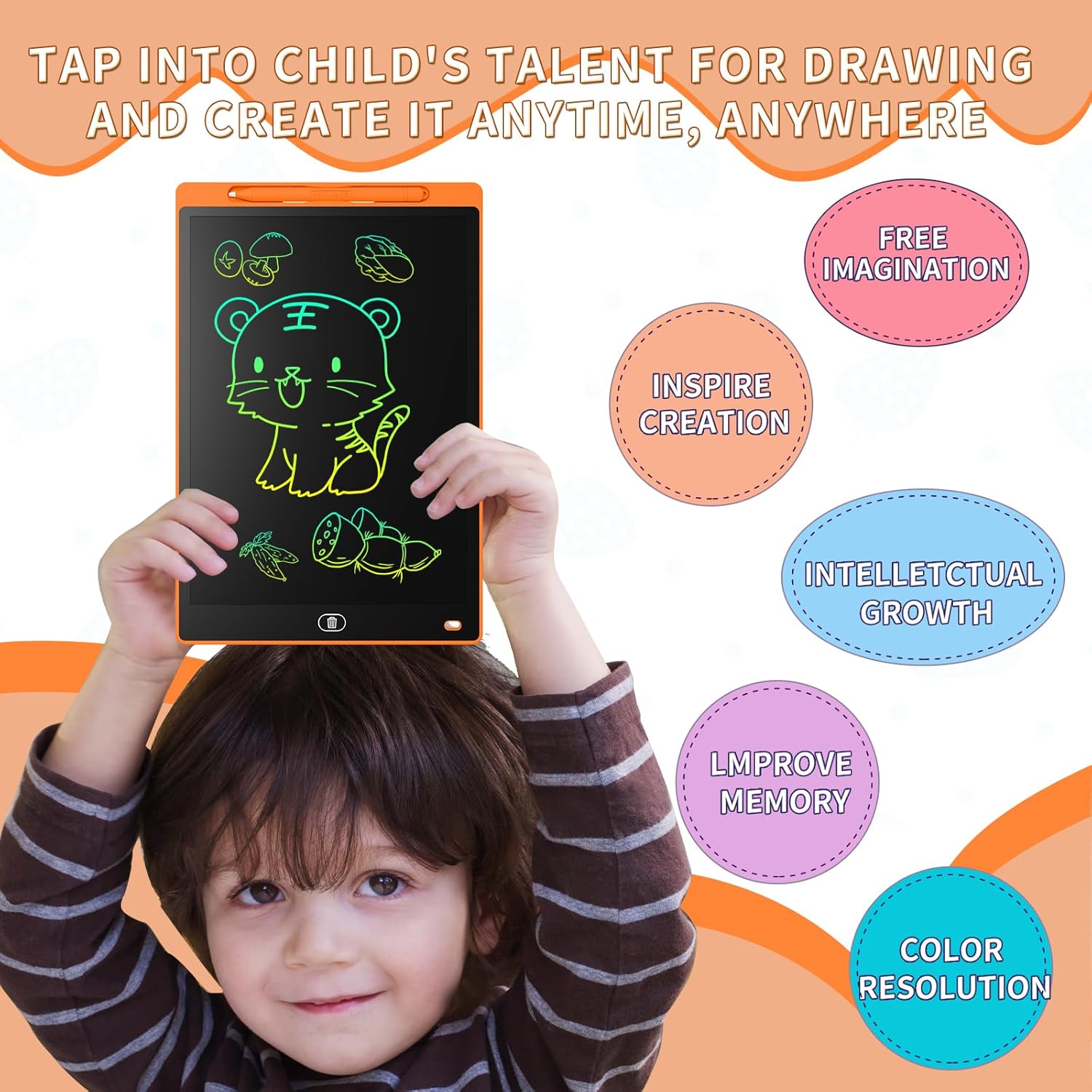 LCD дъска за писане, 10 инча, цветен LCD таблет за писане Genialba, преносима изтриваема дъска за рисуване, електронен таблет, графичен таблет за детски игри 2 3 4 5 6 7 годишни момичета (оранжев)