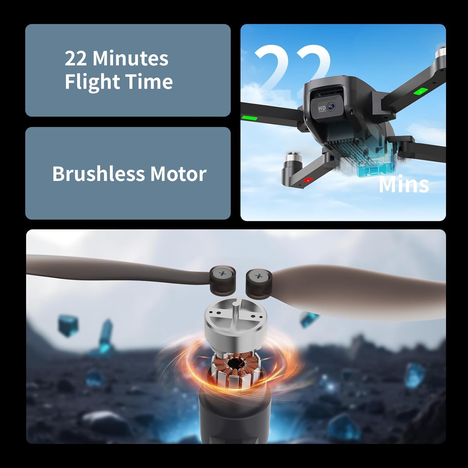 • Безчетков мотор + батерия 2500 mAh: Дронът за начинаещи има мощен безчетков мотор, мощна и тиха работа с клас на защита от вятър до 3. Батерията от 2500 mAh осигурява 22-минутен живот на батерията, а интерфейсът Type-C поддържа бързо зареждане, за да отговори на изискванията за запис по време на пътуване, за да можете да запишете най-красивите моменти.