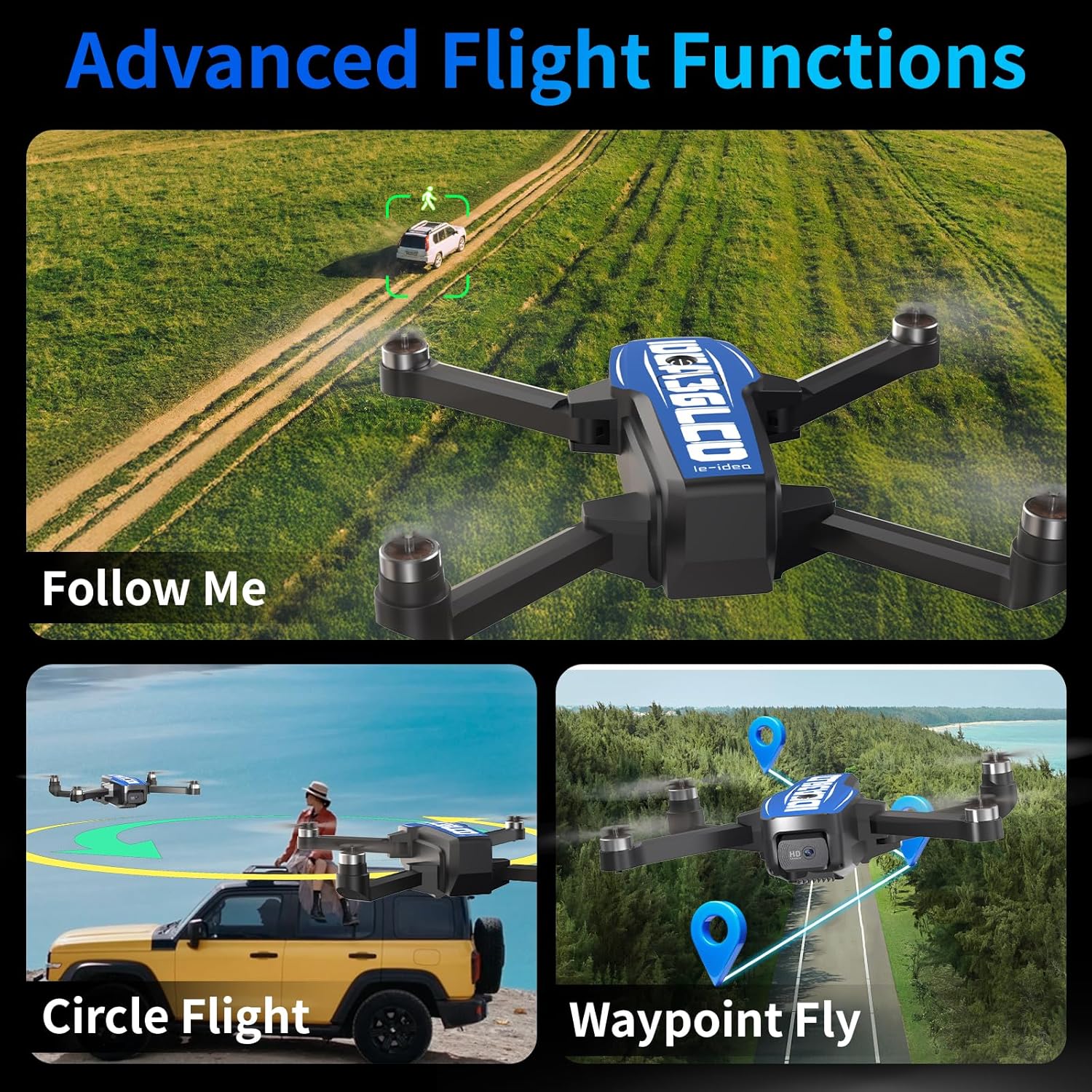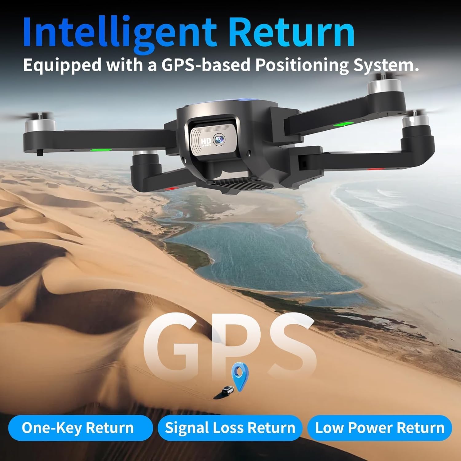 • Двойна система за позициониране: този 4K дрон има оптична система за позициониране и GPS модул, който позволява движение на милиметрово ниво както на закрито, така и на открито. Независимо дали е на закрито или на открито, лесно се справя със сложни среди. Когато токът е нисък или сигналът се загуби, GPS дронът се връща автоматично, за да се гарантира, че FPV дронът няма да бъде изгубен и дори начинаещите могат да работят безопасно.