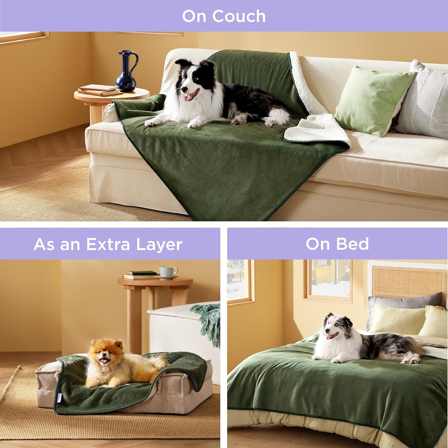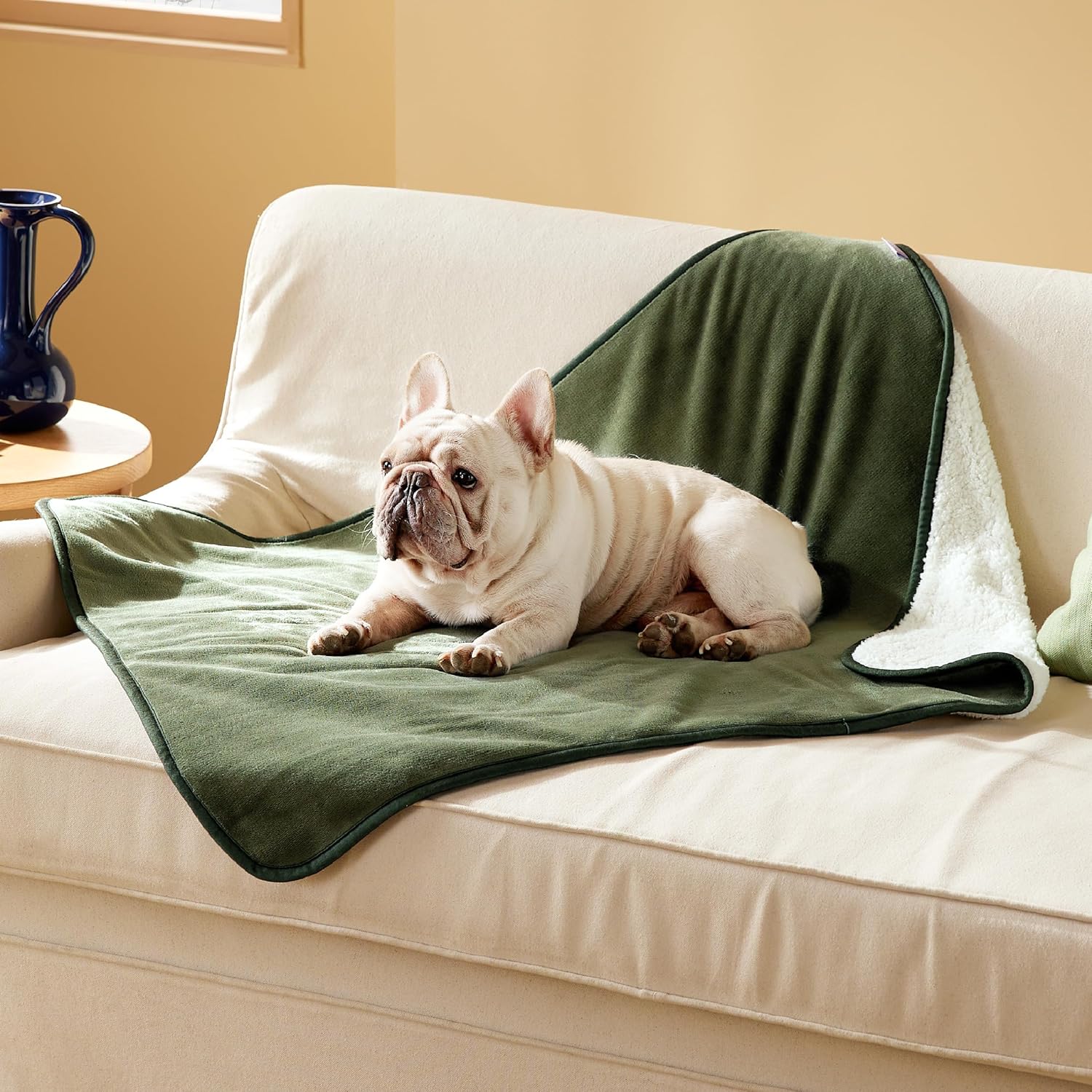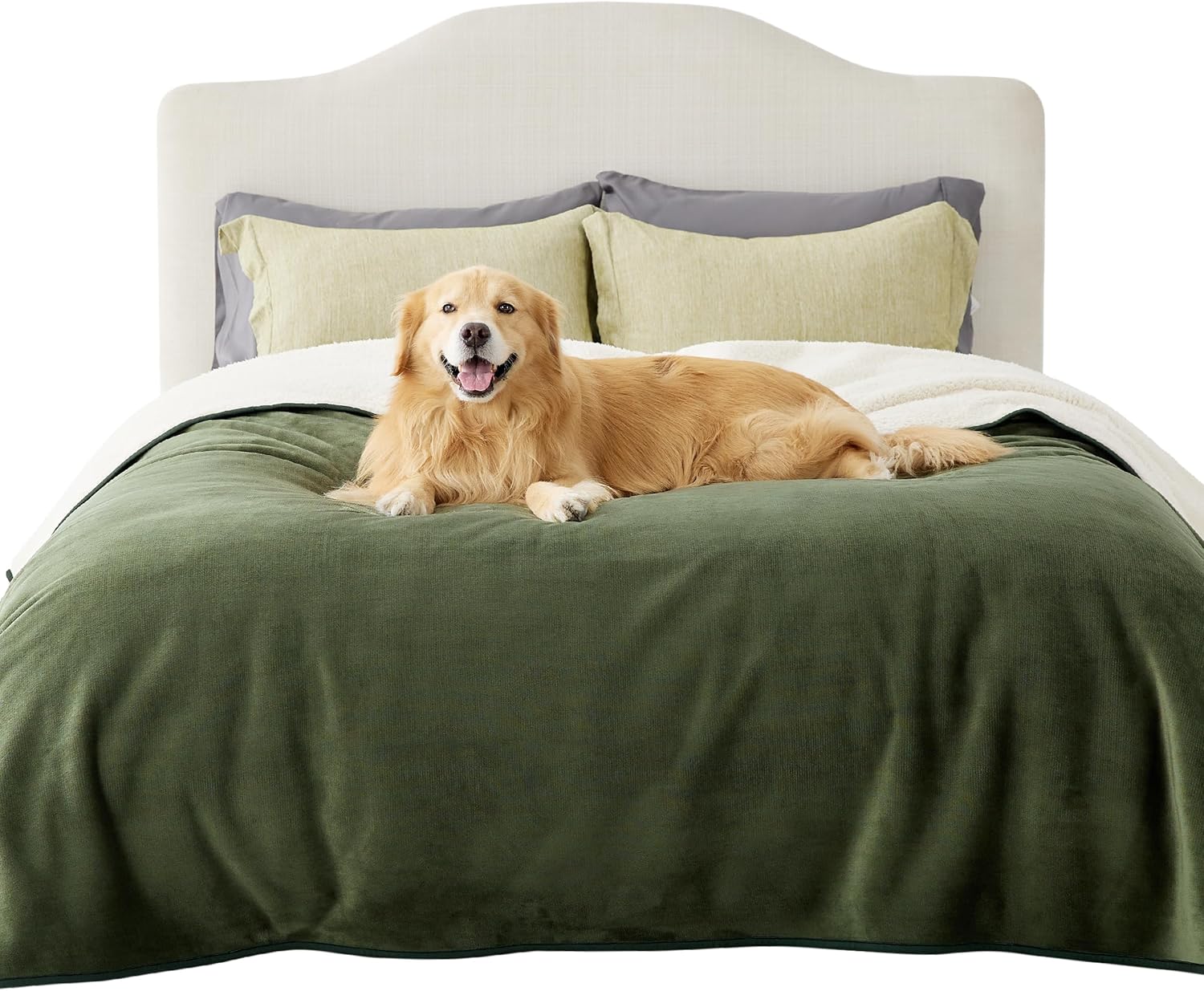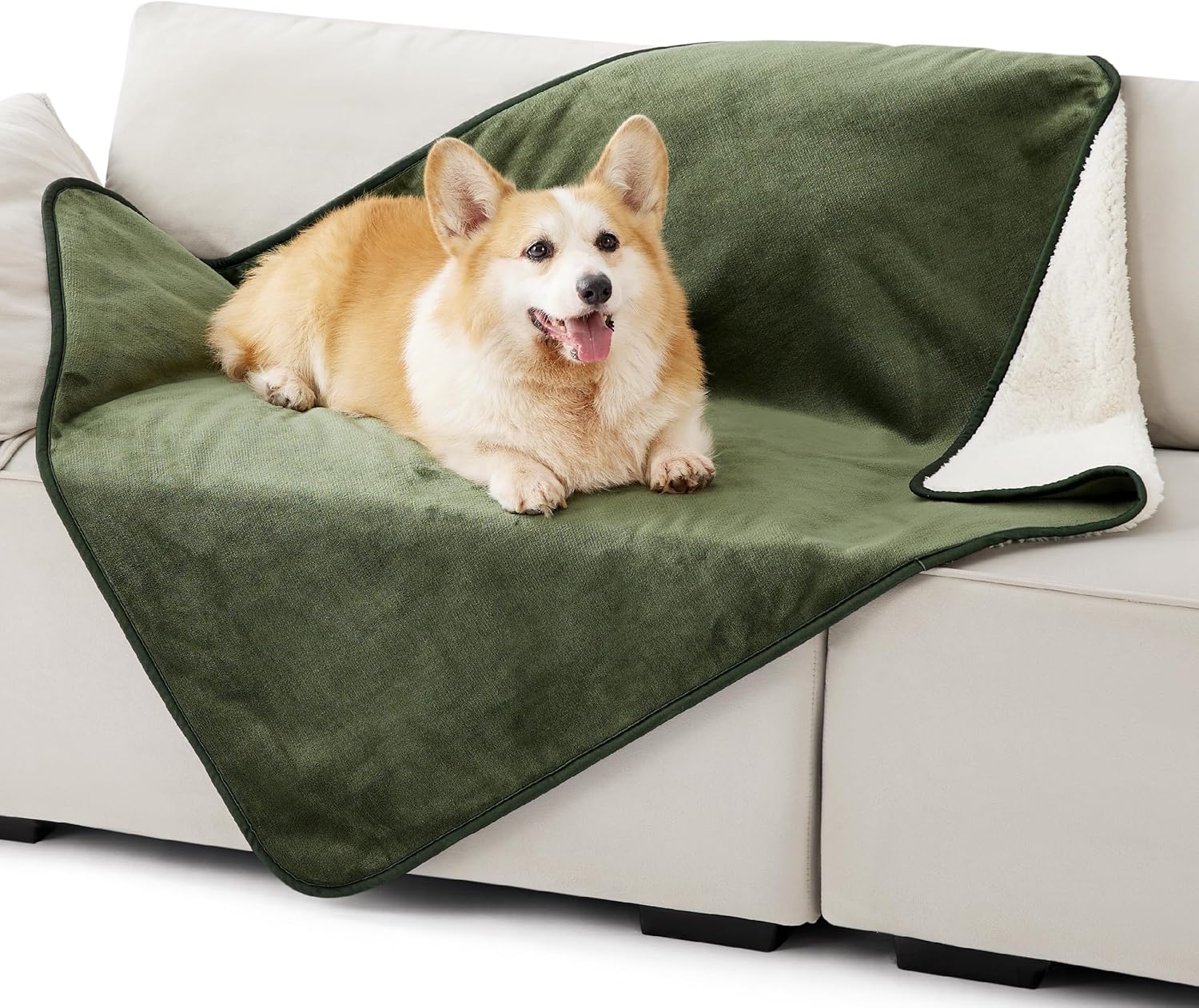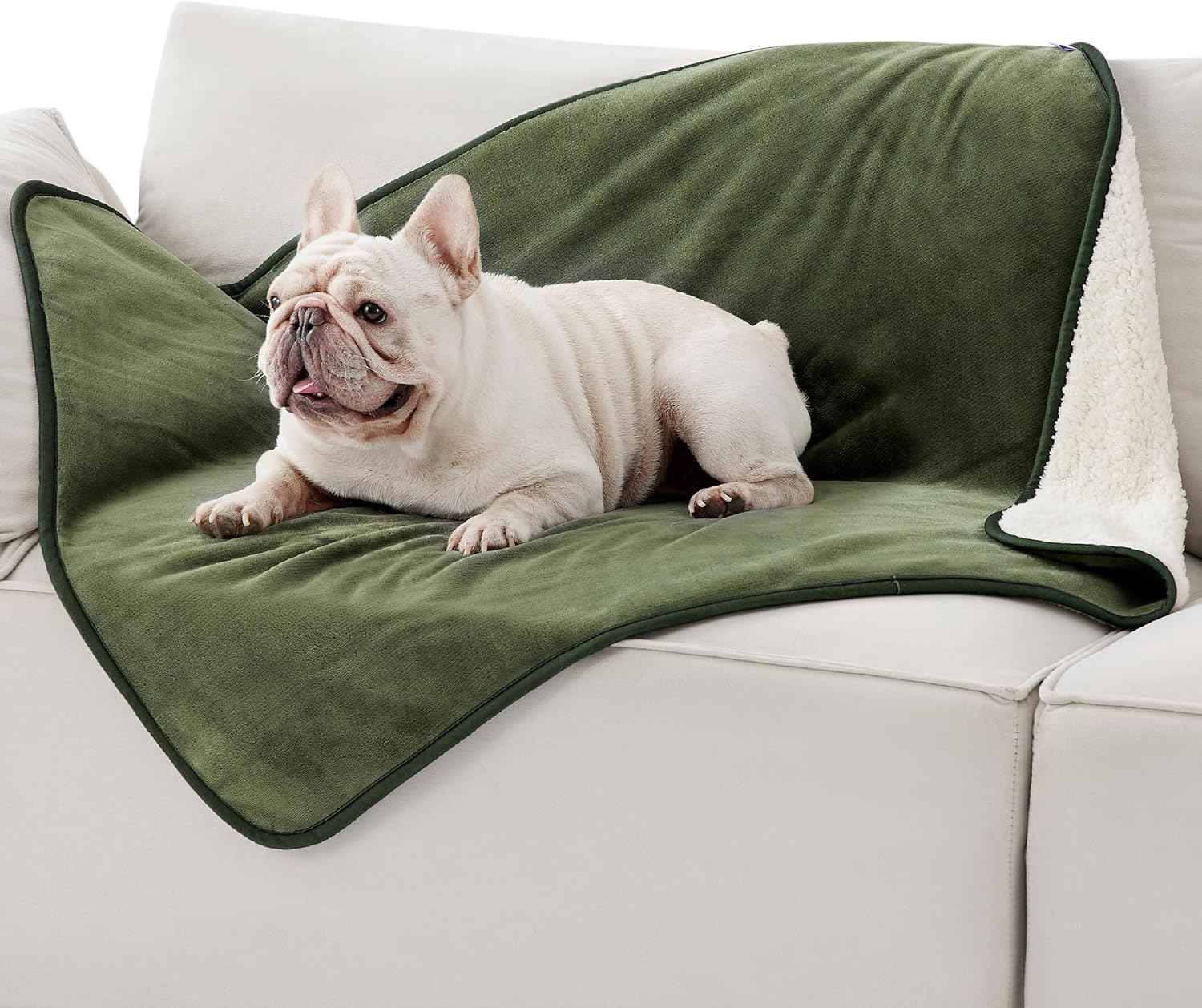 LE SURE Персонализирано водоустойчиво поларено одеяло за домашни любимци, което може да се пере, предпазва легло, диван, меко плюшено, маслинено зелено